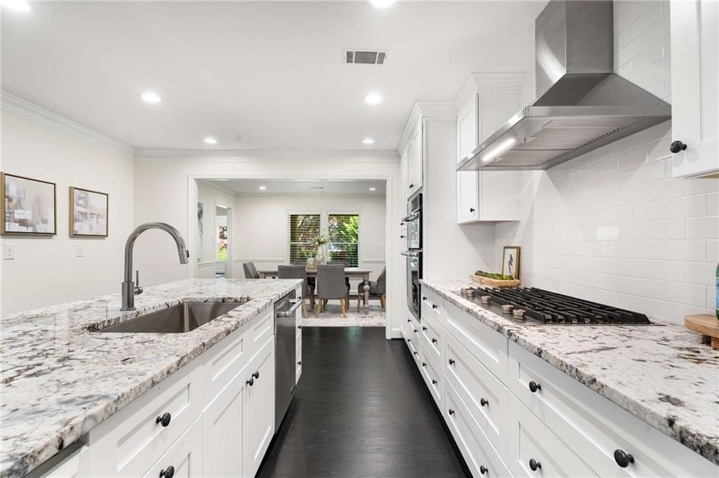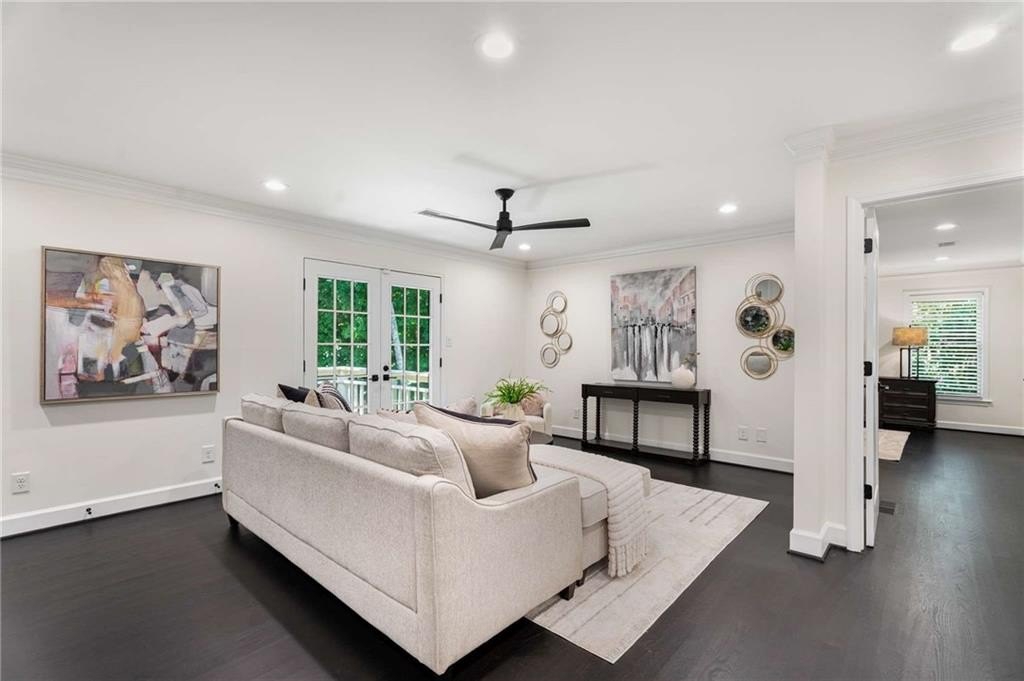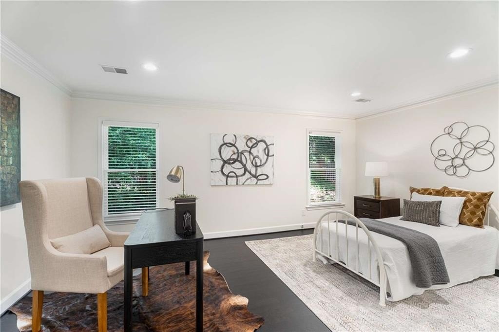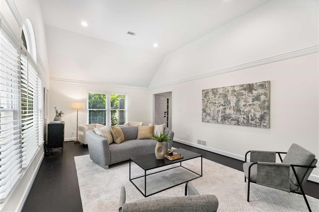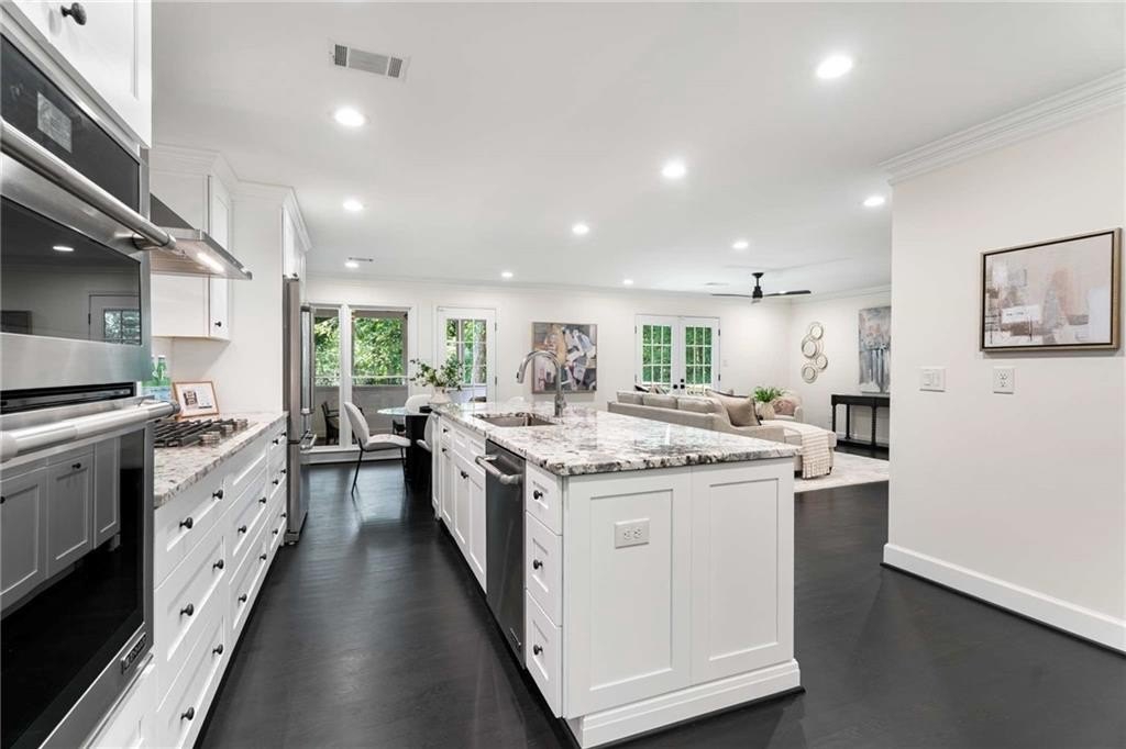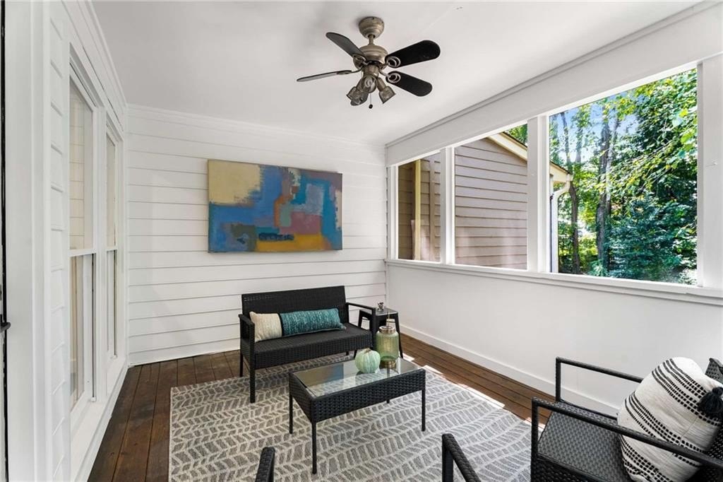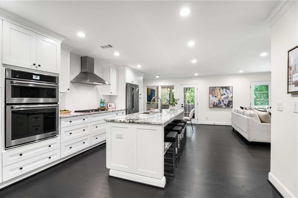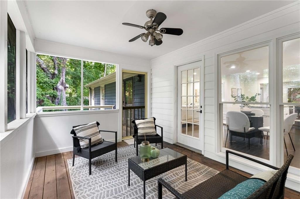 Rare One-Level Townhome with Unfinished Basement in Decatur: beautifully renovated end-unit townhome offers single level living with exceptional space and thoughtful updates. A full 2019 renovation opened the floor plan and introduced new hardwood floors, kitchen, baths, interior doors, recessed lighting, hardware, and more. The kitchen is a standout, featuring a Jenn Air appliance package with wall oven, second convection/microwave oven, gas range with stainless hood, side-by-side refrigerator, and dedicated ice maker. An oversized island that seats 4 anchors the space, flowing seamlessly into the family room, breakfast area, and out to the screened porch and deck. The large living room with high ceilings and fireplace provides flexibility for both living and office space. A separate dining room adds traditional function. The primary suite offers a walk-in closet and updated bath, while a spacious second bedroom with oversized closet is ideal for guests. Please note: this is not a true three-bedroom plan, but there is plenty of space to accommodate a home office in addition to the two bedrooms. The unfinished basement provides abundant storage or the potential for future finished space. Included with the sale are washer/dryer,