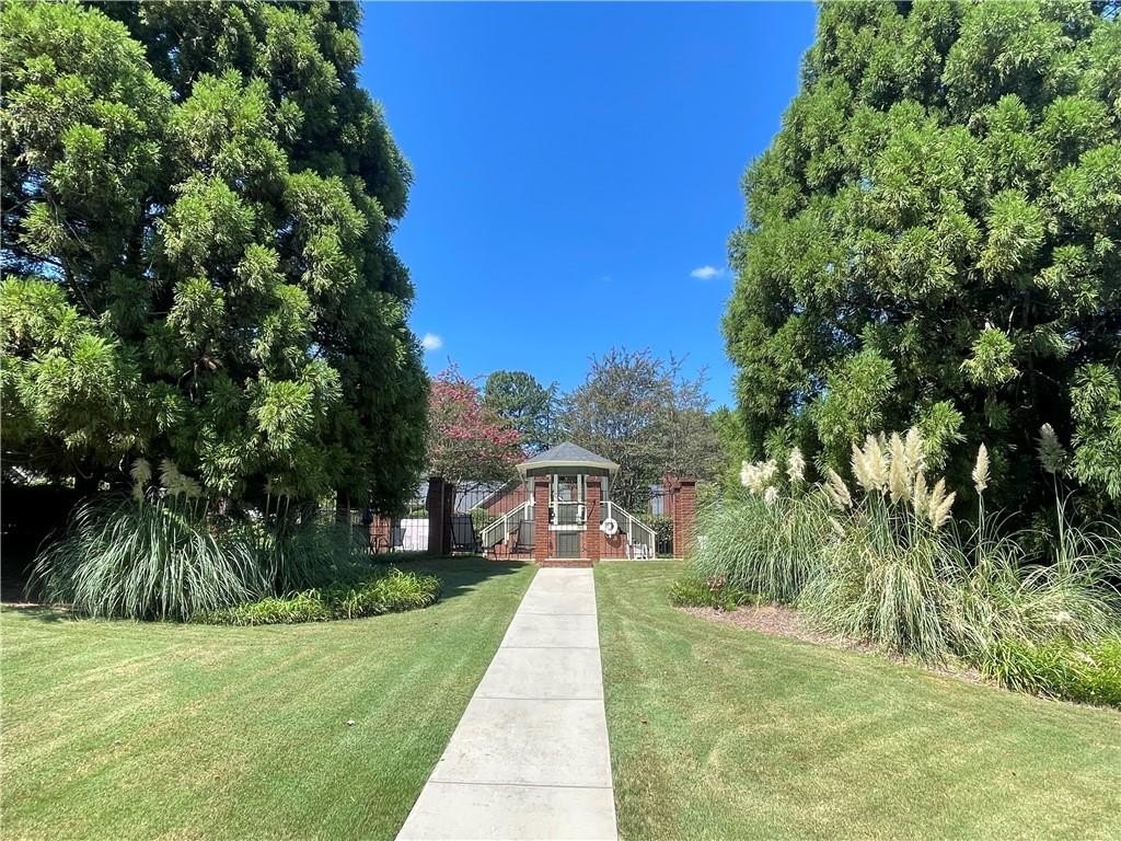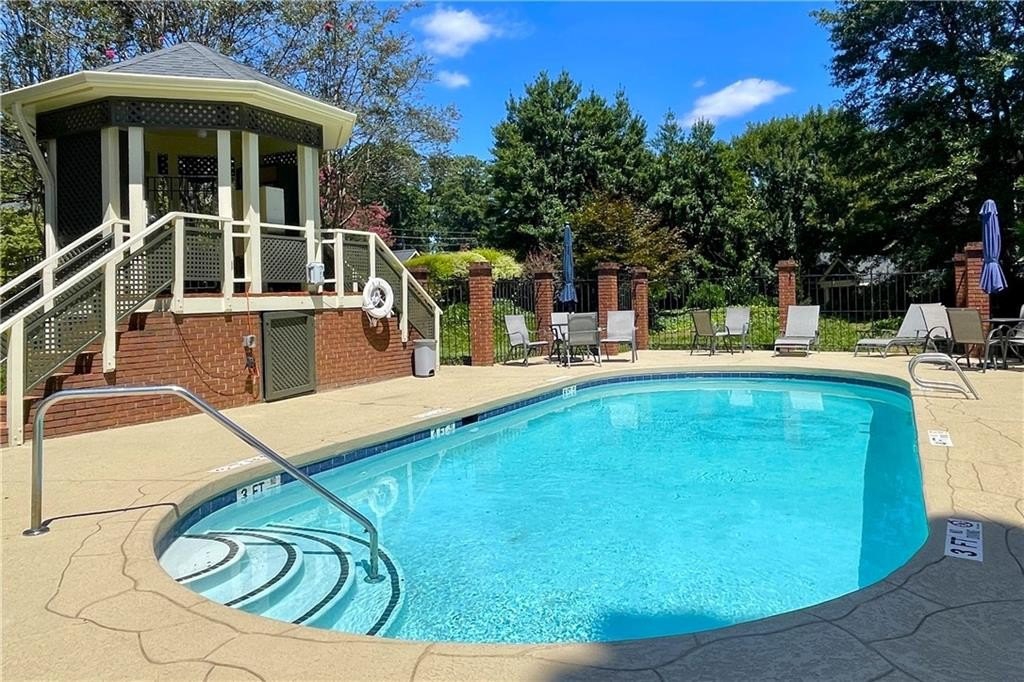 second refrigerator, freezer, large safe, work tables, and shelving. Additional highlights include a welcoming front porch, entry foyer, and the option for a possible future elevator (in 2nd bedroom closet) to the basement and garage. HOA fee covers exterior maintenance, roof, windows, grounds, pool, reserve fee and more. The quiet, established community features a pool and is ideally located near shopping and dining at Toco Hill.