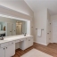 The oversized primary suite is a true retreat with a tray ceiling, expansive windows, and a spa-like en-suite featuring double vanities, a soaking tub, and an updated separate shower.