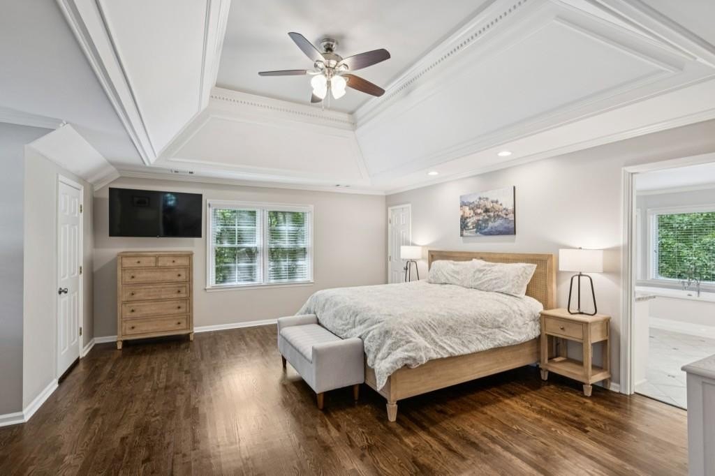 Welcome to your Dream Home in the heart of Brookhaven's most coveted Swim & Tennis Community - Byrnwyck! Perfectly situated on a quiet Cul-de-Sac Lot, this home combines timeless charm with modern updates. The Curb Appeal will stop you in your tracks with a full exterior renovation boasting a Modern Farmhouse feel Dark Blue Hardie Plank Siding, Crisp White Trim, a Covered Front Porch, and striking Natural Wood Double Doors with Glass Panels. A Classic Gable-Style Roof adds charm and dimension, while the Attached Two-Car Garage provides convenience. Step inside to a Light-Filled Grand Two-Story Foyer with Gorgeous Hardwood Floors, Crown Molding, and Wainscoting Wall Details. The Formal Dining Room sets the stage for entertaining, while the Main Level Study offers the perfect Home Office or Flex Space. The Family Room features a Fireplace framed by Custom Built-Ins and a Wet Bar with Sink and Cabinets. A standout highlight is the Huge Sunroom, encased in windows, perfect as a Reading Nook, Quiet Retreat, or Additional Living Space. The Chef's Kitchen impresses with a Large Granite Island, White Cabinets, Stainless Steel Appliances, a Walk-In Pantry, and a cozy Breakfast Nook wrapped in windows with direct access to the Private Back Deck ideal for Al Fresco Dining. A convenient Powder Room completes the Main Level. Upstairs, the Spacious Primary Retreat features a Tray Ceiling, Sitting Area, and a Spa-Like Bathroom with a Double Stone Vanity, Soaking Tub, Glass Shower, Tile Flooring, and Two Closets. Three Additional Large Bedrooms and a Full Bathroom complete the Upper Level. The Daylight Terrace Level is an Entertainer's Dream featuring a Bar with Kitchen, Movie Theater Space, Room for a Pool Table and Games, plus a Bedroom, Flex Space, and Full Bathroom. With Walk-Out Access to a Covered Deck and a Grassy Backyard surrounded by Shaded Trees, the outdoor living continues. Enjoy all that Byrnwyck Swim & Tennis has to offer, with Swim, Tennis, Playground, and Year-Round Social Events exclusive to residents. This prime Brookhaven location provides unbeatable access to Brookhaven, Buckhead, and Midtown, as well as I-285, GA-400, Top-Rated Public & Private Schools, Parks, Trails, Premier Shopping, and Dining. This is more than a home it's a lifestyle. Don't miss your chance to make this Exceptional Brookhaven property yours!