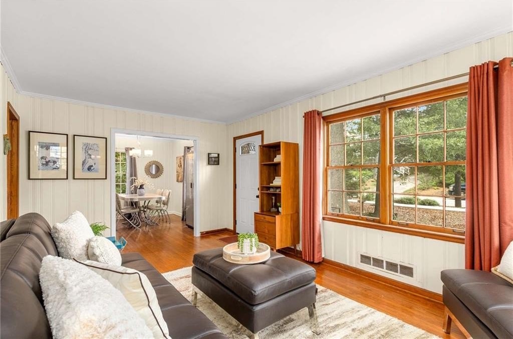 Don’t miss this storybook bungalow with Carriage House in the heart of Decatur’s highly sought-after Winnona Park. Built in 1950 and beautifully maintained, this home offers timeless charm with modern updates on a spacious lot, complete with a private stream—no flood insurance required. Step into a bright and welcoming living room where a fireplace and beautiful windows frame the perfect gathering space. Flow easily into the dining room filled with natural light, then on to the cottage-style kitchen featuring white cabinetry, a new range, newer refrigerator, and side access to the yard. The main level offers two generous bedrooms, a recently renovated bath with deep soak tub. Original hardwood floors run throughout, complemented by rich wood window trim, lending warmth and authenticity to every space.. Upstairs, a third bedroom doubles perfectly as a flex space for a teen suite, studio, or home office. Big items are all covered - a brand-new roof and newer HVAC (2021). The daylight basement provides excellent potential to finish into additional living space, workshop, or art studio, while maintaining easy access to storage and mechanicals. Adding even more value is the one bed, one bath carriage house apartment, currently leased and offering excellent rental income or guest accommodations. With garages below, you’ll also enjoy bonus storage and flexible utility for everyday living.. The location is unbeatable: just minutes to Oakhurst Village, Downtown Decatur, Avondale Estates, Kirkwood, neighborhood favorites in every direction. With Decatur’s top-rated K-12 schools and a vibrant community full of restaurants, festivals, and parks, this property offers not just a home, but a lifestyle. This home blends historic charm with thoughtful updates and offers an exceptional opportunity.