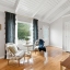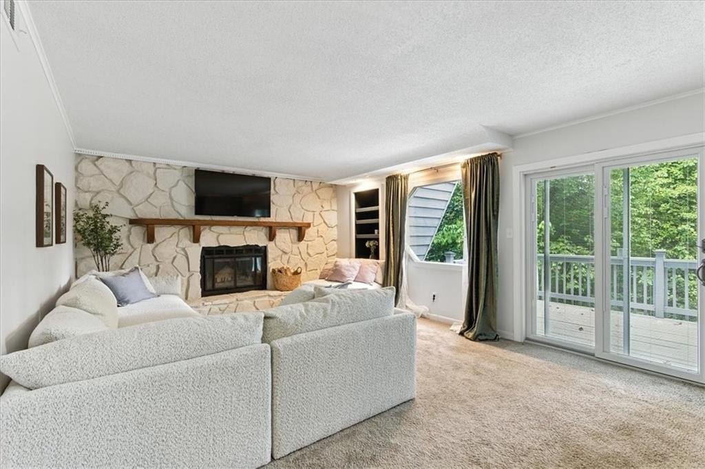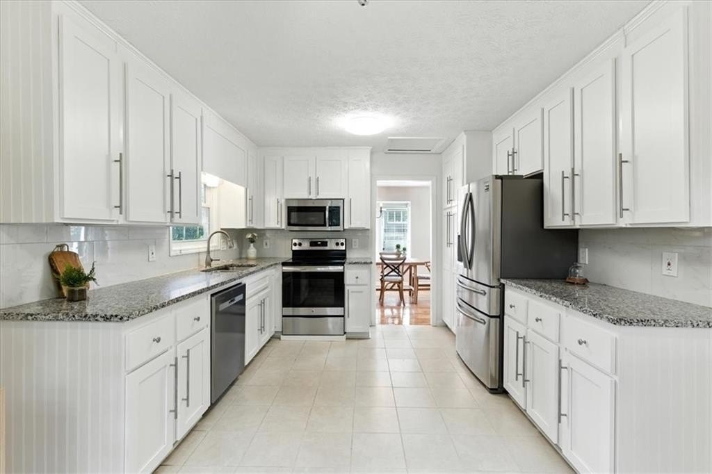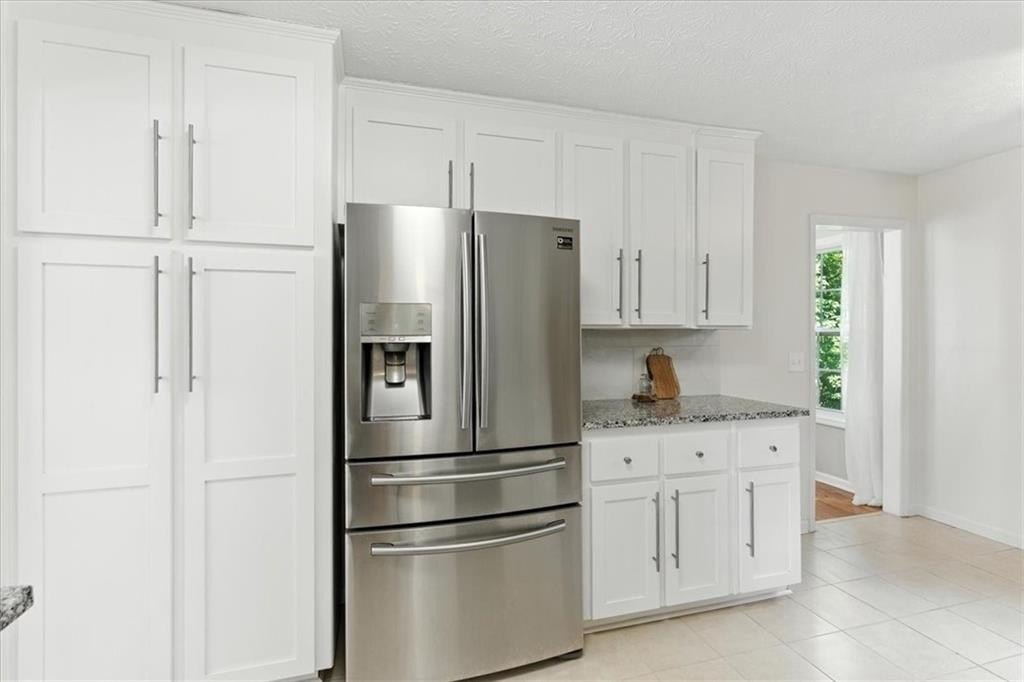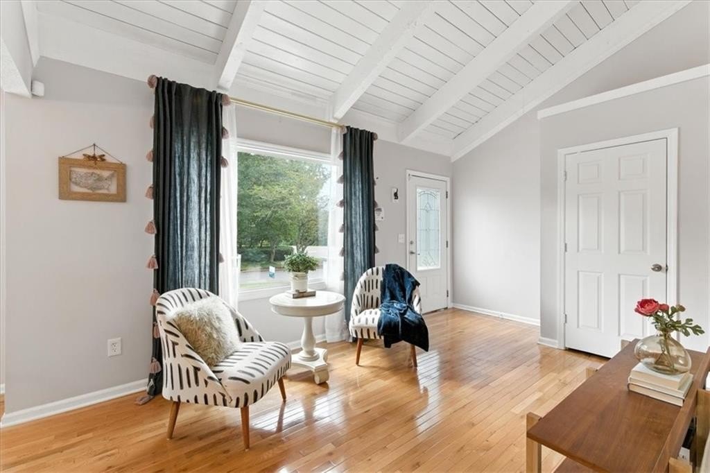 Upon entering, you are greeted by an open main living area featuring soaring high ceilings that create an expansive and airy atmosphere. The well-designed layout seamlessly connects the living, dining, and kitchen areas, making it perfect for entertaining. The kitchen features new stainless steel appliances and plenty of counter space for all your culinary needs. Large, newer windows flood the space with natural light, highlighting the fresh paint and elegant finishes.