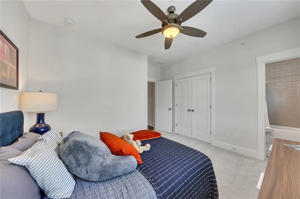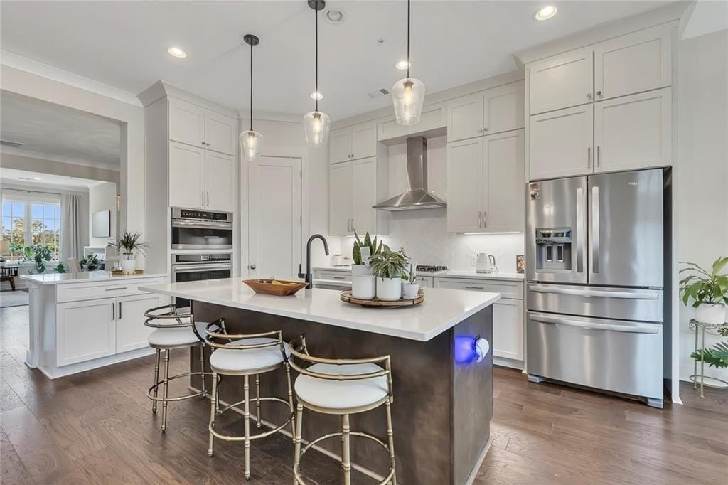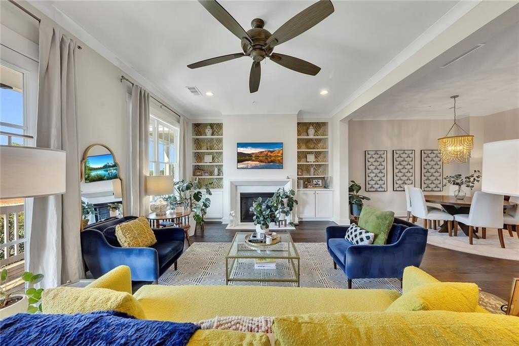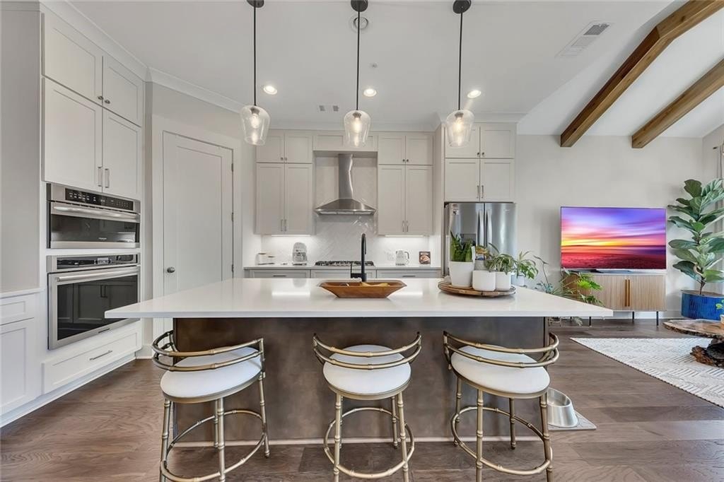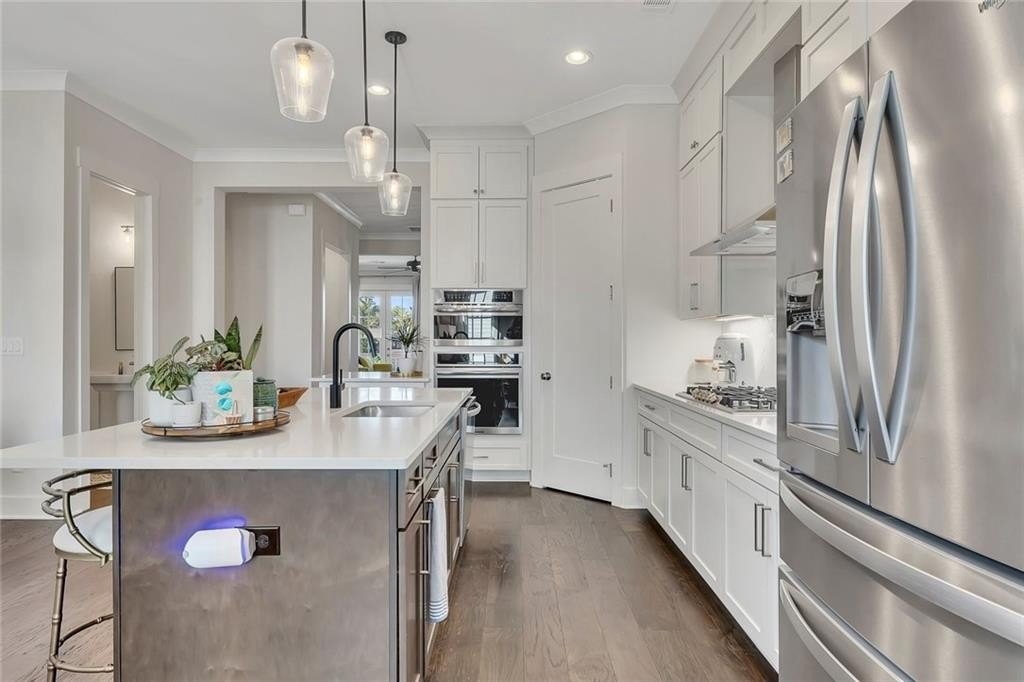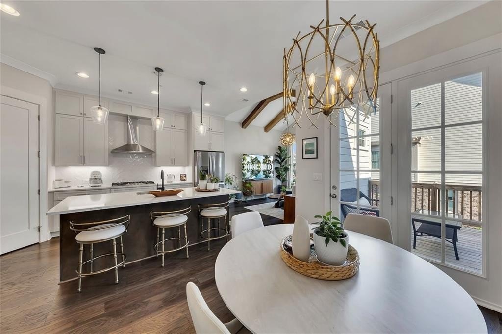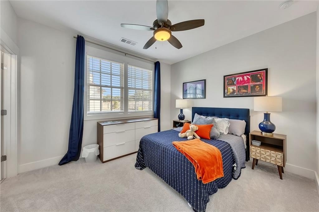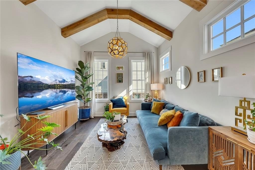 Stunning townhome located in the highly sought-after South on Main community in the heart of Downtown Woodstock. This popular Andrews floorplan offers three levels of beautifully designed living space. The entry level welcomes you with an inviting foyer that leads to a private bedroom with a charming barn door and full bath—perfect for guests or a quiet home office. The rear-entry two-car garage opens into a convenient drop zone for everyday ease. The main level is filled with natural light and features a spacious family room with a cozy fireplace, built-in shelving, and access to a front balcony—an ideal spot for your morning coffee. The open layout flows seamlessly into the dining room, creating the perfect setting for entertaining. At the heart of the home is a chef’s kitchen complete with floor-to-ceiling white cabinetry, a large center island with seating, and a breakfast area with access to the rear deck for grilling. A keeping room with beamed ceilings provides a warm and relaxing retreat, while a guest powder room completes this level. Upstairs, the owner’s suite is a private retreat with a large walk-in closet and a luxurious spa bath featuring double vanities, a soaking tub, and an oversized walk-in shower. A spacious secondary bedroom with a private ensuite bath and a laundry room with cabinets and sink provide both comfort and convenience. This home is elevator-ready, with the shaft offering the flexibility to install an elevator in the future or enjoy the impressive additional space as extra storage or a functional office nook. Life at South on Main is truly exceptional. This premier community spans 20 acres of green space and parks, offering a community garden, firepit, resort-style swimming pool with splash pad and cabana, and a 6,000-square-foot clubhouse with fitness center, game room, and conference space. Residents also enjoy two dog parks, a play park, an open-air pavilion, “The SHED” stage for live events, and direct access to the Noonday Creek Trail, part of the expansive Greenprints system. All of this is just steps from the vibrant energy of Downtown Woodstock and minutes from I-575, making for an easy commute to Atlanta and beyond. Experience why South on Main and Woodstock are among North Georgia’s most sought-after destinations—this home offers the perfect blend of style, comfort, and lifestyle.