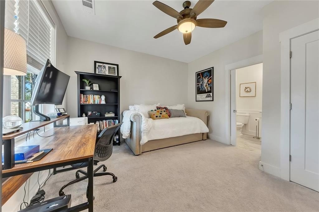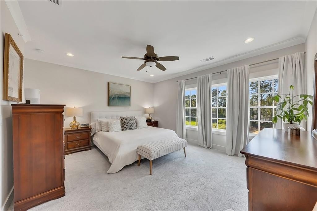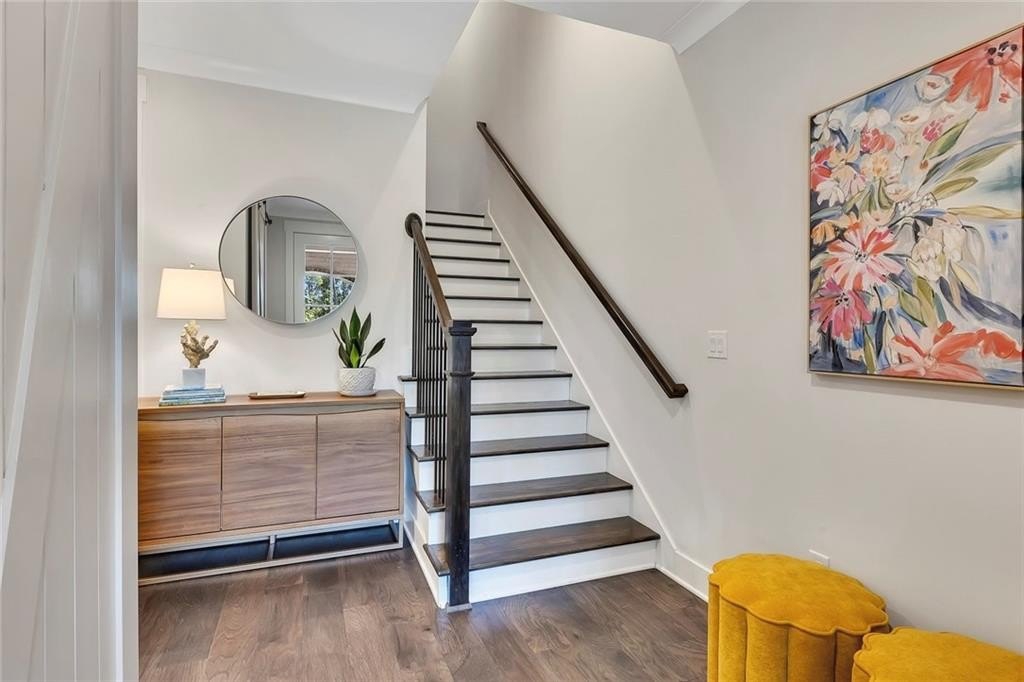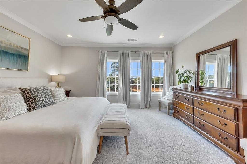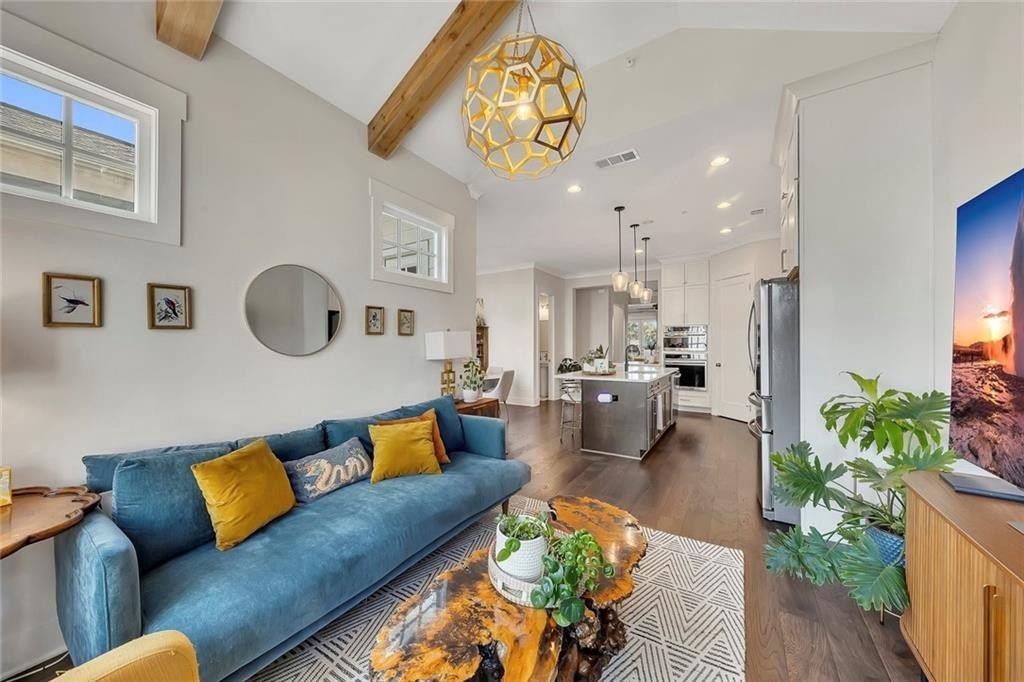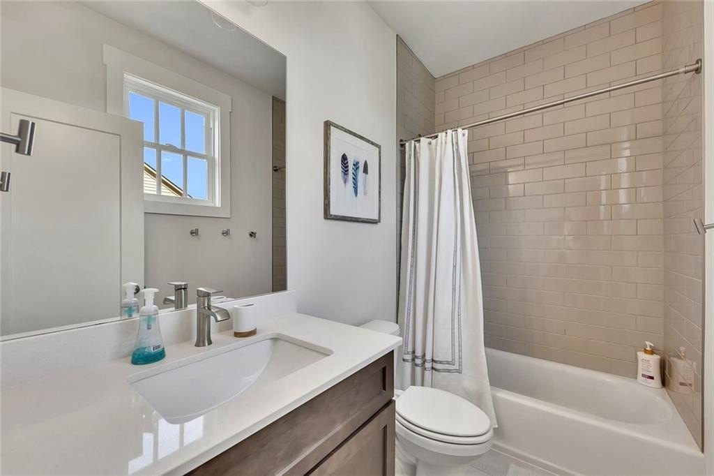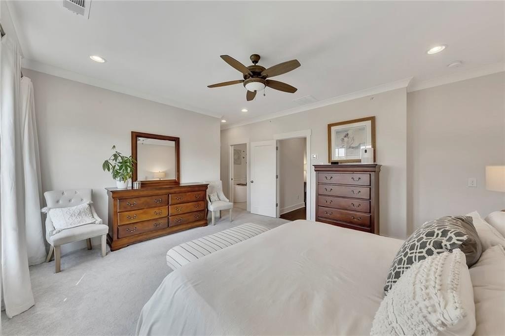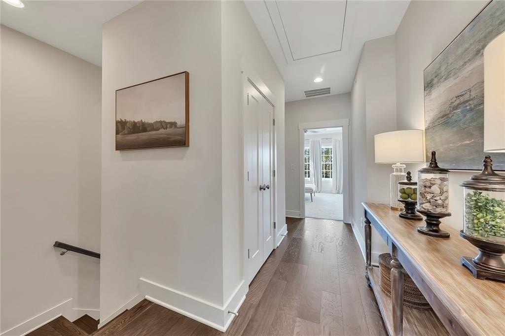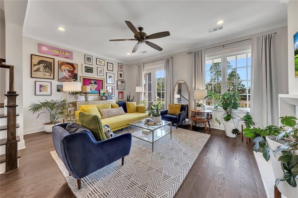 Stunning townhome located in the highly sought-after South on Main community in the heart of Downtown Woodstock. This popular Andrews floorplan offers three levels of beautifully designed living space. The entry level welcomes you with an inviting foyer that leads to a private bedroom with a charming barn door and full bath—perfect for guests or a quiet home office. The rear-entry two-car garage opens into a convenient drop zone for everyday ease. The main level is filled with natural light and features a spacious family room with a cozy fireplace, built-in shelving, and access to a front balcony—an ideal spot for your morning coffee. The open layout flows seamlessly into the dining room, creating the perfect setting for entertaining. At the heart of the home is a chef’s kitchen complete with floor-to-ceiling white cabinetry, a large center island with seating, and a breakfast area with access to the rear deck for grilling. A keeping room with beamed ceilings provides a warm and relaxing retreat, while a guest powder room completes this level. Upstairs, the owner’s suite is a private retreat with a large walk-in closet and a luxurious spa bath featuring double vanities, a soaking tub, and an oversized walk-in shower. A spacious secondary bedroom with a private ensuite bath and a laundry room with cabinets and sink provide both comfort and convenience. This home is elevator-ready, with the shaft offering the flexibility to install an elevator in the future or enjoy the impressive additional space as extra storage or a functional office nook. Life at South on Main is truly exceptional. This premier community spans 20 acres of green space and parks, offering a community garden, firepit, resort-style swimming pool with splash pad and cabana, and a 6,000-square-foot clubhouse with fitness center, game room, and conference space. Residents also enjoy two dog parks, a play park, an open-air pavilion, “The SHED” stage for live events, and direct access to the Noonday Creek Trail, part of the expansive Greenprints system. All of this is just steps from the vibrant energy of Downtown Woodstock and minutes from I-575, making for an easy commute to Atlanta and beyond. Experience why South on Main and Woodstock are among North Georgia’s most sought-after destinations—this home offers the perfect blend of style, comfort, and lifestyle.
