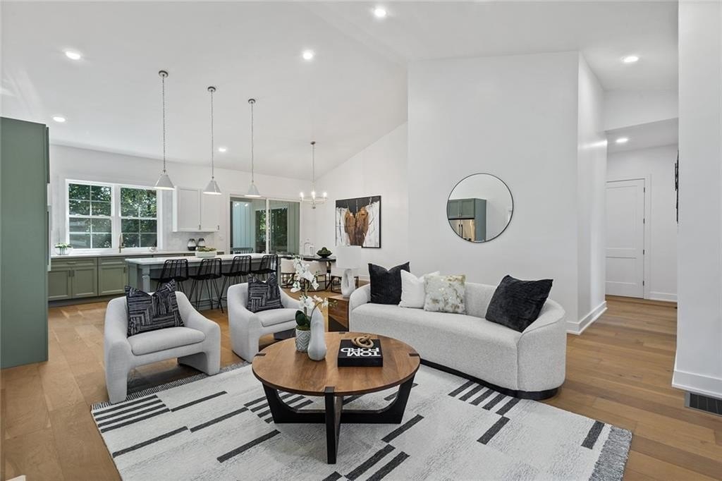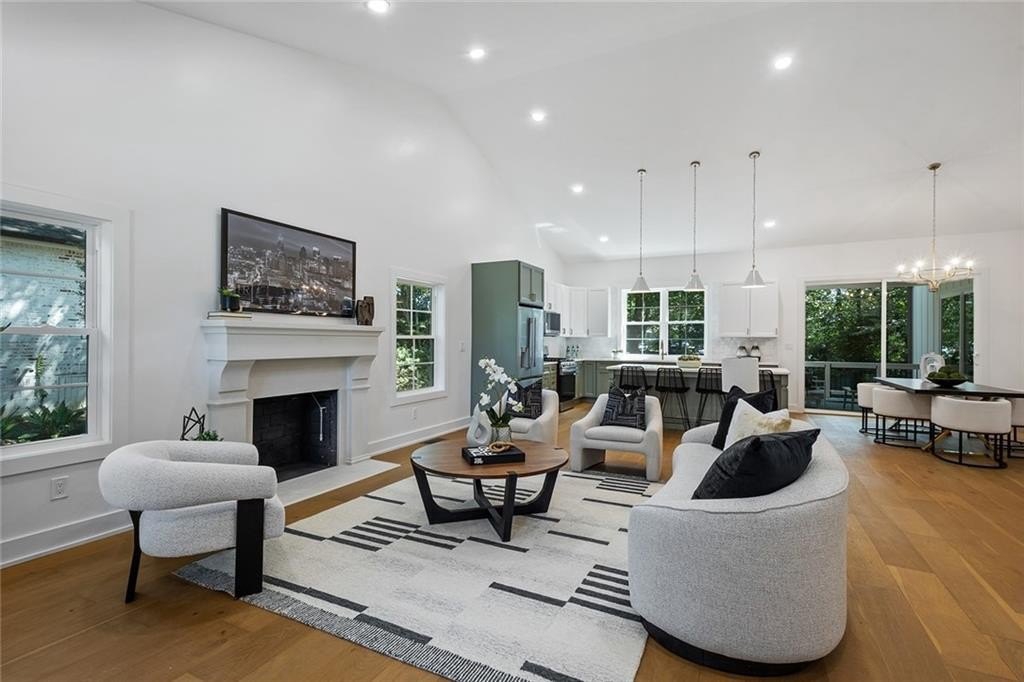 Discover a beautifully customized single-family home that truly checks all the boxes — no HOA, low taxes, and ideally located for both convenience and tranquility. Tucked away from the noise yet minutes from everything, this home offers the perfect blend of privacy and accessibility. Step inside and feel instantly at home as you’re greeted by soaring vaulted ceilings and a stunning, custom-designed Roman-style fireplace a true focal point of the living area. The open-concept floor plan is filled with natural light thanks to large windows and expansive sliding glass doors, offering serene views of the private backyard. The heart of the home is the gourmet custom kitchen, thoughtfully designed with an oversized island, high-end finishes, and meticulous craftsmanship. Whether you’re hosting or relaxing, this space is as functional as it is beautiful. The primary suite is located on the main level for ultimate convenience, featuring a spa-like bathroom with custom tile work, perfect for unwinding after a long day. You’ll love the expansive, custom walk-in closet and the easy access to the main-level laundry room. Also on the main floor is a flexible office or guest bedroom to suit your lifestyle. Upstairs, you’ll find a spacious loft-style second living area, along with three generously sized bedrooms and two additional bathrooms including one ensuite, ideal for guests or multigenerational living. High ceilings continue throughout, giving every room a sense of airiness and space. Outside, enjoy a peaceful, private backyard perfect for entertaining or relaxing, all without the restrictions of an HOA. Conveniently located with easy access to major highways, all major grocery brands (including the iconic Dekalb Farmers Market), shopping, parks, and recreation — this home offers the rare combination of central location and peaceful living.