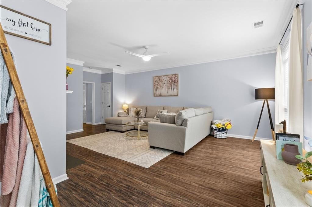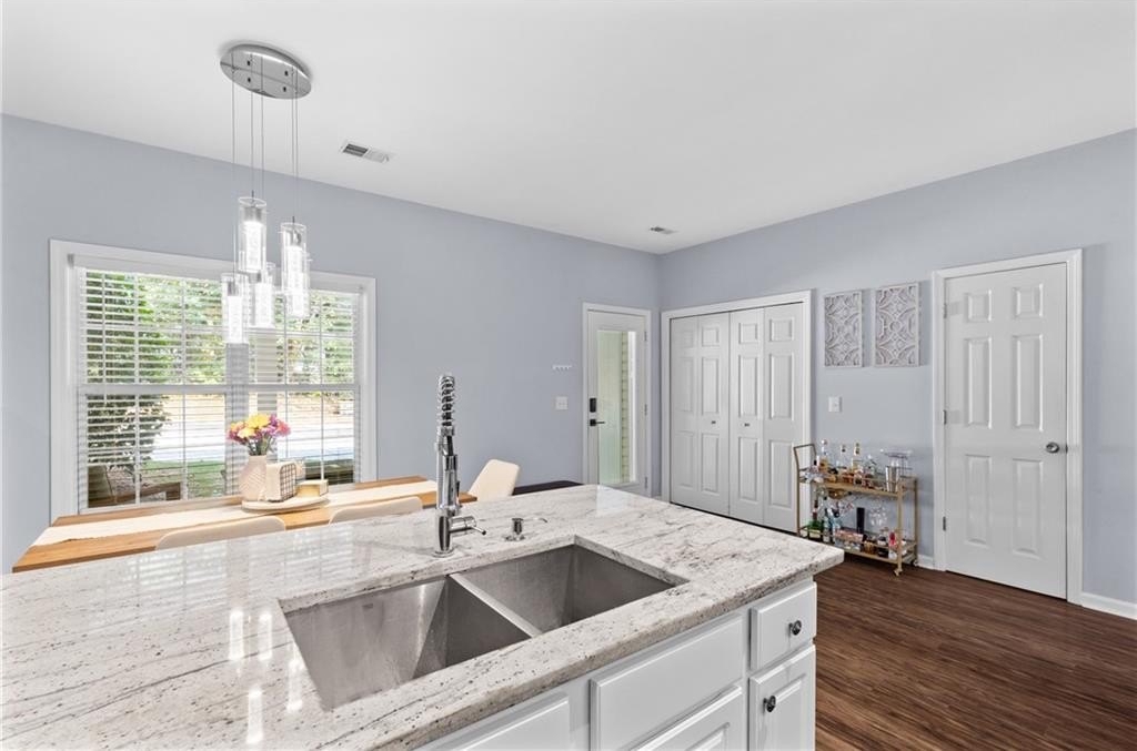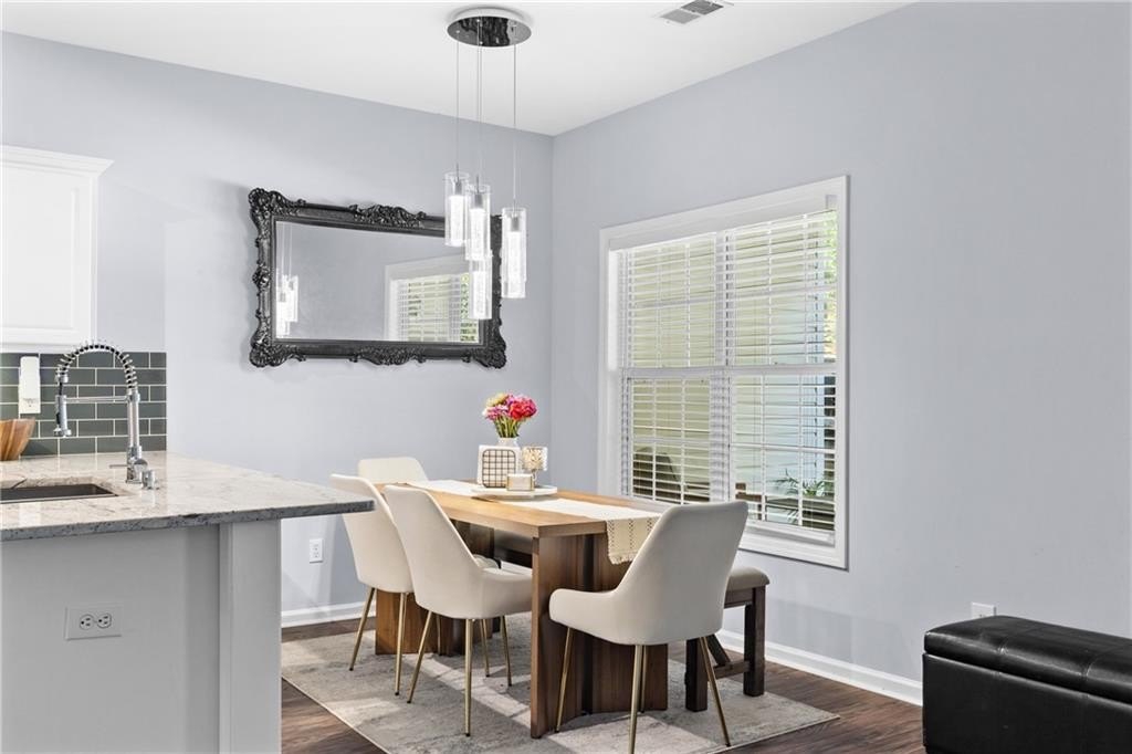 This charming brick townhome in the quiet community of Old Town Square offers peace of mind with a newer tank-less water heater, roof, and HVAC system. Perfectly situated just outside Downtown Acworth, you’ll enjoy easy access to hidden local gems, favored restaurants, bars, and more. Conveniently located near Swift Cantrell Park, Acworth Sports Complex, Lake Allatoona for boating, fishing, and dining on the water, as well as healthcare, shopping, and grocery options, and major highways for an easy commute. All while being tucked away from the hustle and bustle. Community amenities include some utilities and yard maintenance, providing a truly low-maintenance lifestyle. The covered front entry welcomes you into a warm family room featuring a cozy gas fireplace and hardwood floors throughout. The peninsula-style kitchen is a standout with granite countertops, subway tile backsplash, breakfast bar, stainless steel appliances, great counter space, pantry, and a laundry closet. From here, step right out to the covered patio, perfect for outdoor dining or relaxation. The stylishly updated powder room on the main level adds a modern touch. Upstairs, the primary suite offers a French door entry into the en-suite bath with split double vanities, a soaking tub, and walk-in shower. Two secondary bedrooms as well as an additional full bathroom, providing ample space for family, guests, or a home office. The covered front patio is finished with wood grain like tile, a ceiling fan, and plenty of room to design your ideal outdoor retreat, perfect for morning coffee or dining under the stars. An outdoor storage closet adds functionality, while the attached rear parking pad backs to a wooded area, creating a peaceful and private setting. This townhome combines thoughtful updates, modern convenience, and a desirable location close to everything you need, making it the perfect place to call home. FHA Assumable!