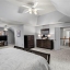 Upstairs, all bedrooms are thoughtfully situated for privacy. Two bedrooms share a Jack-and-Jill bath, while another secondary bedroom features its own private en suite bathroom. An oversized room is currently being enjoyed as a media room, and the luxurious owner’s suite offers a spacious sitting area, spa-inspired bath with double vanities, soaking tub, and separate walk-in shower, as well as an impressive walk-in closet.