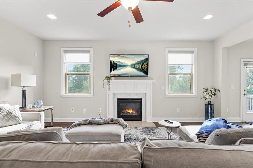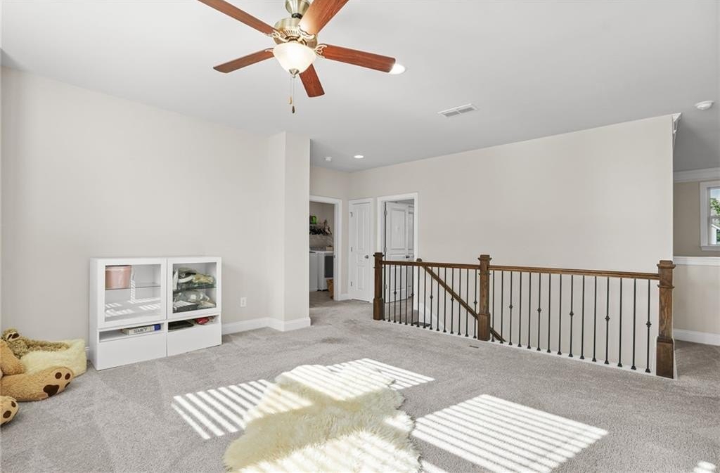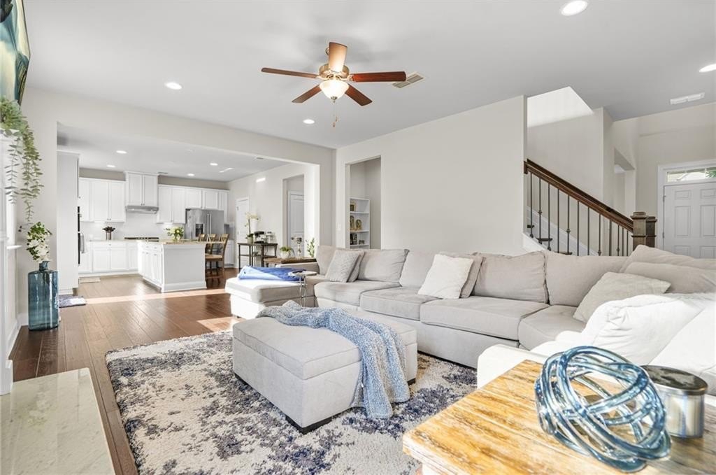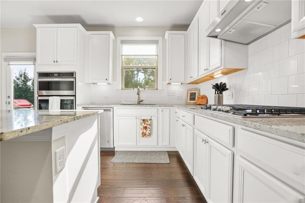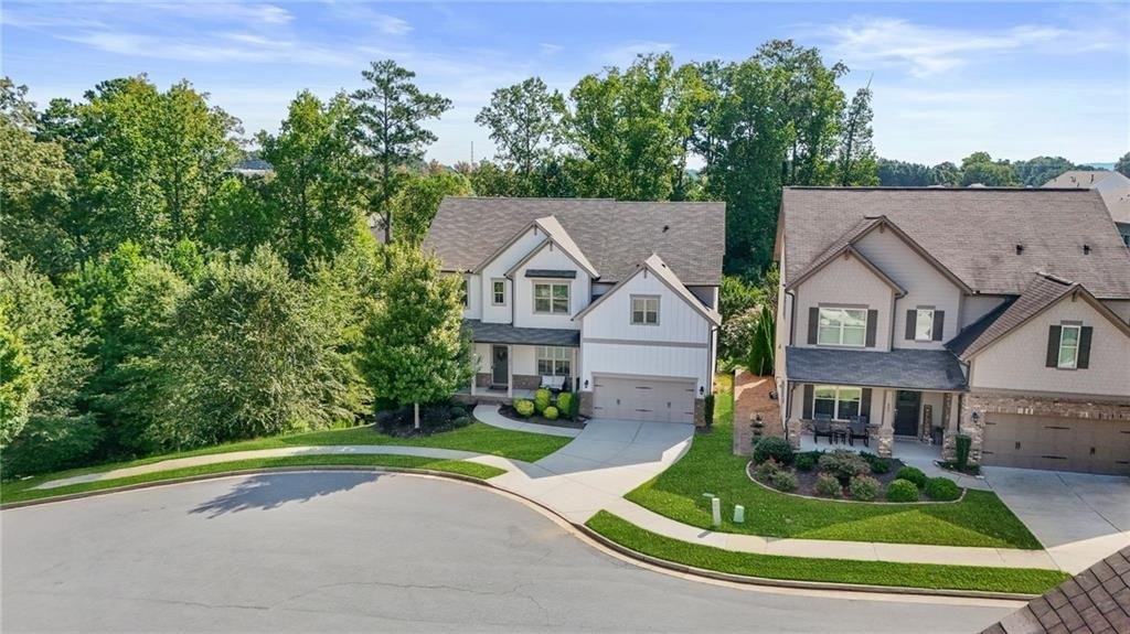 Welcome to this like-new 5BR/3BA Craftsman home with a partially finished basement, perfectly tucked away on a private cul-de-sac lot in one of Towne Lake’s most desirable communities. Enjoy the ultimate combination of convenience and lifestyle—walk to shopping, dining, and top-rated schools, with vibrant downtown Woodstock just minutes away. Step inside to a bright formal dining room, office with coffered ceiling, and two-story living room that flows seamlessly into the kitchen. The designer white kitchen steals the show with quartz countertops, 42” cabinets, stainless steel appliances, and a large island made for gathering. A walk-in butler’s pantry, hardwood floors throughout, and an extended deck create space for both entertaining and everyday living. The main level also features a bedroom and full bath—perfect for your guests. Upstairs, retreat to a spacious loft/media area plus three secondary bedrooms. The oversized owner’s suite is a true sanctuary with a large spa-inspired bathroom with separate tub and huge shower plus a very large walk-in closet that will impress. This home was built with 9’ ceilings on all levels, ceiling fans in every room, and numerous upgrades for comfort and style. Energy-efficient systems and smart home technology ensure modern living and monthly savings. Full mostly unfinished walk out basement with 1 finished room at 220sqft. Land for this property extends down past the fenced in area, HOA maintains the landscaping down this hill in the back. With NO rental restrictions, it’s also an ideal investment opportunity. This home truly offers the best of location, lifestyle, and value—blending high-end finishes, flexible living spaces, and unbeatable convenience.