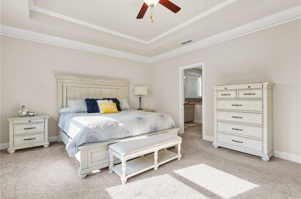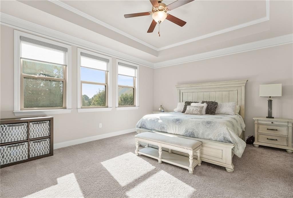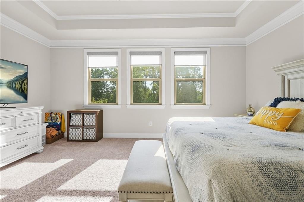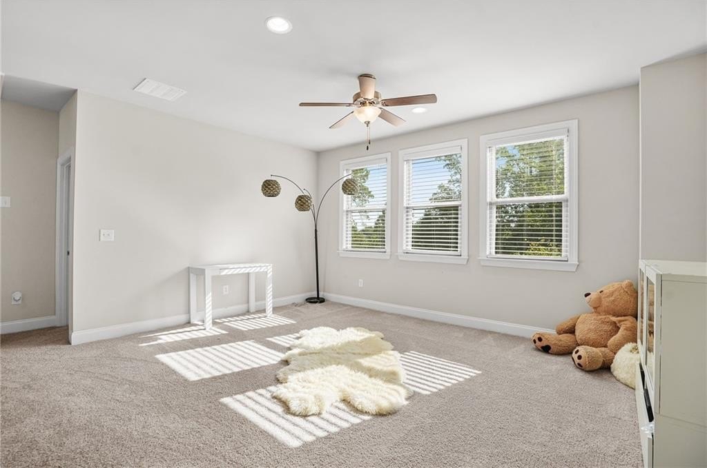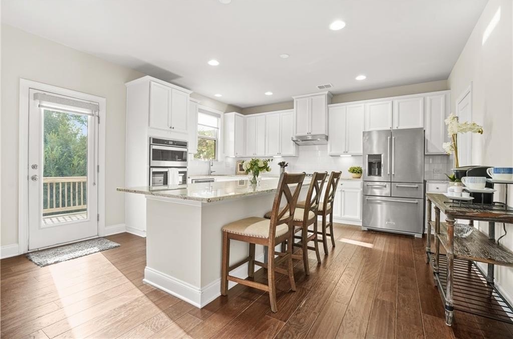 Welcome to this like-new 5BR/3BA Craftsman home with a partially finished basement, perfectly tucked away on a private cul-de-sac lot in one of Towne Lake’s most desirable communities. Enjoy the ultimate combination of convenience and lifestyle—walk to shopping, dining, and top-rated schools, with vibrant downtown Woodstock just minutes away. Step inside to a bright formal dining room, office with coffered ceiling, and two-story living room that flows seamlessly into the kitchen. The designer white kitchen steals the show with quartz countertops, 42” cabinets, stainless steel appliances, and a large island made for gathering. A walk-in butler’s pantry, hardwood floors throughout, and an extended deck create space for both entertaining and everyday living. The main level also features a bedroom and full bath—perfect for your guests. Upstairs, retreat to a spacious loft/media area plus three secondary bedrooms. The oversized owner’s suite is a true sanctuary with a large spa-inspired bathroom with separate tub and huge shower plus a very large walk-in closet that will impress. This home was built with 9’ ceilings on all levels, ceiling fans in every room, and numerous upgrades for comfort and style. Energy-efficient systems and smart home technology ensure modern living and monthly savings. Full mostly unfinished walk out basement with 1 finished room at 220sqft. Land for this property extends down past the fenced in area, HOA maintains the landscaping down this hill in the back. With NO rental restrictions, it’s also an ideal investment opportunity. This home truly offers the best of location, lifestyle, and value—blending high-end finishes, flexible living spaces, and unbeatable convenience.