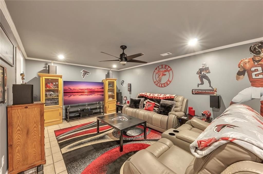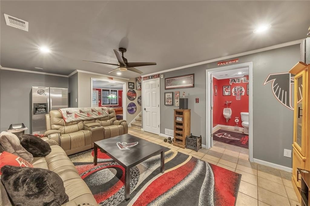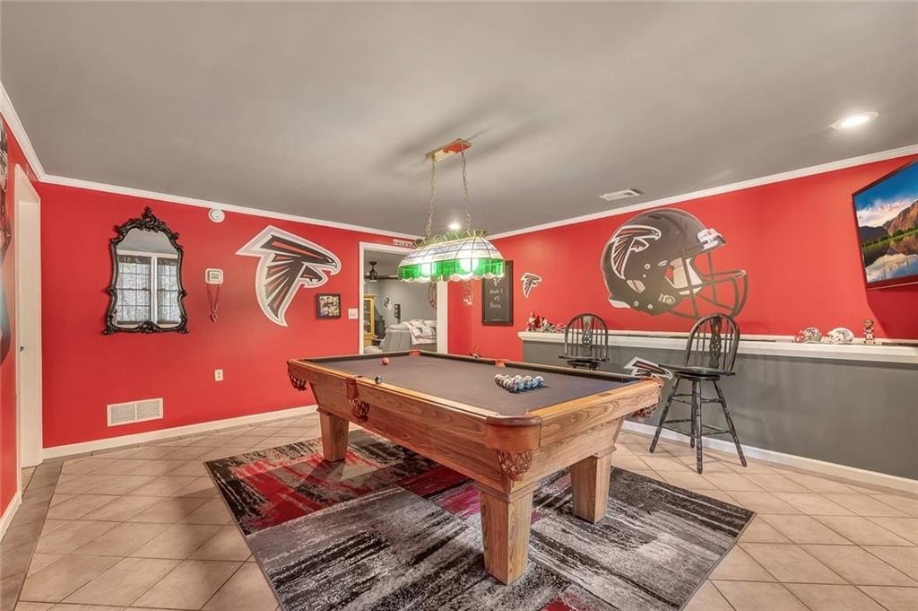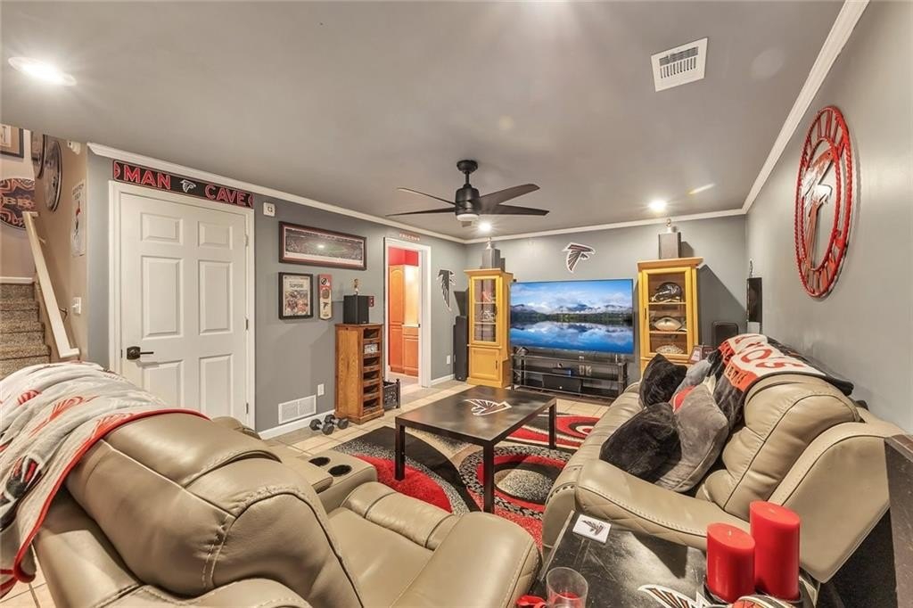 Welcome to this stunning 5-bedroom, 3.5-bath home with over 4,000 sq ft in the highly sought-after Wyngate community of Towne Lake. Nestled on a quiet street, this home features an open kitchen with granite countertops, white cabinetry, stainless steel appliances, and a breakfast bar that flows into the living room and a light-filled keeping room with wet bar. The main level also offers a separate dining room, while upstairs you’ll find generously sized secondary bedrooms and a spacious owner’s suite with a private bath. The fully finished walk-out basement includes a bedroom, full bath, flex space, and large living room—currently an incredible Atlanta Falcons fan cave—perfect for entertaining or guests. Step outside to an expansive deck overlooking the fully fenced private backyard, ideal for gatherings and play. Recent updates include a newer roof, garage doors, and HVAC, giving peace of mind for years to come. Enjoy the unmatched amenities of Wyngate with two pools, clubhouse, tennis and pickleball courts, playgrounds, and community events—all paired with top-rated schools in a prime Towne Lake location.