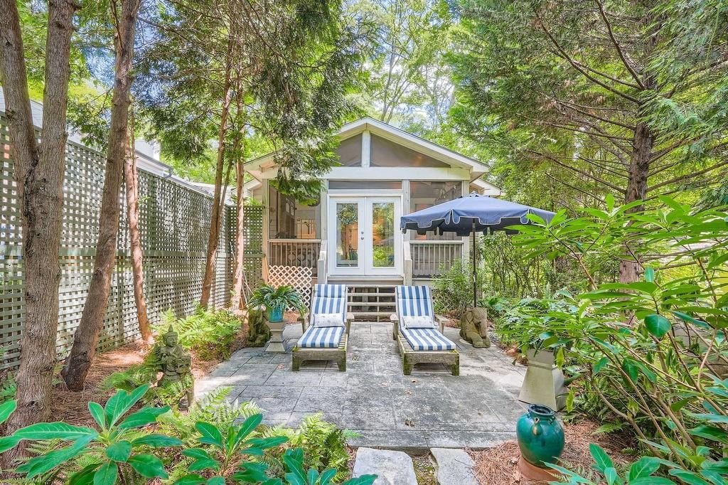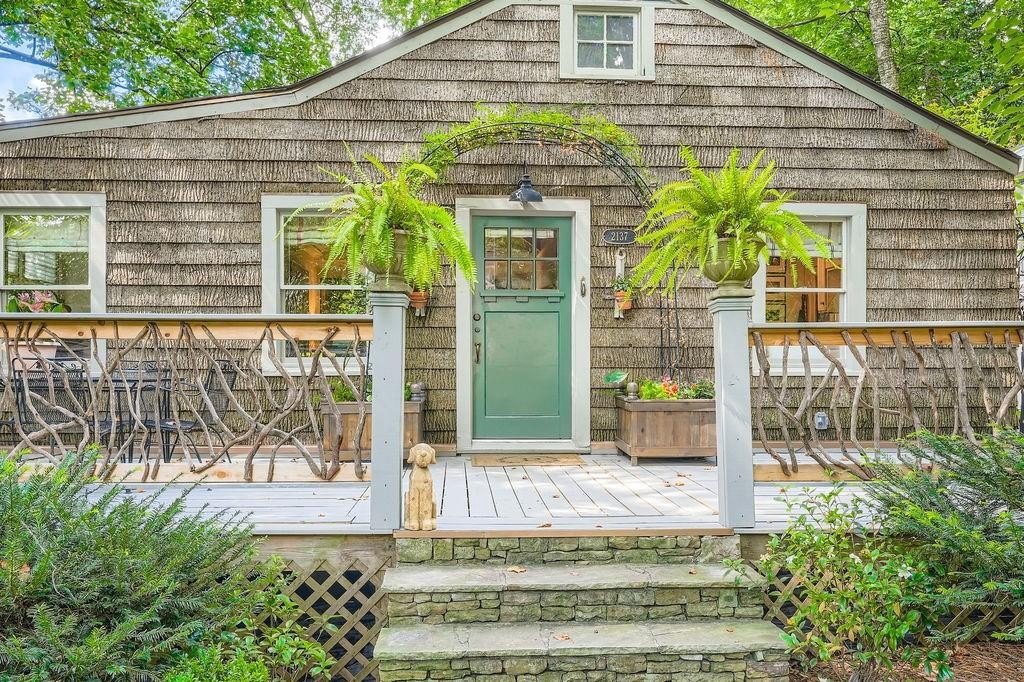 This most alluring and magical Buckhead cottage is a sanctuary in the heart of Atlanta. The serene energy absorbed soothes and calmly nurtures .The quiet, private setting on Virginia Place on a bluff above Peachtree Creek.(Seller notes that the property is not in the flood plain and that the property behind the rear property line belongs to a resident on Fairhaven Circle.) Driving up to the house, you will notice the front porch railing and the handsome bark shingles on the house front. The railing features rhododendron and the bark is poplar from Brevard, N. C. So you will feel the magic when you first see the home, complimented by well planned landscaping , reflecting privacy and peace. . Upon entering , the excitement and magnetic attraction impress you. The dining area, with wall of bookcases, and living area with fireplace, are centers of attraction. The adjacent kitchen, recently renovated, is a dream of taste, decor and convenience. Down the hall are 2 generous bedrooms; the 3rd could be used as an office study or den. The master bath ,recently renovated. is as you wish with style and comfort. Off the master is a most delightful screened porch , private ,relaxing and ripe for entertaining, just your "happy place"! From there you view or walk through