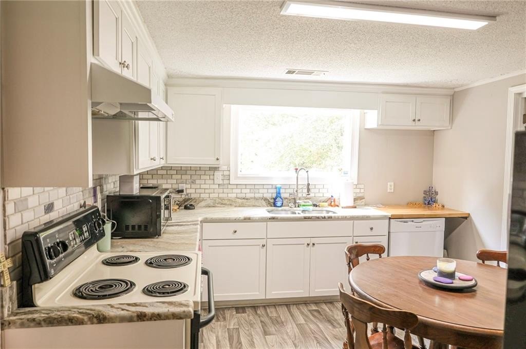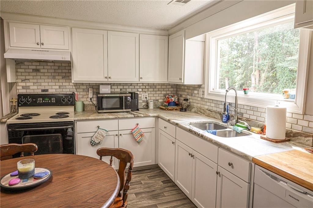 Step inside to a welcoming living room area with room to lounge. Off the living room is a bright, updated kitchen featuring white cabinetry, modern appliances, and a large window overlooking the backyard. The cozy living and dining areas are perfect for family gatherings or quiet evenings at home. The partially finished basement provides additional storage space or the ability to finish it out and make additional living space.