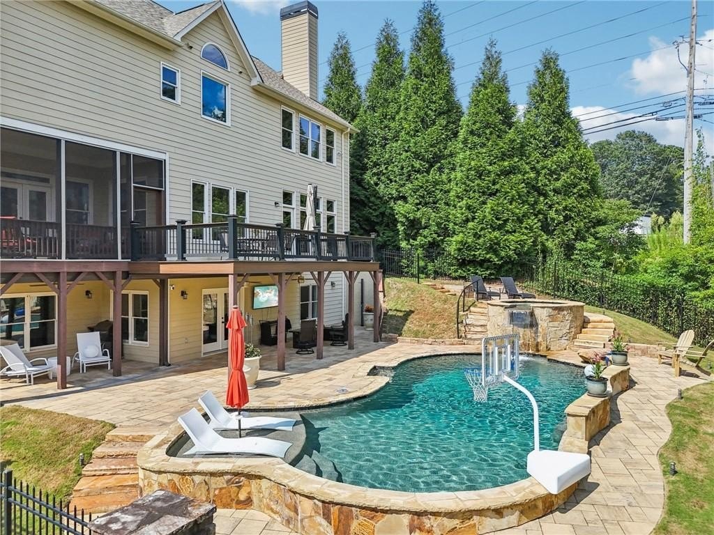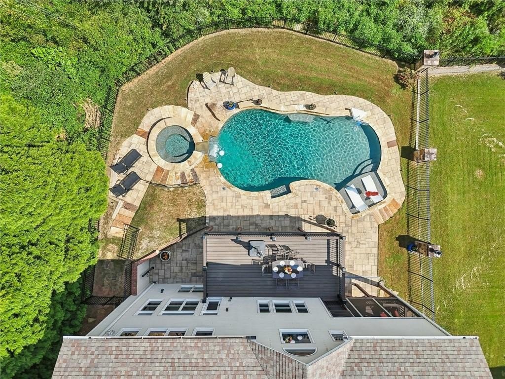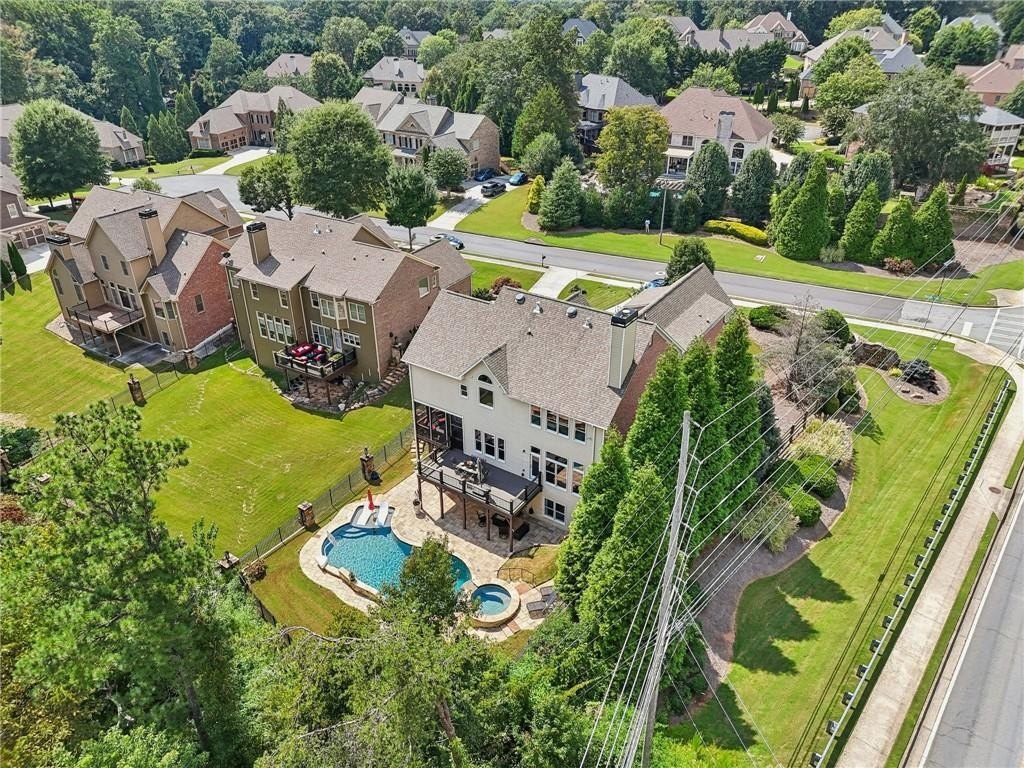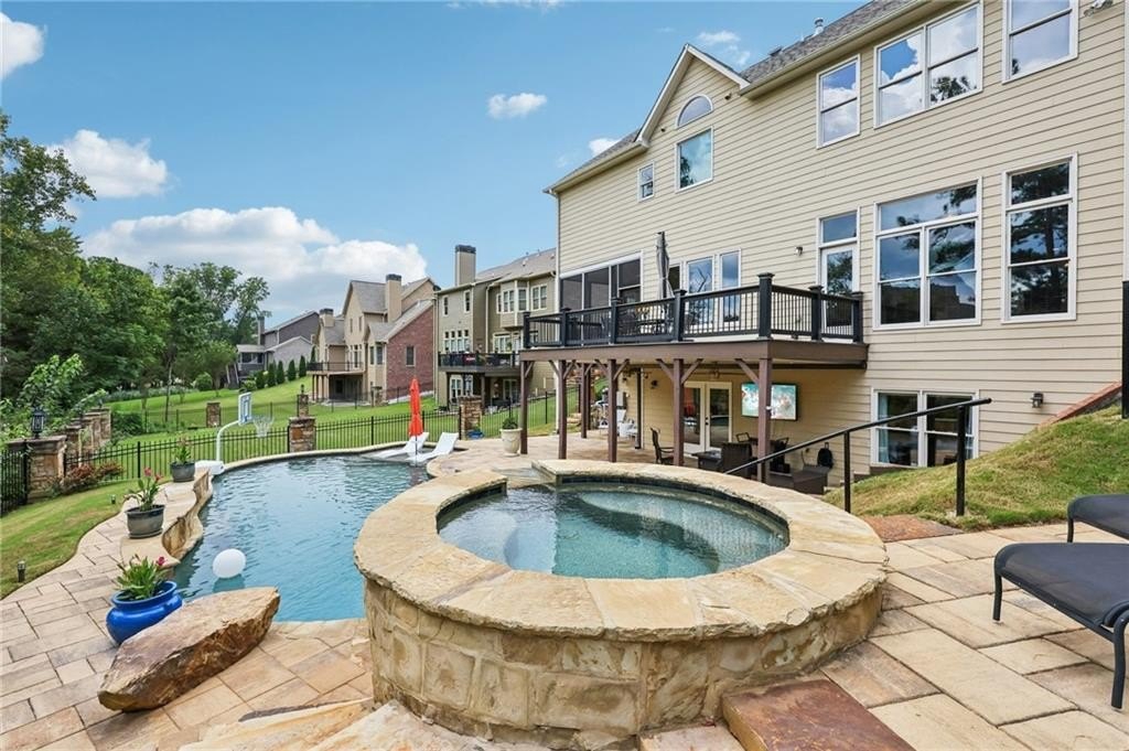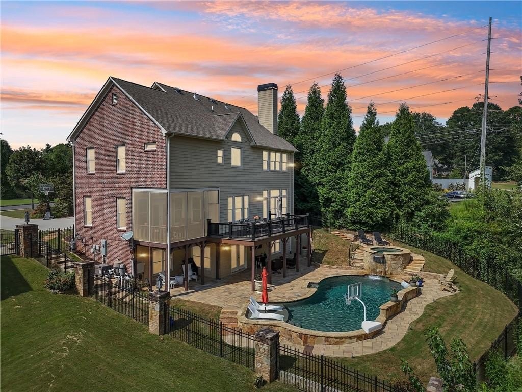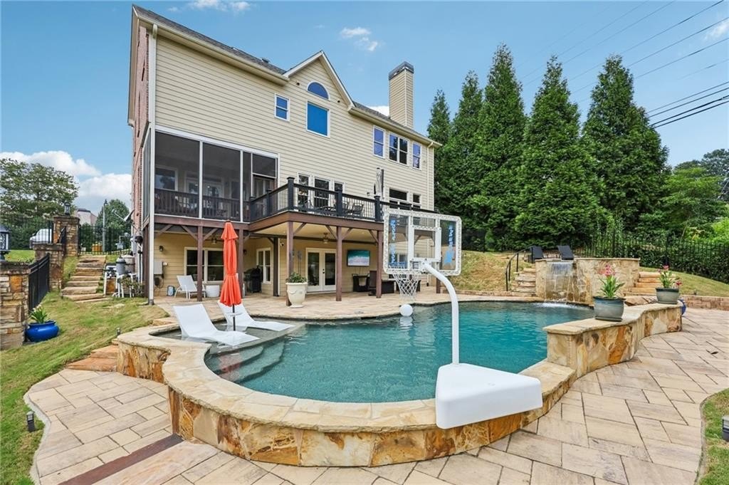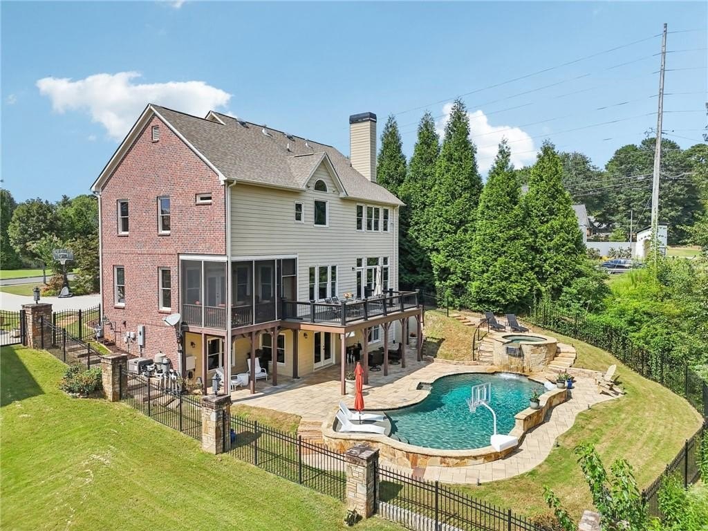Executive Luxury in East Cobb’s Premier School District. This isn’t just a home—it’s a lifestyle statement. Perfectly positioned in an exclusive East Cobb cul-de-sac and zoned to Davis Elementary, Mabry Middle, and Lassiter High—three of Georgia’s most sought-after schools—this immaculate 3-sided brick executive estate offers resort-style living with unmatched convenience to Marietta, Woodstock, and Roswell. From the moment you arrive, the professionally landscaped grounds and architectural lighting set the tone for refined elegance. The heated saltwater gunite pool with jacuzzi that waterfalls into the pool takes center stage in the backyard oasis, surrounded by multiple outdoor living areas: a stone pool deck for sun-soaked afternoons, a shaded terrace-level lounge, and a covered screened porch—perfect for morning coffee or a sunset toast. A sun ledge with in-pool chairs makes it just as perfect for children’s play as for adult relaxation. Inside, a grand foyer opens to an open floor plan designed for both elegance and ease. Hardwood floors flow throughout the main living spaces, complemented by detailed crown molding and a formal dining room fit for twelve. The fireside family room opens to the screened porch, while the keeping room—with its coffered ceiling, custom built-ins, and stone fireplace—frames tranquil views of your private backyard retreat. The gourmet kitchen is a chef’s dream, with stainless steel appliances, custom stained cabinetry, expansive granite counters, a breakfast bar, and a sunny eat-in nook. Upstairs, the primary suite is a showpiece—an elegant oversized bedroom with a private sitting room, spa-like bath featuring a soaking tub and separate shower, and an expansive walk-in closet. A junior primary suite with private en suite bath offers comfort for guests or multi-generational living, while two additional oversized bedrooms share a spacious Jack-and-Jill bath. An upstairs media room provides the perfect spot for movie marathons, gaming, or homework space. The finished terrace level is an entertainer’s dream, with high ceilings, luxury vinyl plank floors, a billiards area, guest suite with full bath, and abundant storage. The terrace-level media room is tailor-made for hosting—whether it’s movie night with friends or watching the big game on the weekend. Step right outside to your illuminated pool and jacuzzi, where every evening feels like a private resort under the glow of curated exterior lighting. Every detail of this home reflects exceptional craftsmanship, impeccable condition, and timeless design—the perfect blend of prestige, comfort, and convenience. This is more than a home—it’s the reward for all you’ve accomplished.