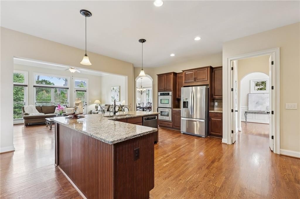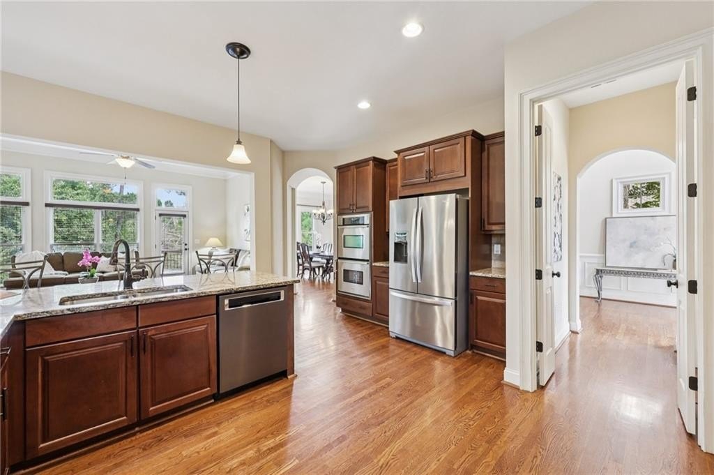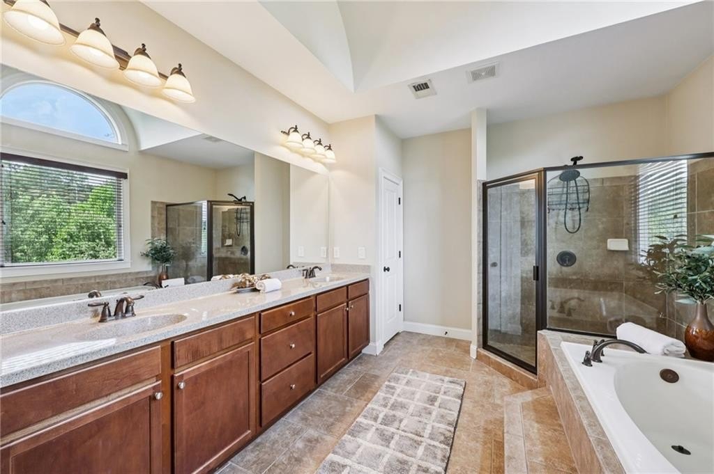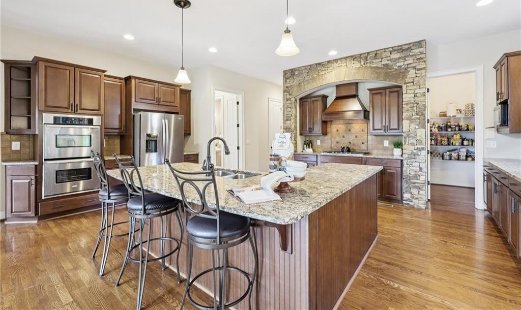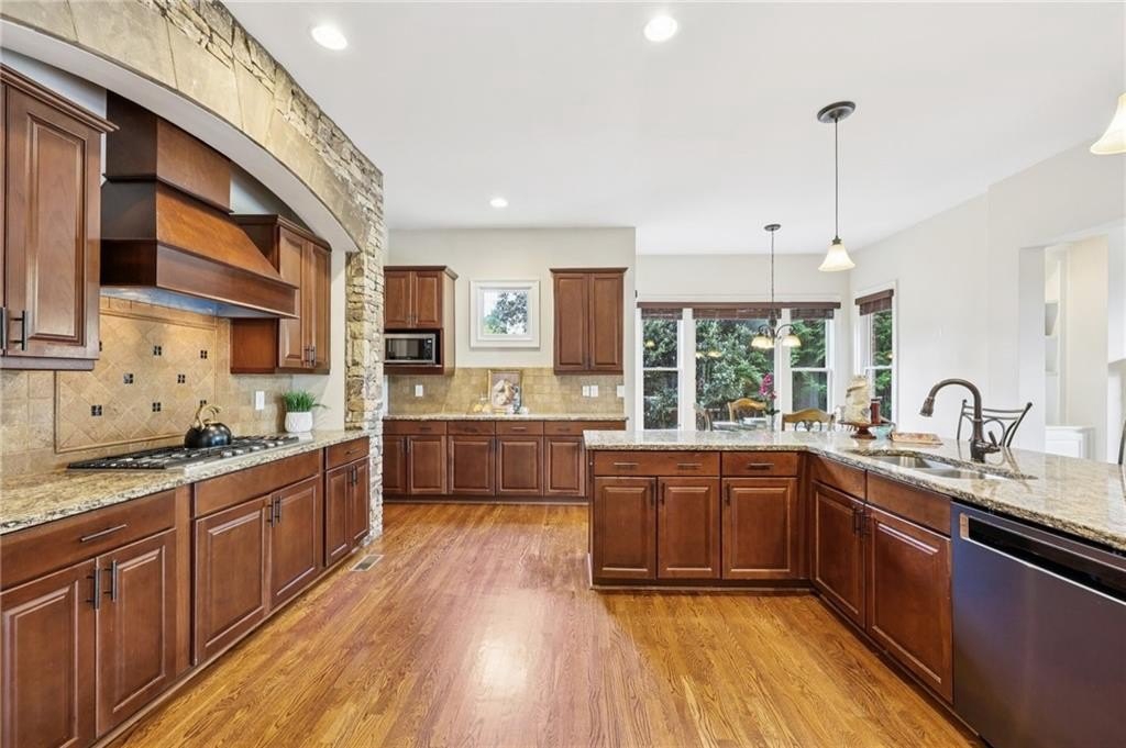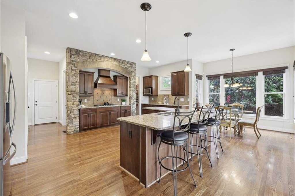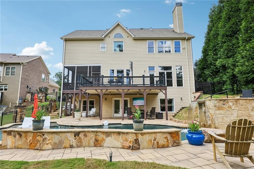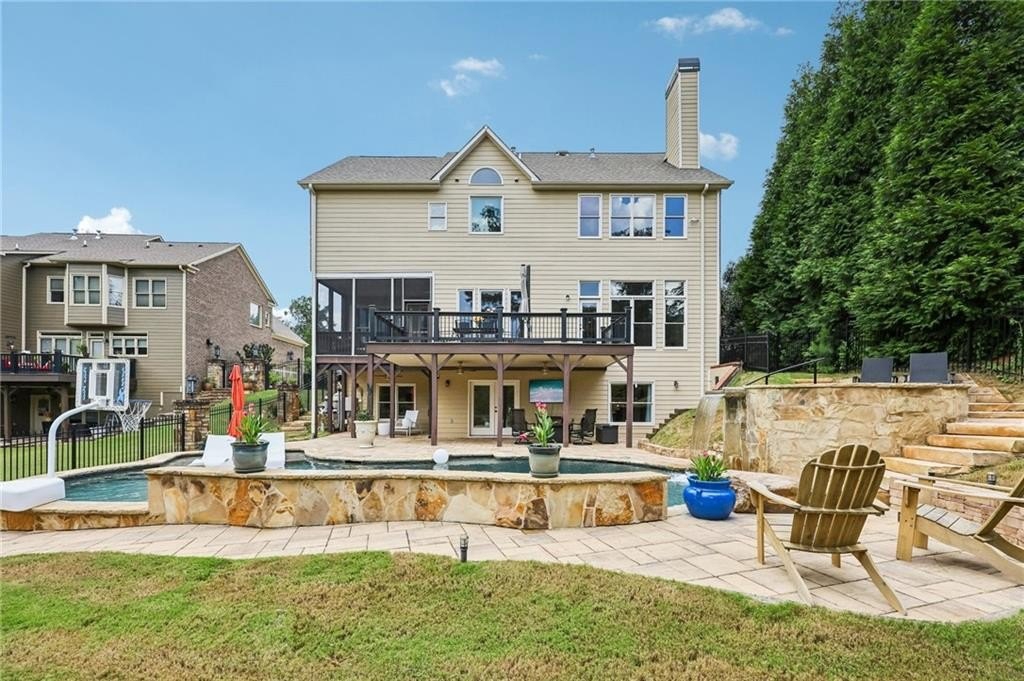 Executive Luxury in East Cobb’s Premier School District. This isn’t just a home—it’s a lifestyle statement. Perfectly positioned in an exclusive East Cobb cul-de-sac and zoned to Davis Elementary, Mabry Middle, and Lassiter High—three of Georgia’s most sought-after schools—this immaculate 3-sided brick executive estate offers resort-style living with unmatched convenience to Marietta, Woodstock, and Roswell. From the moment you arrive, the professionally landscaped grounds and architectural lighting set the tone for refined elegance. The heated saltwater gunite pool with jacuzzi that waterfalls into the pool takes center stage in the backyard oasis, surrounded by multiple outdoor living areas: a stone pool deck for sun-soaked afternoons, a shaded terrace-level lounge, and a covered screened porch—perfect for morning coffee or a sunset toast. A sun ledge with in-pool chairs makes it just as perfect for children’s play as for adult relaxation. Inside, a grand foyer opens to an open floor plan designed for both elegance and ease. Hardwood floors flow throughout the main living spaces, complemented by detailed crown molding and a formal dining room fit for twelve. The fireside family room opens to the screened porch, while the keeping room—with its coffered ceiling, custom built-ins, and stone fireplace—frames tranquil views of your private backyard retreat. The gourmet kitchen is a chef’s dream, with stainless steel appliances, custom stained cabinetry, expansive granite counters, a breakfast bar, and a sunny eat-in nook. Upstairs, the primary suite is a showpiece—an elegant oversized bedroom with a private sitting room, spa-like bath featuring a soaking tub and separate shower, and an expansive walk-in closet. A junior primary suite with private en suite bath offers comfort for guests or multi-generational living, while two additional oversized bedrooms share a spacious Jack-and-Jill bath. An upstairs media room provides the perfect spot for movie marathons, gaming, or homework space. The finished terrace level is an entertainer’s dream, with high ceilings, luxury vinyl plank floors, a billiards area, guest suite with full bath, and abundant storage. The terrace-level media room is tailor-made for hosting—whether it’s movie night with friends or watching the big game on the weekend. Step right outside to your illuminated pool and jacuzzi, where every evening feels like a private resort under the glow of curated exterior lighting. Every detail of this home reflects exceptional craftsmanship, impeccable condition, and timeless design—the perfect blend of prestige, comfort, and convenience. This is more than a home—it’s the reward for all you’ve accomplished.