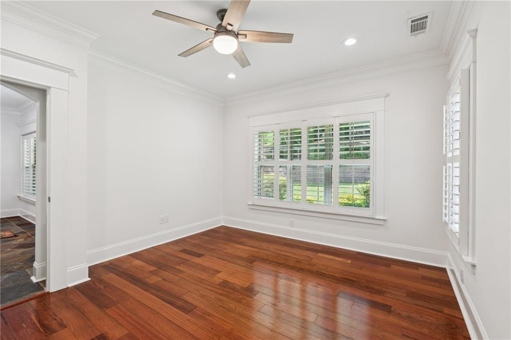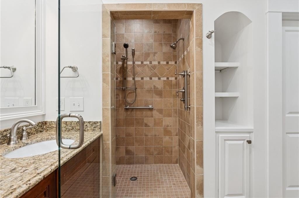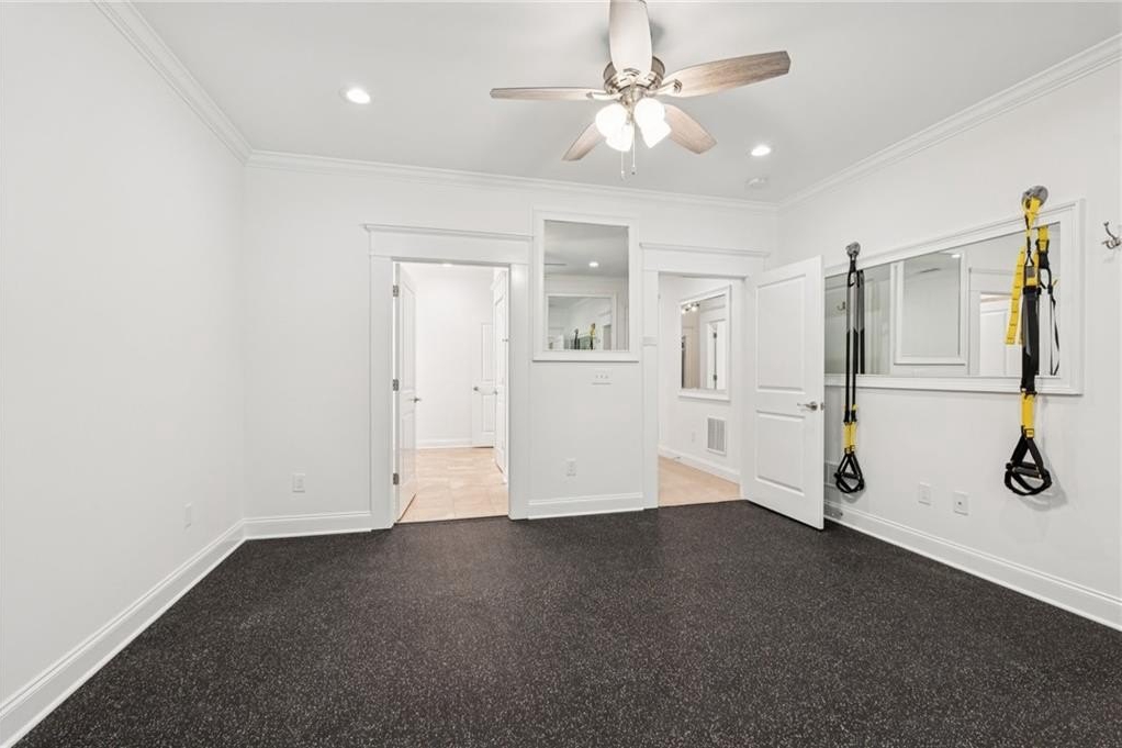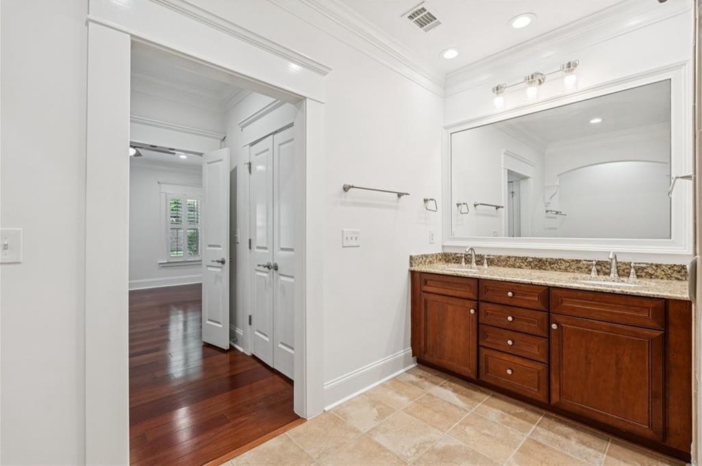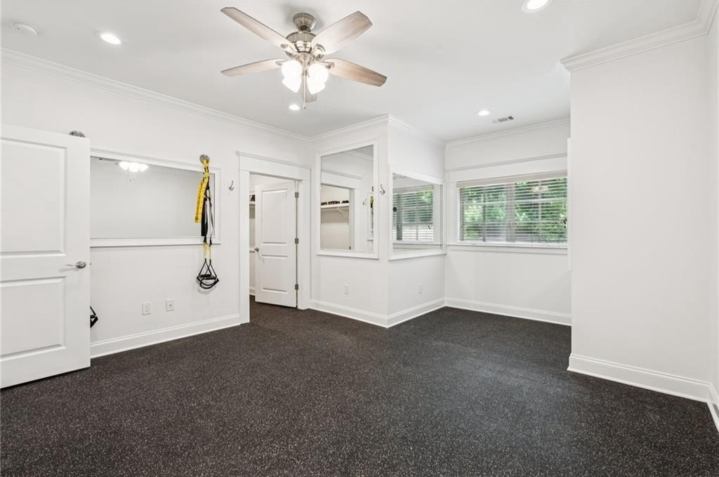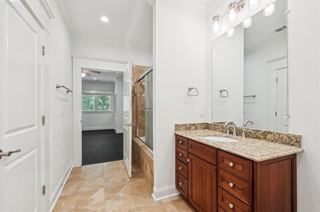 Discover refined living in this impeccably maintained 3 bedroom, 3.5 bath home, thoughtfully designed space. Located in the highly desirable Wellstone adult community in Cumming, this attached condominium lives like a single-family home and offers premium finishes, convenience, and versatility at every turn. Best location in neighborhood with extreme privacy and green space. Step into a bright, open floor-plan with rich hardwood floors, extensive trim detail, and a coffered ceiling that sets the tone in the spacious fireside living room. The chef’s kitchen is an entertainer’s dream, featuring granite countertops, tile backsplash, stainless steel appliances, a center island, pantry with slide-out shelves, and view to the living and dining areas. The main level double master suites are a true retreat, complete with a spa-like bath, oversized double vanities, frameless glass showers with multiple shower heads, soaking tub, and two custom walk-in closets each. Upstairs, you'll find a full bath, a bonus flex space, and a private home theater – already outfitted and ready for your movie nights. The home also includes a rare stair lift for accessibility, custom window shutters throughout, generous closets, and a laundry room with sink and storage. Enjoy the covered front porch, backyard patio, and zero-maintenance exterior thanks to HOA-managed landscaping. The two-car garage, newer mechanicals, and access to community clubhouse, fitness center, and pool make this a truly low-maintenance, upscale lifestyle. The 2nd floor bedroom is ready for gym or seller will replace with carpet to match and remove mirrors.