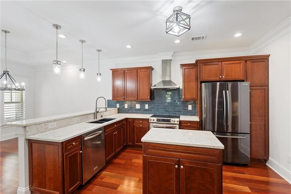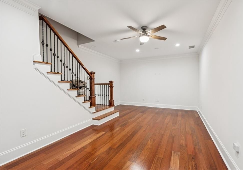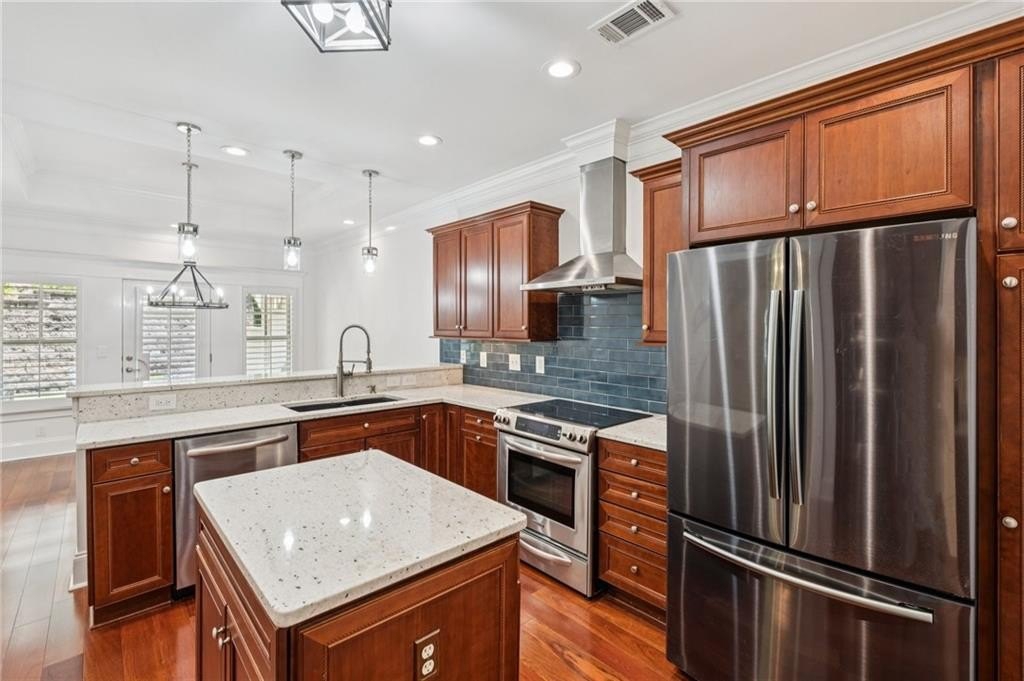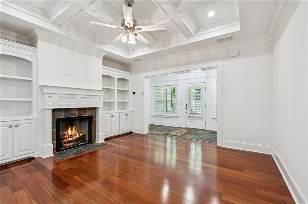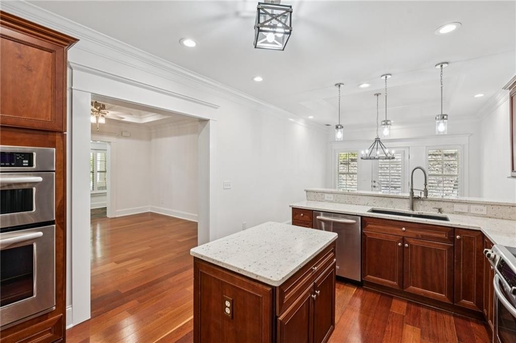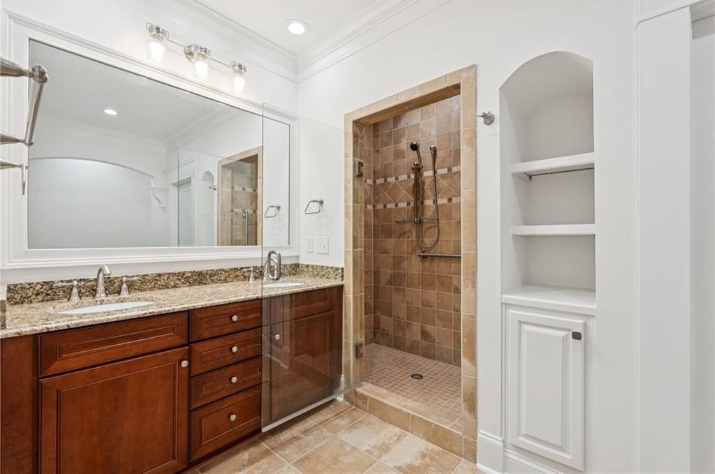 Discover refined living in this impeccably maintained 3 bedroom, 3.5 bath home, thoughtfully designed space. Located in the highly desirable Wellstone adult community in Cumming, this attached condominium lives like a single-family home and offers premium finishes, convenience, and versatility at every turn. Best location in neighborhood with extreme privacy and green space. Step into a bright, open floor-plan with rich hardwood floors, extensive trim detail, and a coffered ceiling that sets the tone in the spacious fireside living room. The chef’s kitchen is an entertainer’s dream, featuring granite countertops, tile backsplash, stainless steel appliances, a center island, pantry with slide-out shelves, and view to the living and dining areas. The main level double master suites are a true retreat, complete with a spa-like bath, oversized double vanities, frameless glass showers with multiple shower heads, soaking tub, and two custom walk-in closets each. Upstairs, you'll find a full bath, a bonus flex space, and a private home theater – already outfitted and ready for your movie nights. The home also includes a rare stair lift for accessibility, custom window shutters throughout, generous closets, and a laundry room with sink and storage. Enjoy the covered front porch, backyard patio, and zero-maintenance exterior thanks to HOA-managed landscaping. The two-car garage, newer mechanicals, and access to community clubhouse, fitness center, and pool make this a truly low-maintenance, upscale lifestyle. The 2nd floor bedroom is ready for gym or seller will replace with carpet to match and remove mirrors.