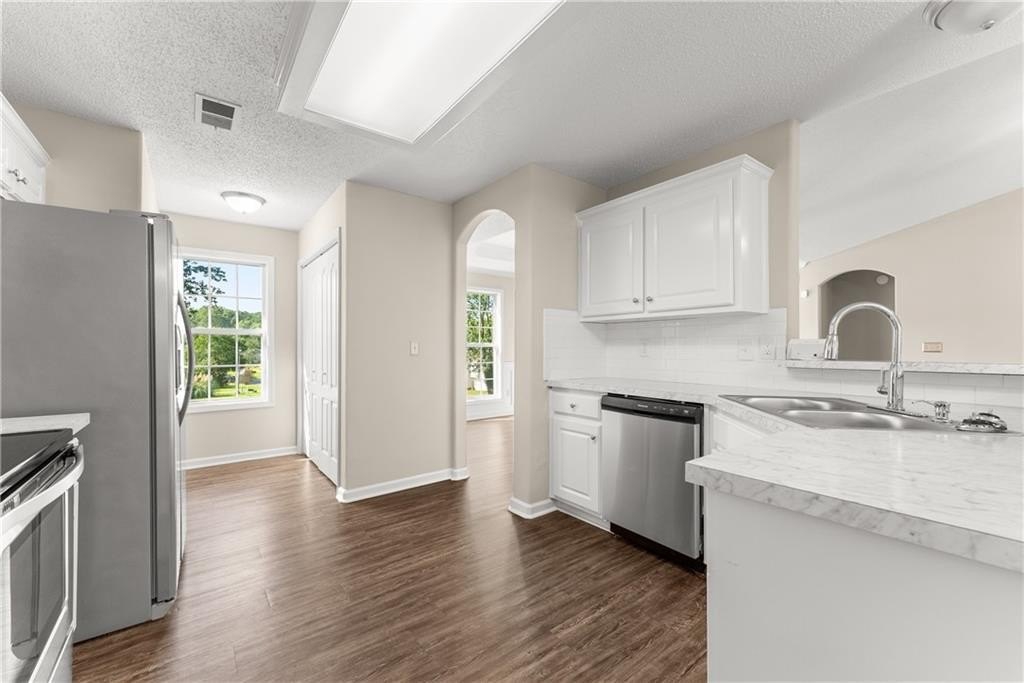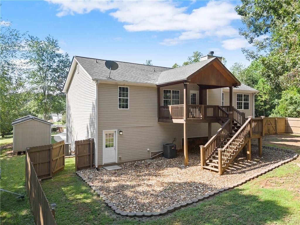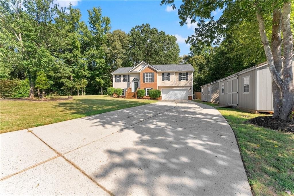 Welcome to this beautifully updated and expansive split-level home, perfectly nestled on a quiet, wooded cul-de-sac lot spanning over an acre in a non-HOA community! This move-in ready gem offers the ideal blend of space, comfort, and modern upgrades — inside and out. Step inside to discover fresh interior paint and brand-new flooring. The heart of the home features an open-concept eat-in kitchen with stainless steel appliances and flows seamlessly into the large, light-filled living room with vaulted ceilings, a cozy fireplace, and access to the oversized covered back deck overlooking your private backyard oasis. Formal dining room perfect for entertaining. Retreat to the spacious master suite featuring tray ceilings, plush new carpet, double vanities, separate shower and soaking tub, and updated vinyl flooring. Two additional bedrooms and another full bath complete the upstairs. The lower level offers incredible flexibility with a fourth bedroom, full bath, and a versatile bonus room or potential 5th bedroom — ideal for guests, a home office, or playroom. Plus, enjoy the convenience of a finished storage room behind the garage for all your extras. Additional highlights include: Newer roof, HVAC systems, and water heater. Septic tank pumped (August 2025). New gutters (2023). Comcast security system with 4 cameras, 2 keypads, motion sensor & door sensors – all included. Two larger storage buildings are included as well! With plenty of room to grow, entertain, or simply relax in nature, this Barrow County beauty checks every box. Schedule your tour today and make this home your own!