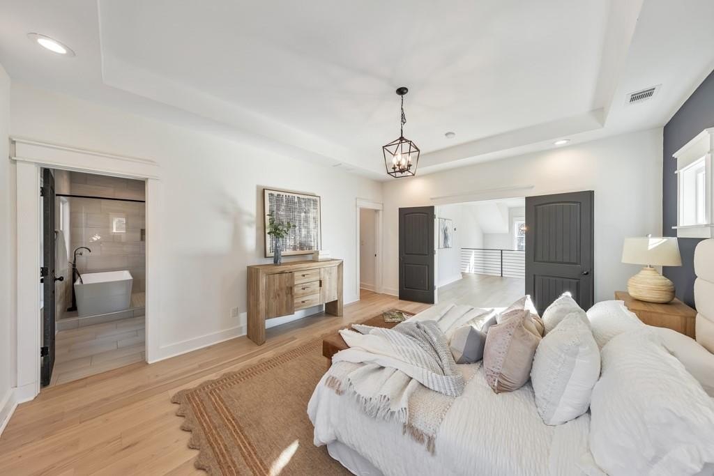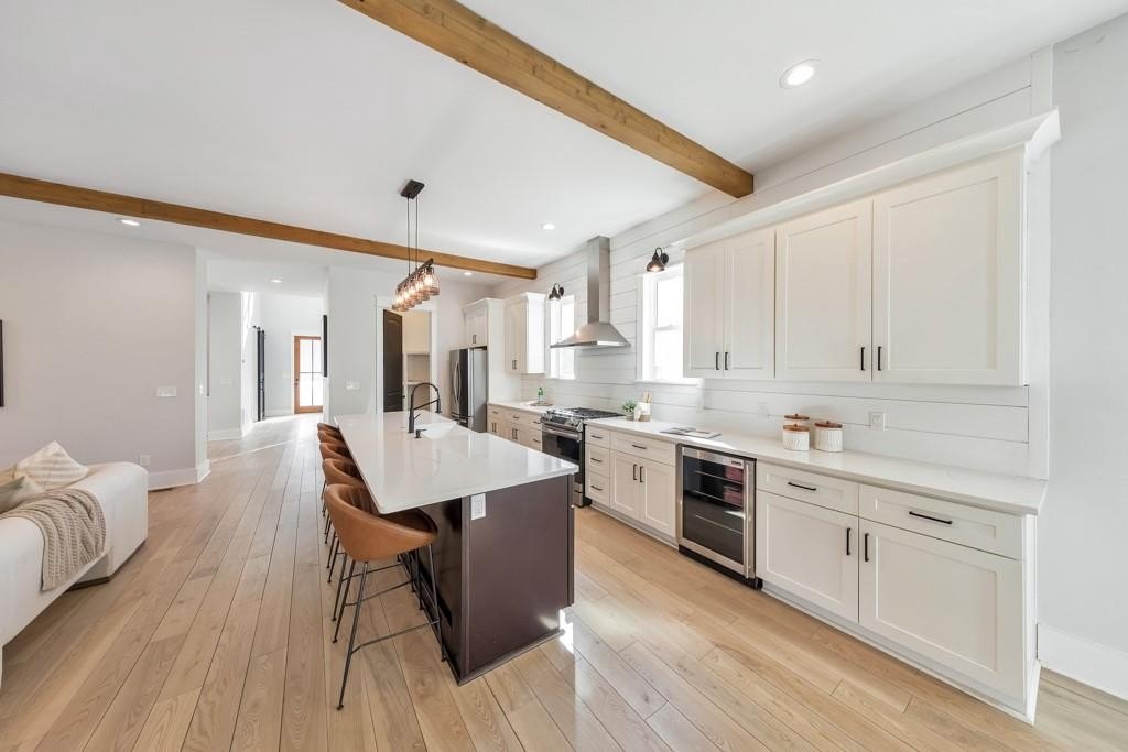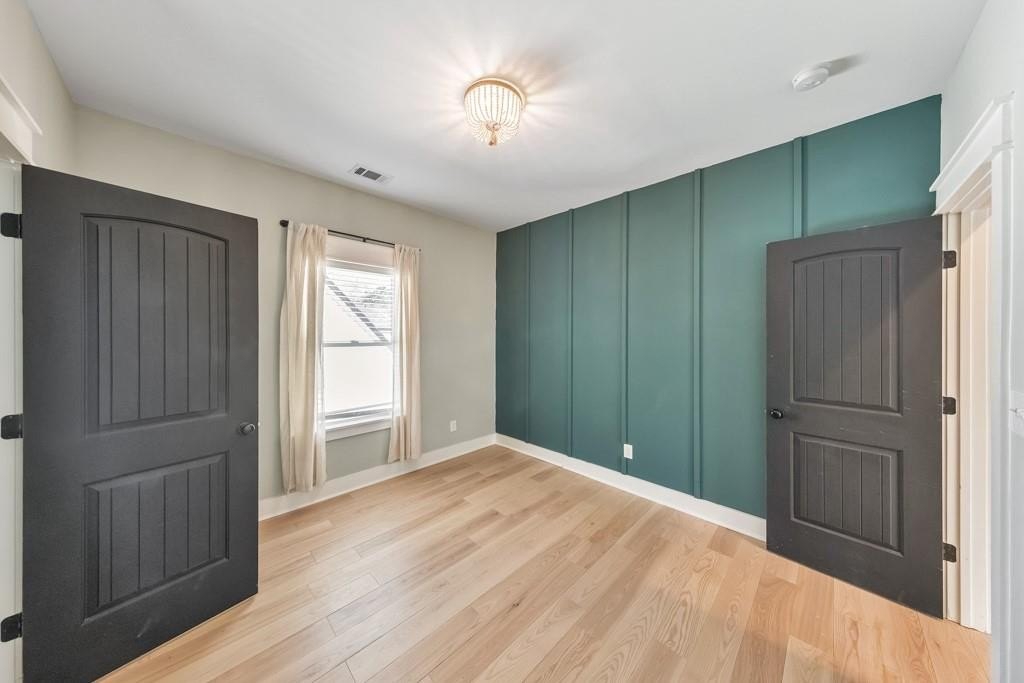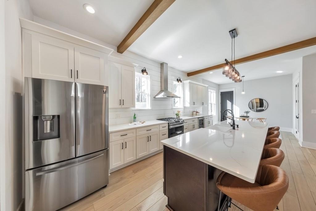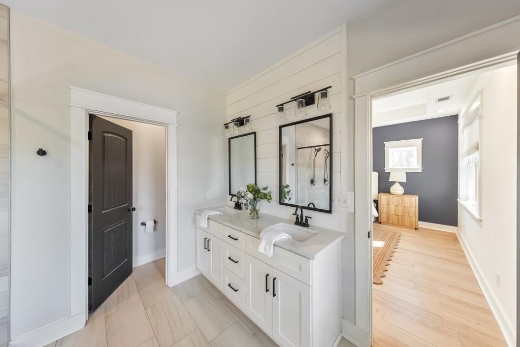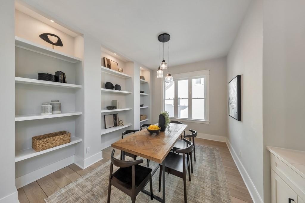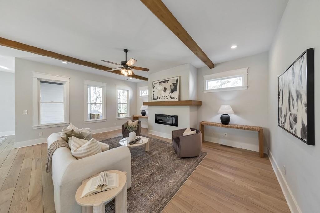 Welcome to this stunning modern retreat in the heart of Atlanta! Built in 2021, this exceptional 4-bedroom, 3.5-bathroom residence showcases impeccable craftsmanship and high-end designer finishes at every turn. A welcoming covered front porch leads into a dramatic two-story foyer. Entertain in style in the elegant dining room, complete with custom built-in bookshelves and a sleek wet bar, or relax in the fireside family room highlighted by beamed ceilings and expansive windows. The chef's kitchen is a showstopper with a large center island for gathering, stone countertops, crisp white cabinetry, a sunny breakfast room, and a walk-in pantry offering abundant storage. Upstairs, a spacious loft provides the perfect flex space for a lounge, home office, or play area. The luxurious primary suite impresses with tray ceilings and a spa-inspired ensuite featuring dual vanities, a soaking tub, and a double-head walk-in shower, plus an oversized custom closet with built-in storage. Two generously sized secondary bedrooms share a beautifully appointed full bath, and the convenient upper-level laundry room completes the floor. Step outside to enjoy year-round living on the covered side porch or gather with friends around the firepit in the large, fenced backyard. An attached two-car garage adds everyday ease. Perfectly positioned near I-20 and I-285, John A. White Golf Course, and a wealth of premier shopping, dining, and entertainment, this stunning home blends modern luxury with unbeatable Atlanta convenience.