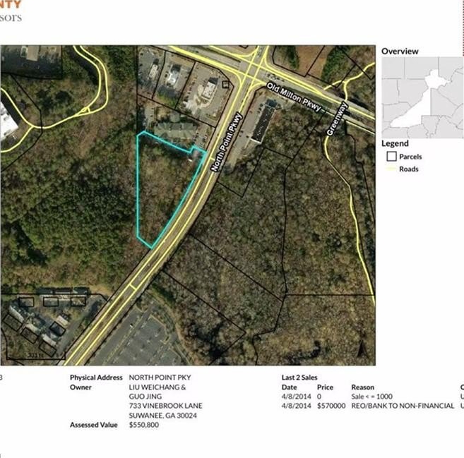 Rare Commercial Lot in Alpharetta! Approximately 3.055 acres on North Point Parkway,off Old Milton Parkeay. Only 0.5 miles from GA-400 Exit 10! One mile to Avalon | Two miles to Downtown Alpharetta | Three miles to North Point Mall | Two miles to Big Creek Greenway | Three miles to Ameris Bank Amphitheatre. Surrounded by Fortune 500 & top tech companies including Microsoft, SAP, AT&T, T-Mobile, Wells Fargo, ADP, Fiserv, Equifax, LexisNexis, BitPay, Ciox Health, Colonial Pipeline, Jackson Healthcare & more! With immediate access to GA-400 and proximity to Alpharetta’s premier business, retail, and lifestyle destinations, this site represents a rare opportunity for investors and developers seeking high-visibility land in one of Metro Atlanta’s most dynamic corridors.(Fulton County Tax Parcel ID: 12-311009110483)