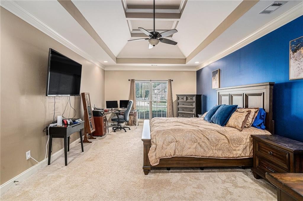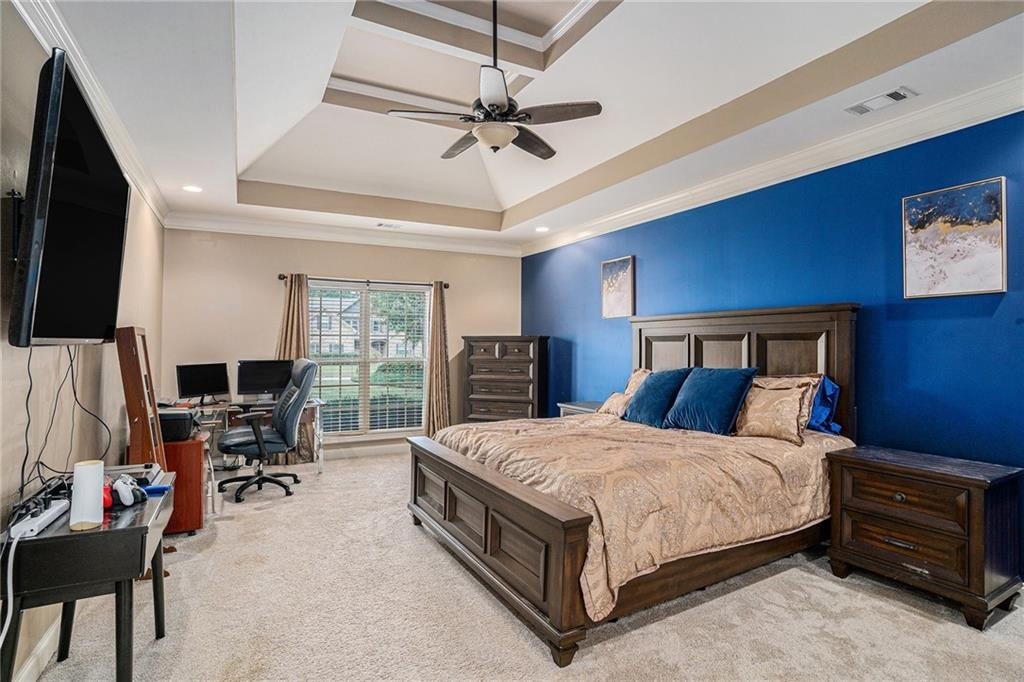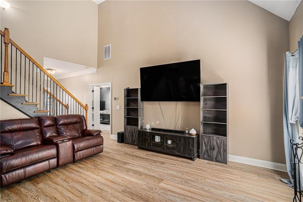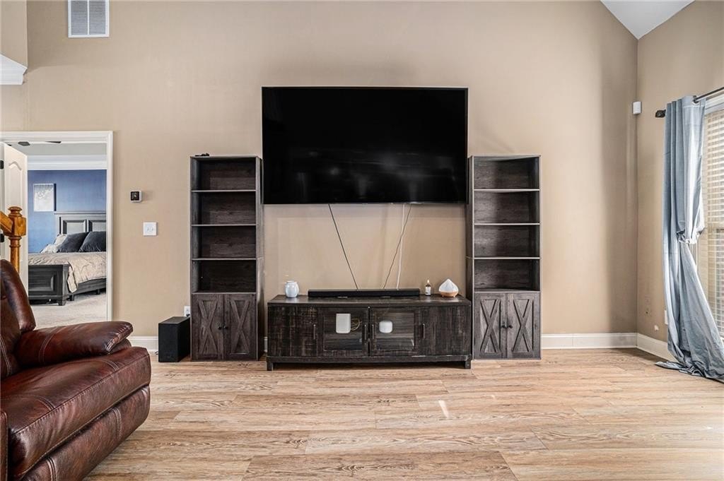 The owner’s suite on the main level is a true haven, featuring vaulted ceilings, dual closets for individual use, and a luxurious en-suite bath with two separate vanities—designed for both comfort and convenience. The first level also offers a bonus room ideal for a home office, playroom, or guest space, as well as a separate dining room perfect for entertaining.