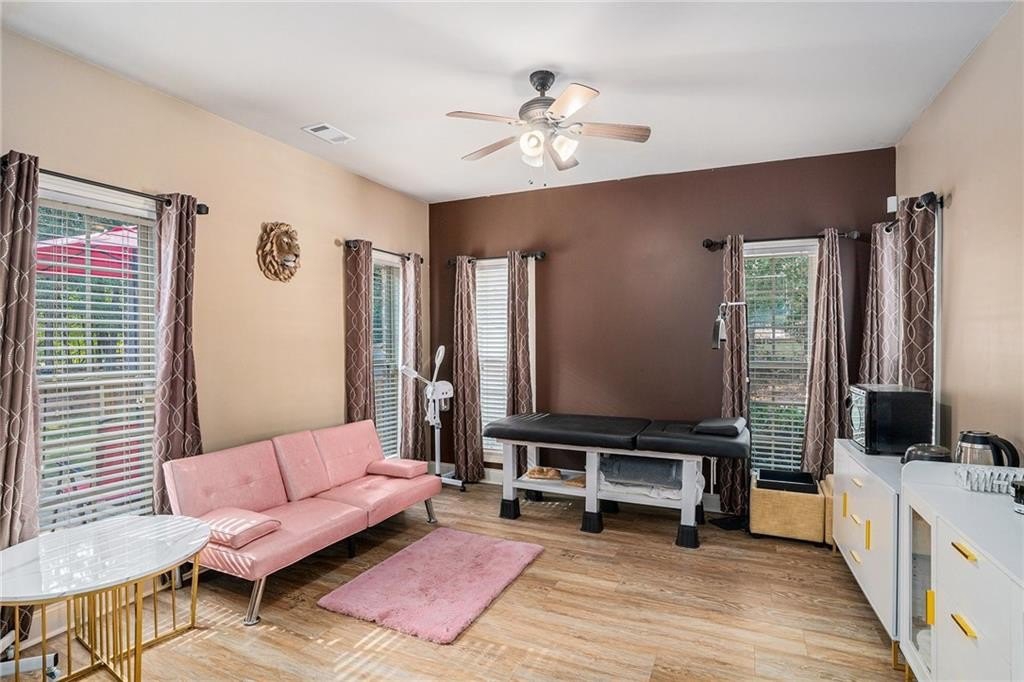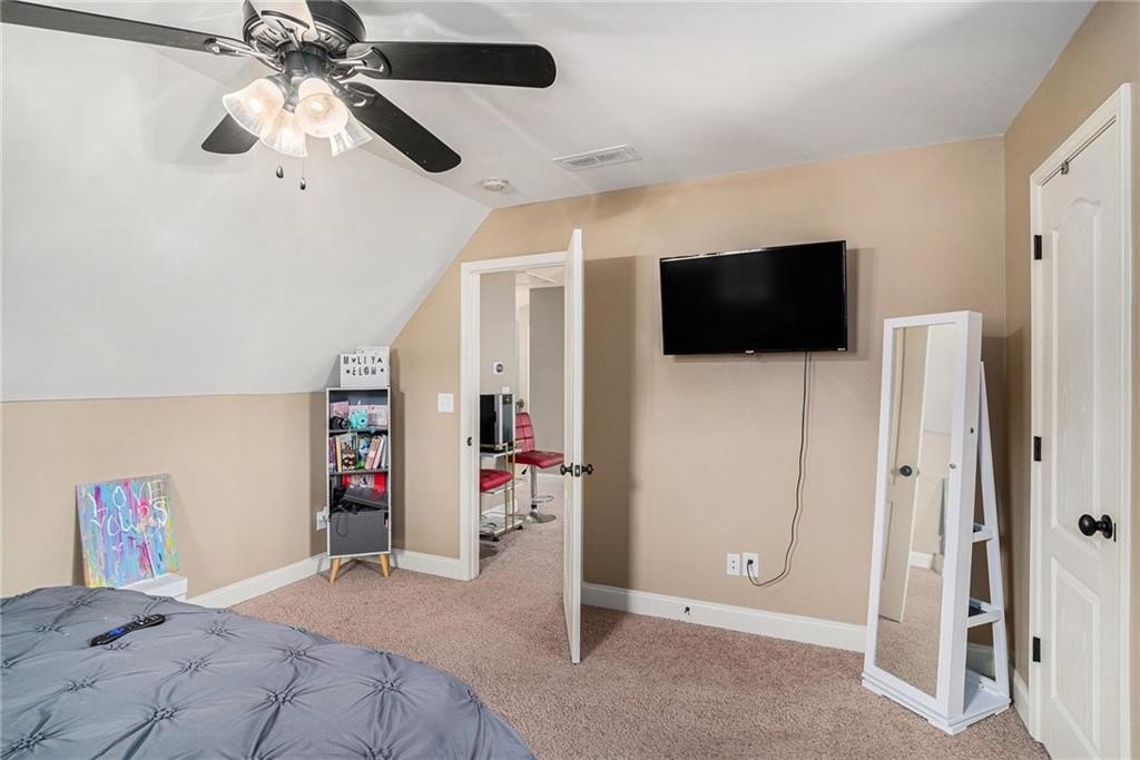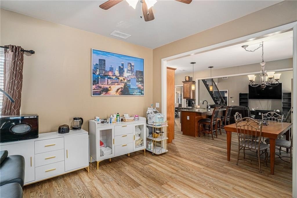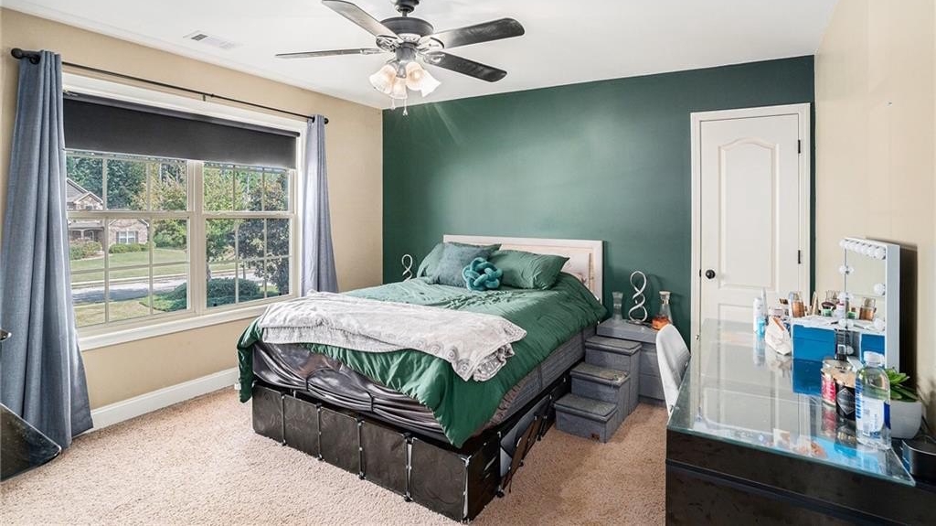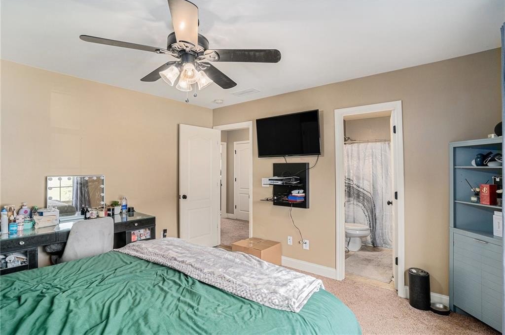 Enjoy cozy nights by the wood-burning fireplace, creating the perfect atmosphere during Atlanta’s cooler seasons. Upstairs, two generously sized bedrooms are connected by a Jack and Jill bathroom, while an additional bedroom and full bath provide even more flexibility.