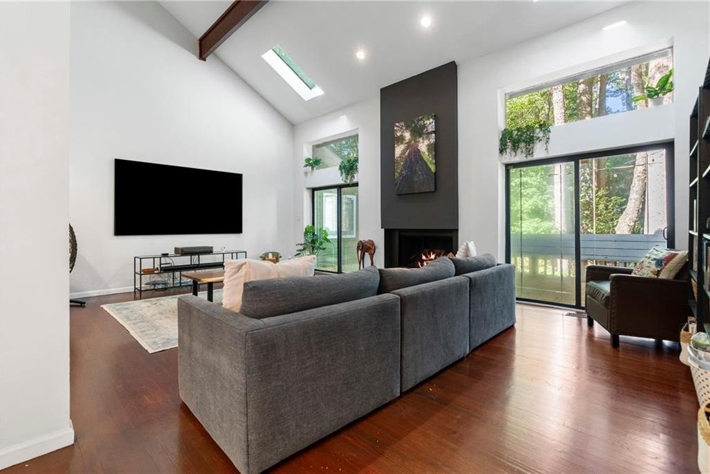 Your Dreamy Treehouse Retreat in the Heart of Smyrna! Welcome to this one-of-a-kind contemporary gem in the sought-after Charleston Place neighborhood! Nestled on a serene, private lot at the back of the community, this updated home offers the perfect blend of modern comfort and treehouse charm — with unmatched privacy and space. Step inside to discover an open floor plan with gleaming hardwood floors, soaring vaulted ceilings, and an abundance of natural light. Multiple living areas and two cozy fireplaces create the ideal setting for both relaxing and entertaining. The chef’s kitchen is a true showstopper — featuring granite countertops, rich stained cabinetry, stainless steel appliances including double ovens, a breakfast bar, and ample storage. Hosting for the holidays? The spacious dining room easily accommodates 12+ guests! Double sliding glass doors open to an expansive back deck overlooking a lush, private backyard — perfect for entertaining, relaxing, or creating your outdoor dream space. The main-level primary suite is a peaceful retreat, complete with vaulted ceilings, a cozy sitting area, and a spa-like bath with double vanities, a soaking tub, separate shower, and two closets — including a hidden cedar walk-in closet! Upstairs, you’ll find two additional bedrooms, a full bath, a versatile loft space, and a large bonus room. The loft leads to a private in-law suite with its own exterior entrance, full bathroom, and current use as a gym — perfect for multigenerational living, a home business, or potential rental income. This unique home is truly move in ready with numerous updates completed in the last few years, including: new upstairs HVAC (2024), new gutters (2024), exterior painted (2024), encapsulated crawlspace (2023), new garage garage door (2022), new roof & skylights (2022), refreshed electrical panel & whole-home surge protector added (2022), and added 60 amp 240 V electric car charging plug (2022). Located in the highly rated Nickajack Elementary district, this home combines charm, space, and smart updates in one unbeatable package. Don’t miss your chance to own this unique retreat in one of Smyrna’s most desirable neighborhoods!