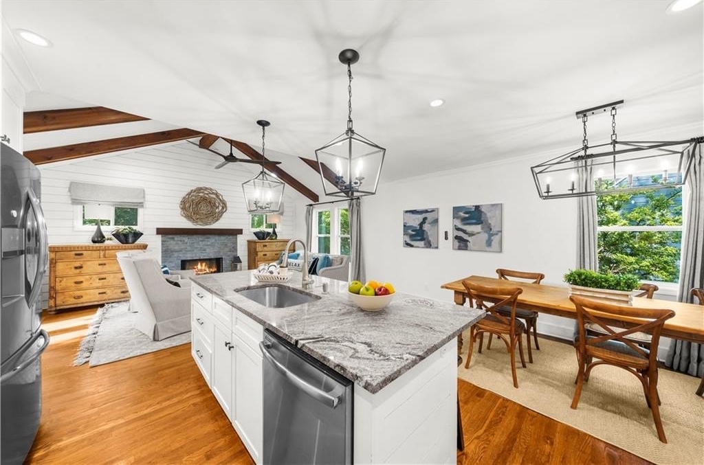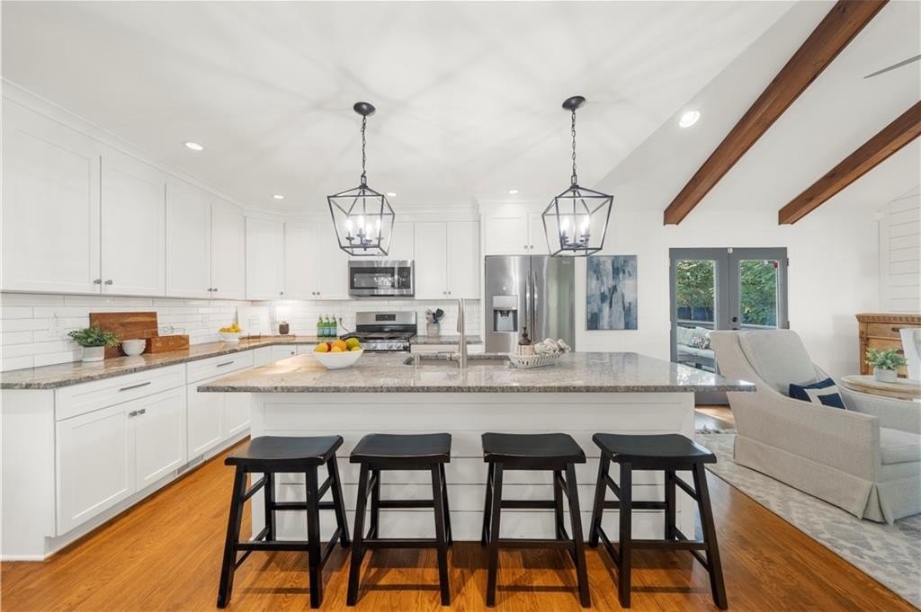 Welcome home to this beautifully updated property tucked away on a quiet cul-de-sac street in the highly coveted Keswick Village neighborhood, right in the heart of Chamblee. This 3-bedroom, 2-bathroom residence offers a perfect blend of luxury, comfort, and functionality and is the definition of turnkey, featuring FRESH interior paint, NEW carpet upstairs, NEW lighting, NEWER roof, NEWER double pane windows, NEWER A/C system, and NEWER sewer line to street, giving you peace of mind and worry-free living! As you enter the front door, you’ll be greeted by gorgeous hardwood floors throughout the main level and a multi-purpose living room that’s perfect for entertaining, watching tv, setting up a home office, curling up to a book by the windows, etc. At the heart of the home, the modern kitchen showcases stainless steel appliances, subway tile backsplash, soft-close cabinets, granite countertops, and a large island perfect for gathering. This open-concept space flows seamlessly into the family room, where a vaulted ceiling flanked with exposed beams and fireplace create a warm and inviting atmosphere. Rounding out the main floor are two spacious bedrooms and an updated hallway bathroom with a new vanity and a tiled tub/shower combo. Upstairs, you’ll find the laundry closet, an oversized primary suite that contains his and hers closets (one is a walk-in), and a renovated ensuite bathroom, complete with a sizable double vanity, a huge glass-enclosed tiled walk-in shower, shiplap walls, updated lighting, and new mirrors. If you enjoy outdoor living space, then this is the home for you- French doors in the family room lead to an oversized deck overlooking the fenced-in private backyard, that’s perfect for grilling out, hosting friends & family, enjoying s’mores by the firepit, or soaking up some rays. The large backyard is ideal for outdoor activities (cornhole anyone?) and features a garden shed for additional storage. The location of this home couldn’t be better, as it’s walking distance to Keswick Park, Blackburn Park, Chamblee Rail Trail, and many of Chamblee’s top restaurants & retail destinations, in addition to being just minutes away from Chamblee’s Downtown Entertainment District. Also easy access I-285, GA-400, Peachtree Industrial/Peachtree Blvd, and 141, making your work commute seamless. Schedule a viewing today and experience the lifestyle you've always dreamed of!