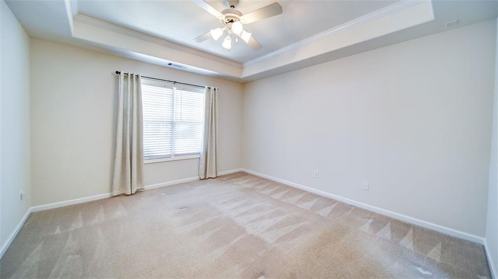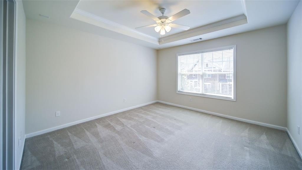 PRIMARY SUITE is on the MAIN LEVEL and features double vanities, walk-in shower, separate tub and a walk in closet. On the main level you will also find a 1/2 bath, linen closet and coat closet. Upstairs there are two large secondary bedrooms with large walk-in closets that share a full bathroom. A large LOFT SPACE overlooks the family room and can be used as an office, work out area, or playroom. This home has been freshly painted and is ready for you to call it home. Suwanee Station has AMAZING AMENITIES and is conveniently located to Fresh Market, Publix, Parsons and so many yummy restaurants. It offers easy access to 85 and Peachtree Industrial Blvd.