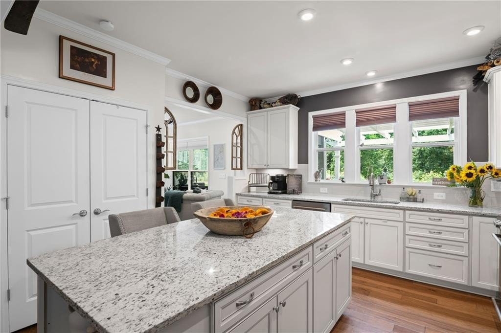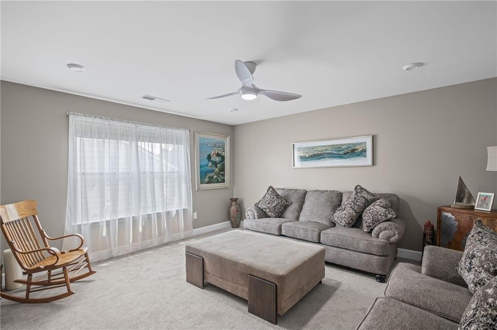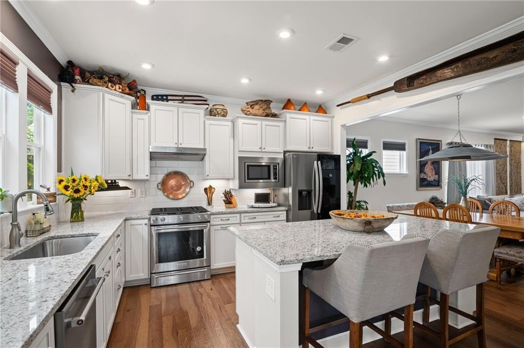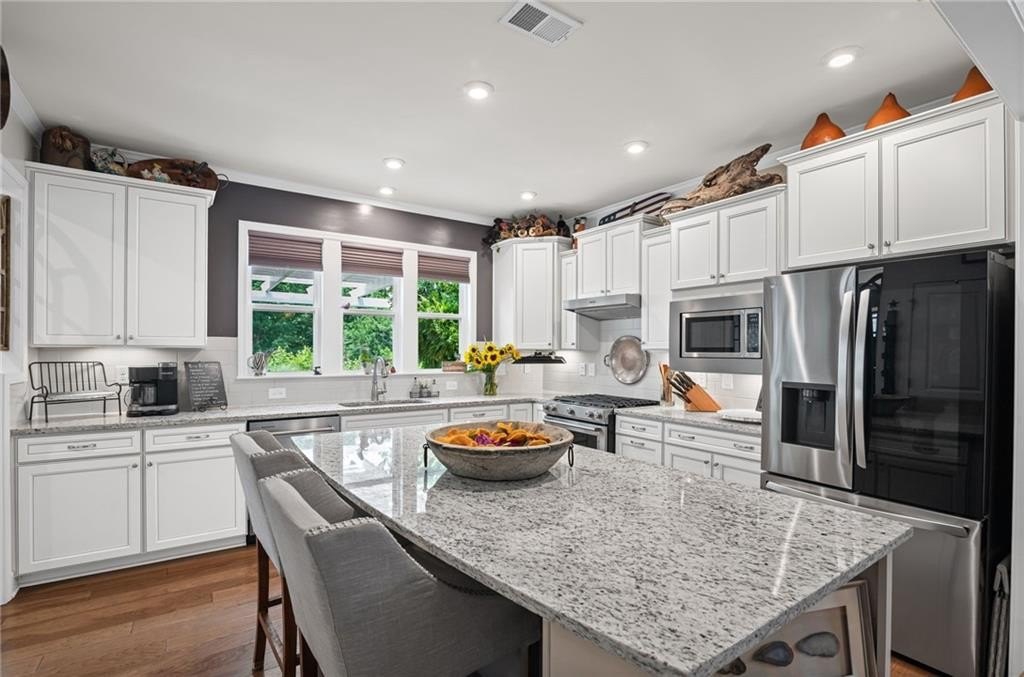 Modern conveniences abound: all major LG appliances, washer, dryer, and refrigerator, are under two years old. The primary suite boasts a walk-in closet with added shelving, and the upgraded bath features three shower heads plus a window for natural light. The garage offers built in shelving, a rare 4-foot expansion, and walk-up attic storage, an incredible convenience upgrade.