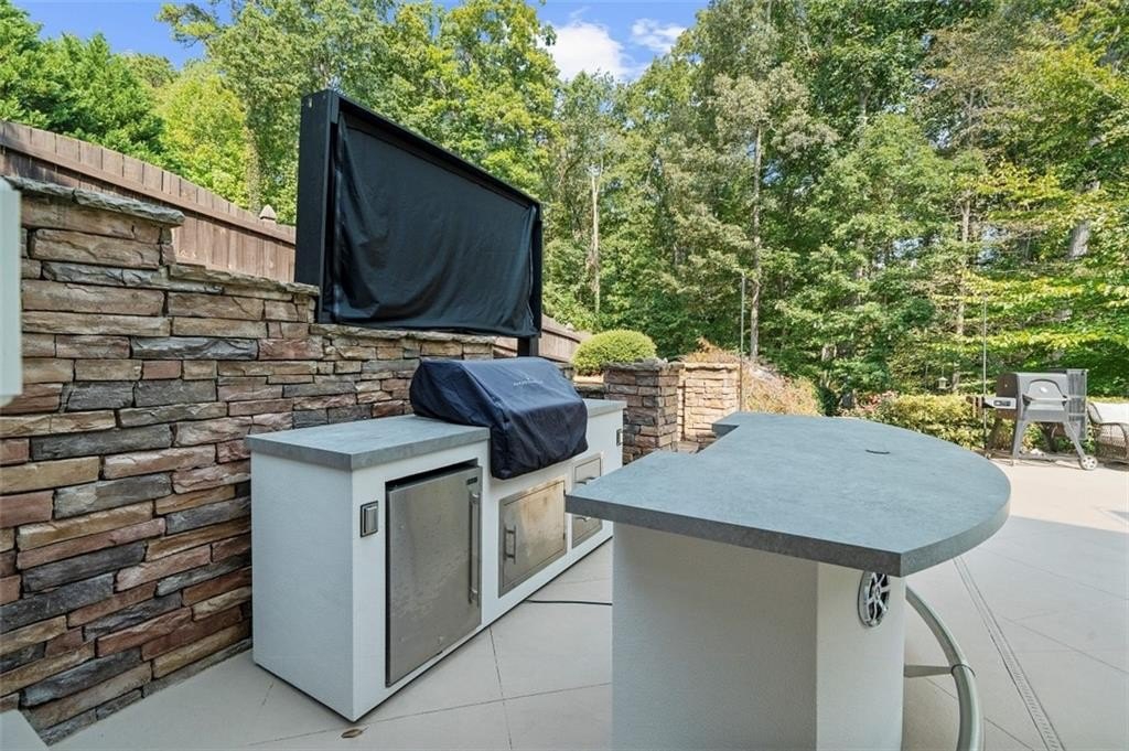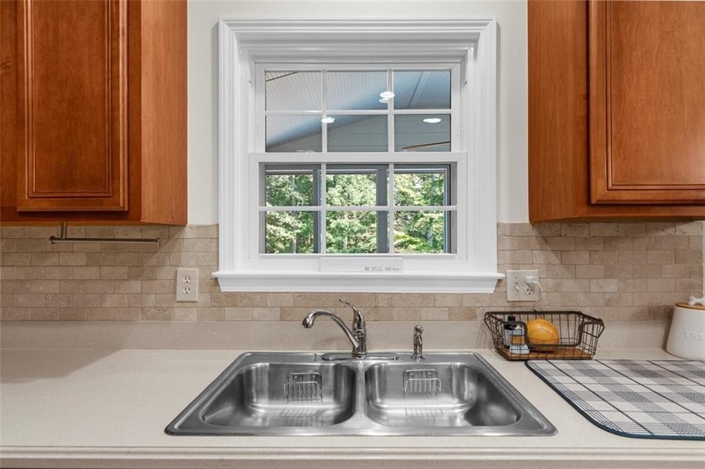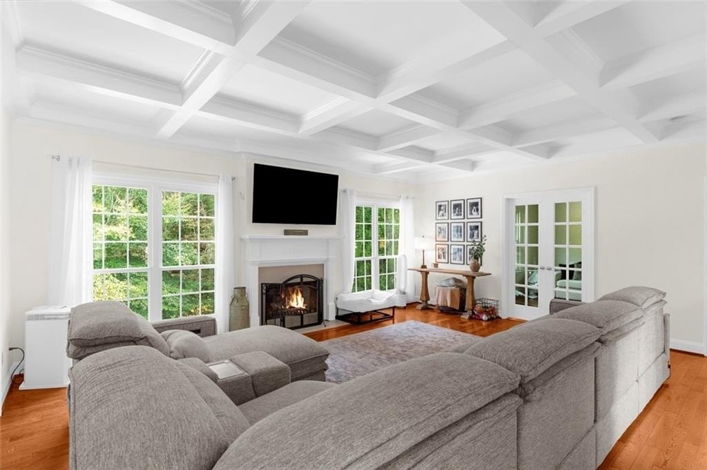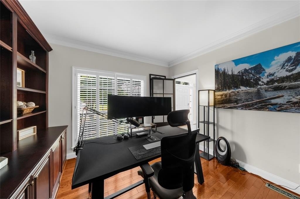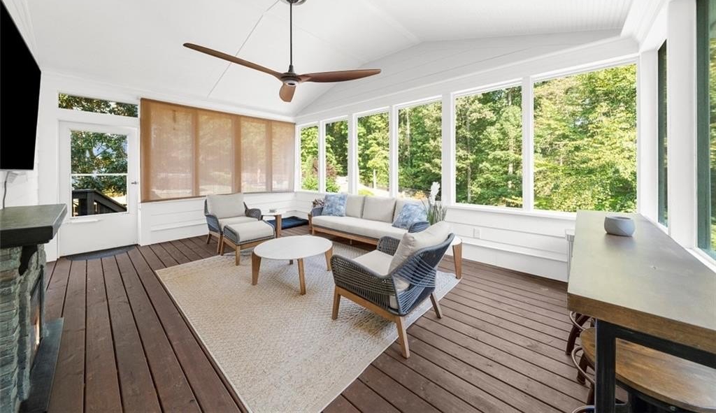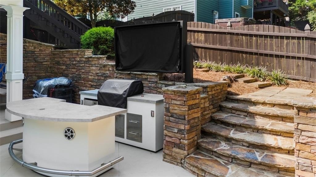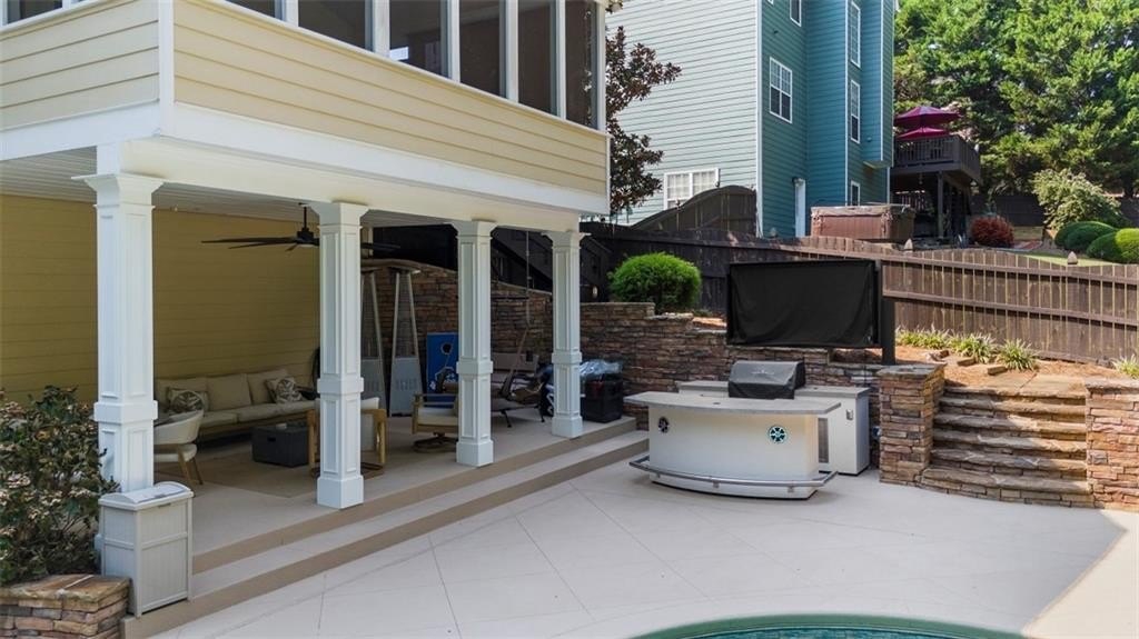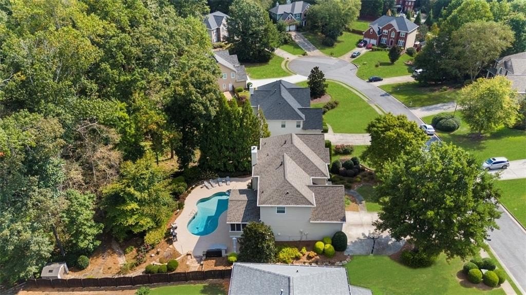 This beautifully maintained home blends timeless design with modern updates, creating the perfect retreat. Step inside to a jaw-dropping two-story foyer and immediately feel the warmth of this inviting space. Highlights include updated windows, newer carpet, a recently repainted exterior with Hardie Plank siding and brick front, and an epoxy-finished oversized garage. A private office with custom built-ins and a new aluminum-clad door offers the perfect work-from-home space, while the large dining room flows easily into the open-concept kitchen and living room. The oversized kitchen features wood-stained cabinetry, stainless steel appliances, a stunning backsplash, and a sink window framing incredible outdoor views. Step directly onto the expansive screened-in porch, which overlooks the private backyard oasis. The fireside living room with coffered ceilings is perfect for gatherings, and hardwood floors run throughout the main level and upstairs hallways. The owner's suite is oversized with space for a sitting area and a fully renovated marble bathroom with soaking tub, double vanities, and a large walk-in closet. Upstairs, you'll find three more spacious bedrooms, a full bath, and a walk-in laundry room. The finished basement is a true showstopper, complete with a wet bar, full bath, oversized bedroom, custom built-ins, theater room, and game room. Outside, enjoy resort-style living with a large saltwater pool, expansive pool deck, covered patio, and private fire pit area. The landscaped backyard extends beyond the fence to the serene creek, offering unmatched privacy and natural beauty. With a 30-year architectural roof (only 5 years old) and a location minutes from Kennesaw Mountain, Marietta Square, Downtown Acworth, shopping, dining, I-75, and more, this home offers the best of convenience and tranquility. Don't miss the chance to own this one-of-a-kind property!