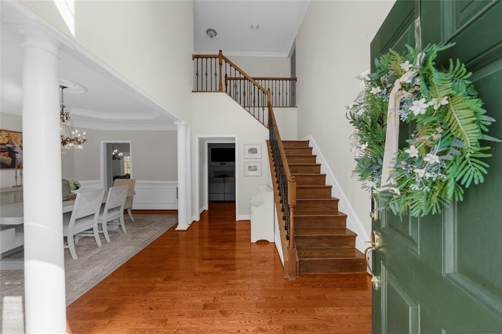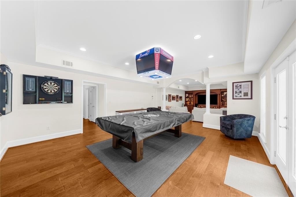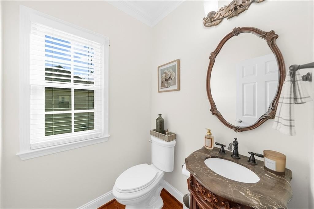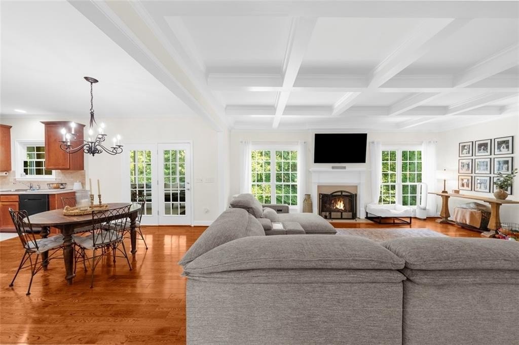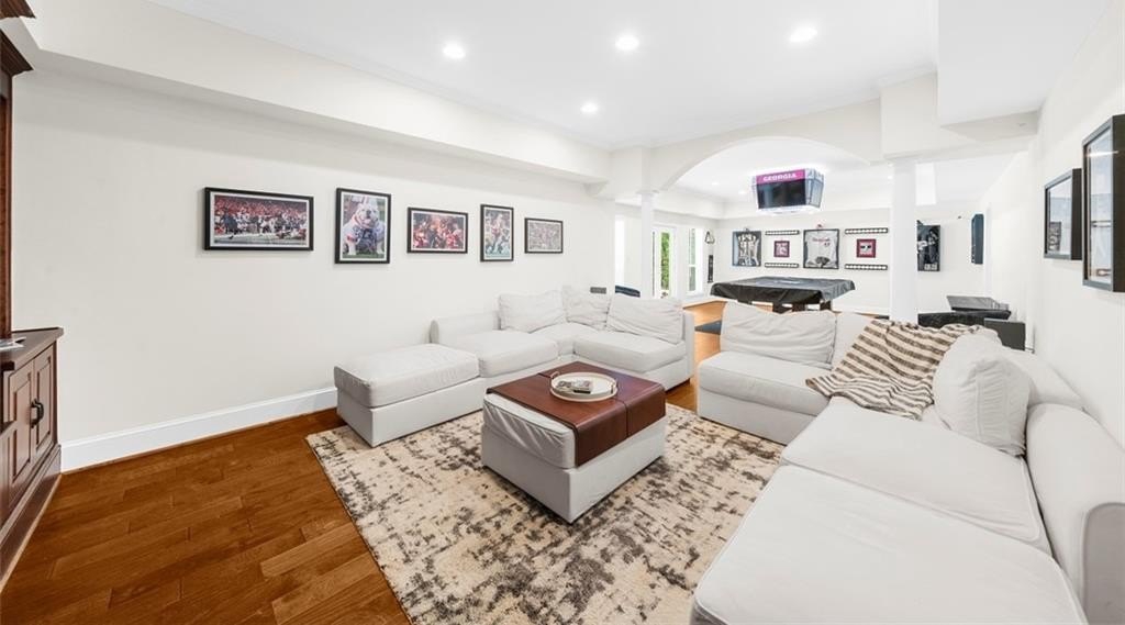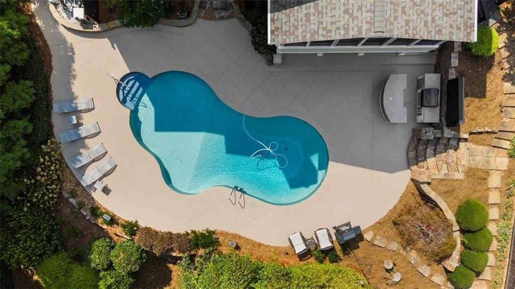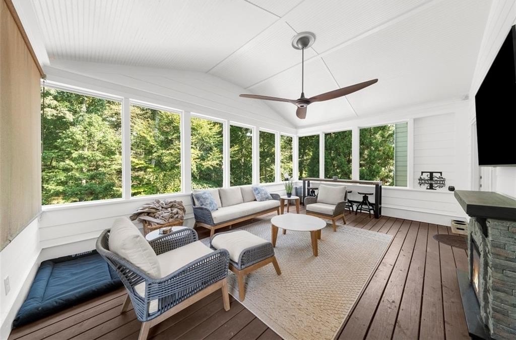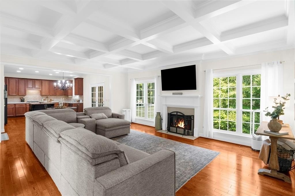 This beautifully maintained home blends timeless design with modern updates, creating the perfect retreat. Step inside to a jaw-dropping two-story foyer and immediately feel the warmth of this inviting space. Highlights include updated windows, newer carpet, a recently repainted exterior with Hardie Plank siding and brick front, and an epoxy-finished oversized garage. A private office with custom built-ins and a new aluminum-clad door offers the perfect work-from-home space, while the large dining room flows easily into the open-concept kitchen and living room. The oversized kitchen features wood-stained cabinetry, stainless steel appliances, a stunning backsplash, and a sink window framing incredible outdoor views. Step directly onto the expansive screened-in porch, which overlooks the private backyard oasis. The fireside living room with coffered ceilings is perfect for gatherings, and hardwood floors run throughout the main level and upstairs hallways. The owner's suite is oversized with space for a sitting area and a fully renovated marble bathroom with soaking tub, double vanities, and a large walk-in closet. Upstairs, you'll find three more spacious bedrooms, a full bath, and a walk-in laundry room. The finished basement is a true showstopper, complete with a wet bar, full bath, oversized bedroom, custom built-ins, theater room, and game room. Outside, enjoy resort-style living with a large saltwater pool, expansive pool deck, covered patio, and private fire pit area. The landscaped backyard extends beyond the fence to the serene creek, offering unmatched privacy and natural beauty. With a 30-year architectural roof (only 5 years old) and a location minutes from Kennesaw Mountain, Marietta Square, Downtown Acworth, shopping, dining, I-75, and more, this home offers the best of convenience and tranquility. Don't miss the chance to own this one-of-a-kind property!