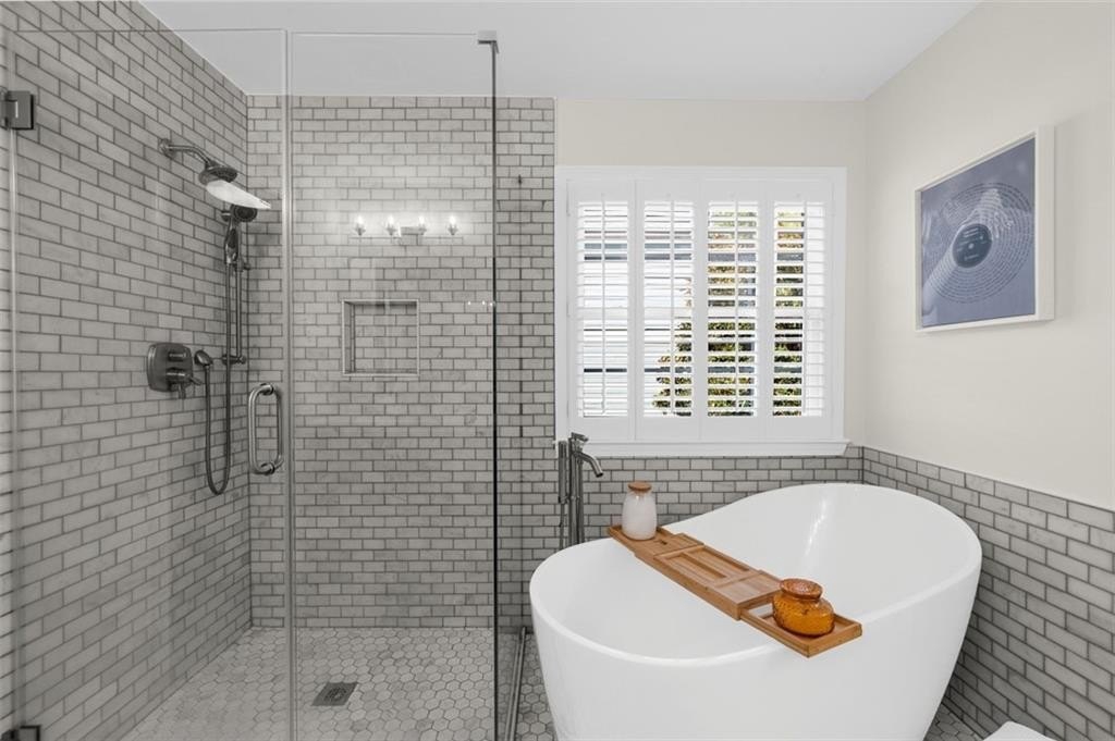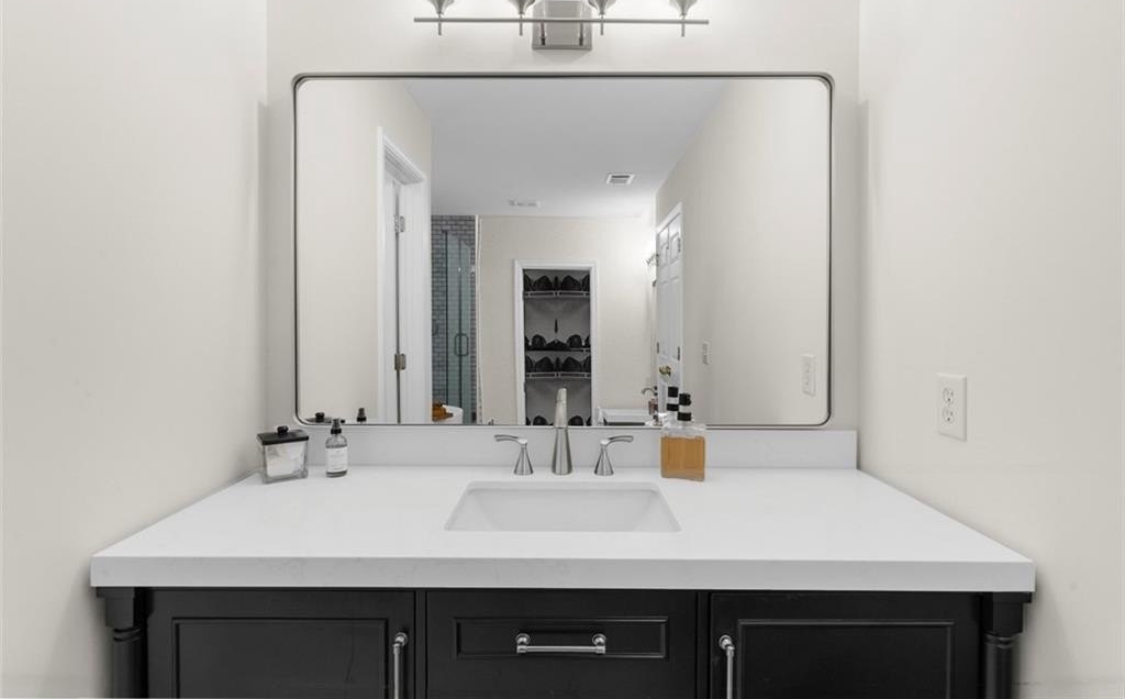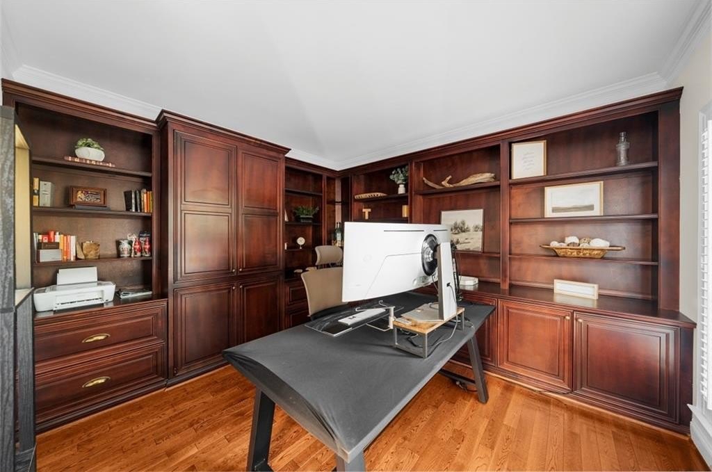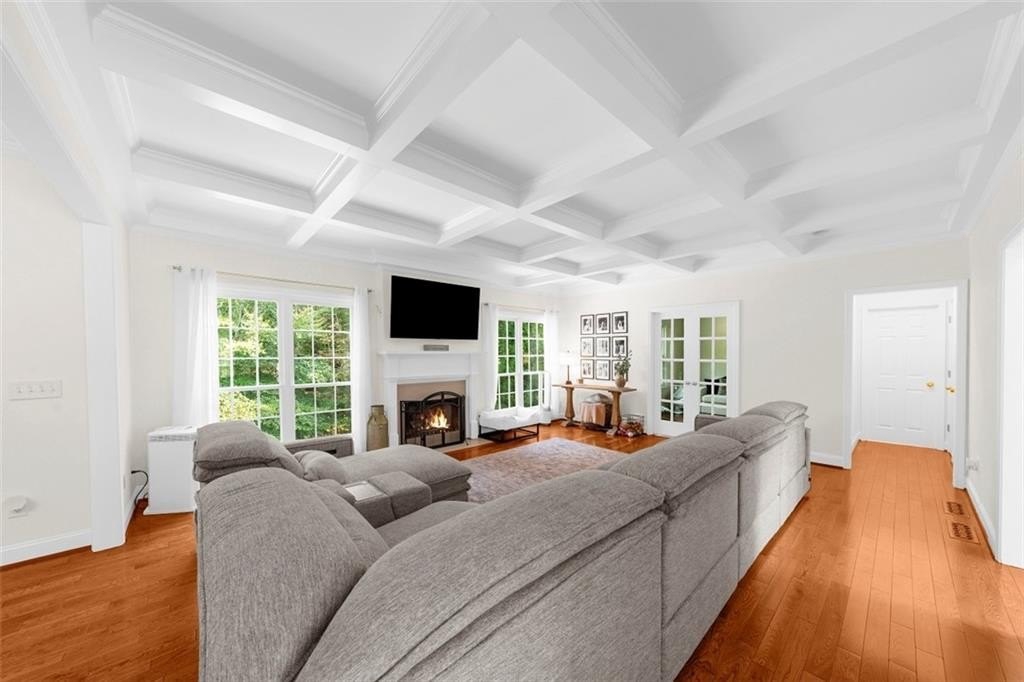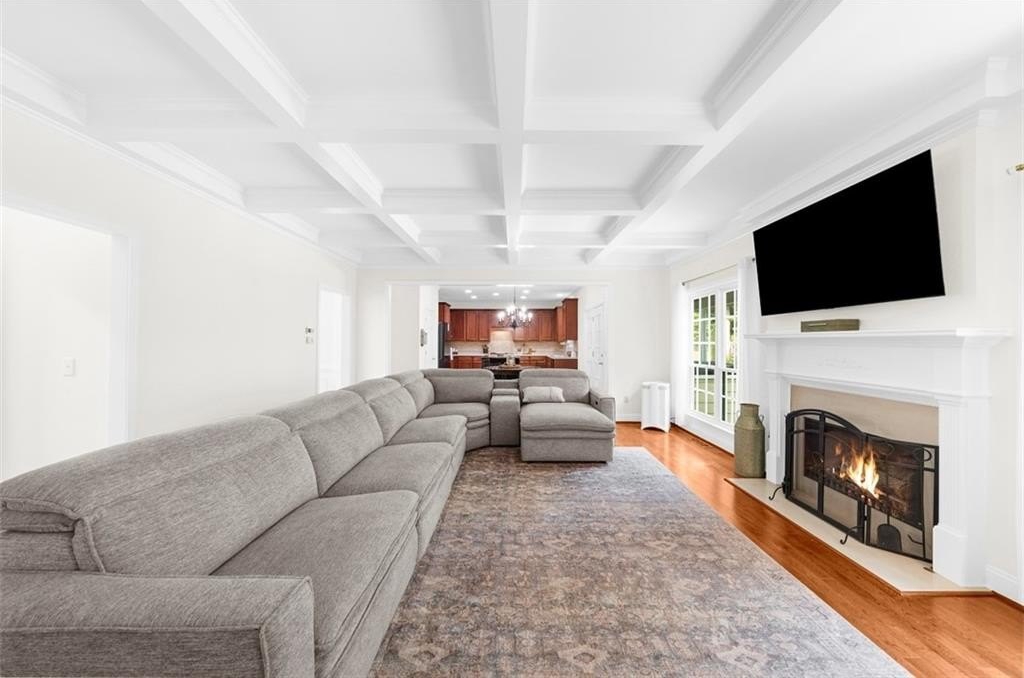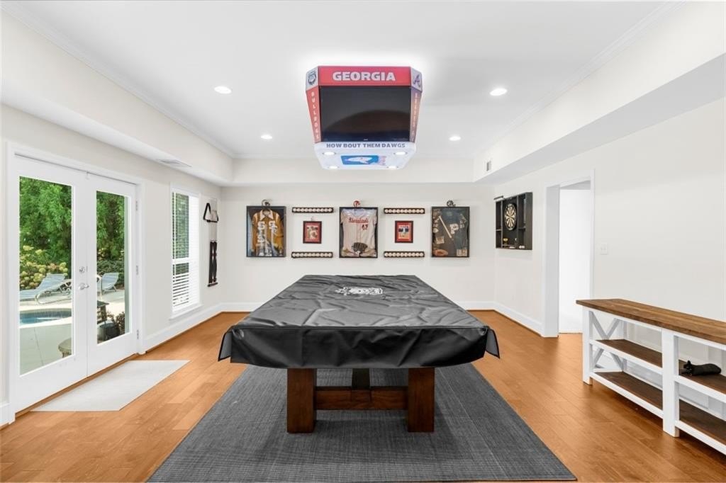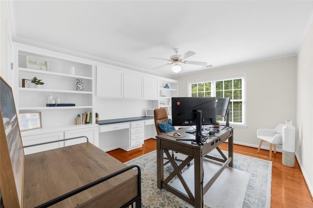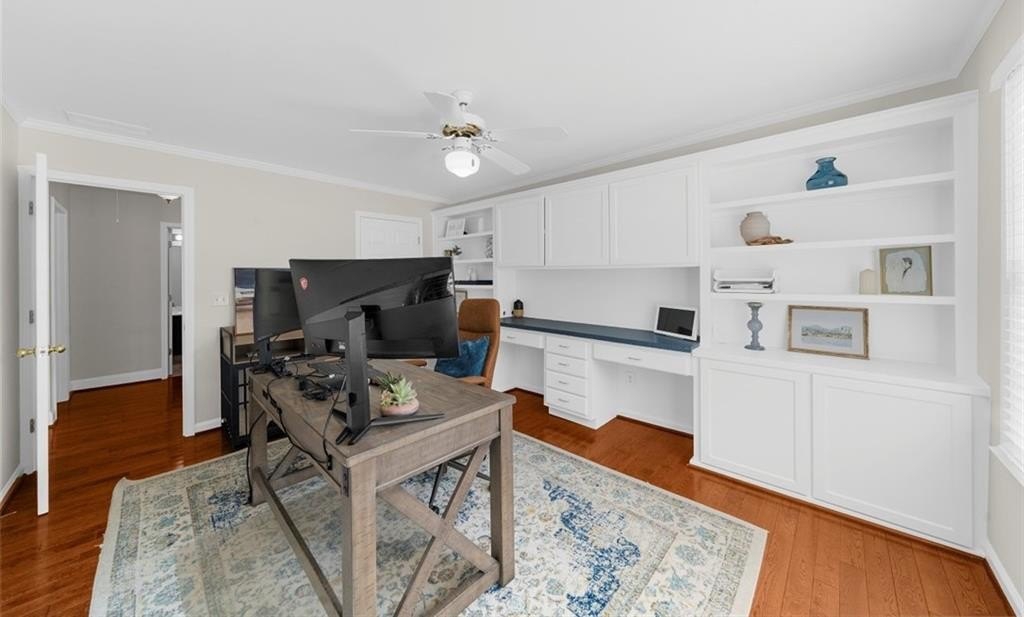 This beautifully maintained home blends timeless design with modern updates, creating the perfect retreat. Step inside to a jaw-dropping two-story foyer and immediately feel the warmth of this inviting space. Highlights include updated windows, newer carpet, a recently repainted exterior with Hardie Plank siding and brick front, and an epoxy-finished oversized garage. A private office with custom built-ins and a new aluminum-clad door offers the perfect work-from-home space, while the large dining room flows easily into the open-concept kitchen and living room. The oversized kitchen features wood-stained cabinetry, stainless steel appliances, a stunning backsplash, and a sink window framing incredible outdoor views. Step directly onto the expansive screened-in porch, which overlooks the private backyard oasis. The fireside living room with coffered ceilings is perfect for gatherings, and hardwood floors run throughout the main level and upstairs hallways. The owner's suite is oversized with space for a sitting area and a fully renovated marble bathroom with soaking tub, double vanities, and a large walk-in closet. Upstairs, you'll find three more spacious bedrooms, a full bath, and a walk-in laundry room. The finished basement is a true showstopper, complete with a wet bar, full bath, oversized bedroom, custom built-ins, theater room, and game room. Outside, enjoy resort-style living with a large saltwater pool, expansive pool deck, covered patio, and private fire pit area. The landscaped backyard extends beyond the fence to the serene creek, offering unmatched privacy and natural beauty. With a 30-year architectural roof (only 5 years old) and a location minutes from Kennesaw Mountain, Marietta Square, Downtown Acworth, shopping, dining, I-75, and more, this home offers the best of convenience and tranquility. Don't miss the chance to own this one-of-a-kind property!