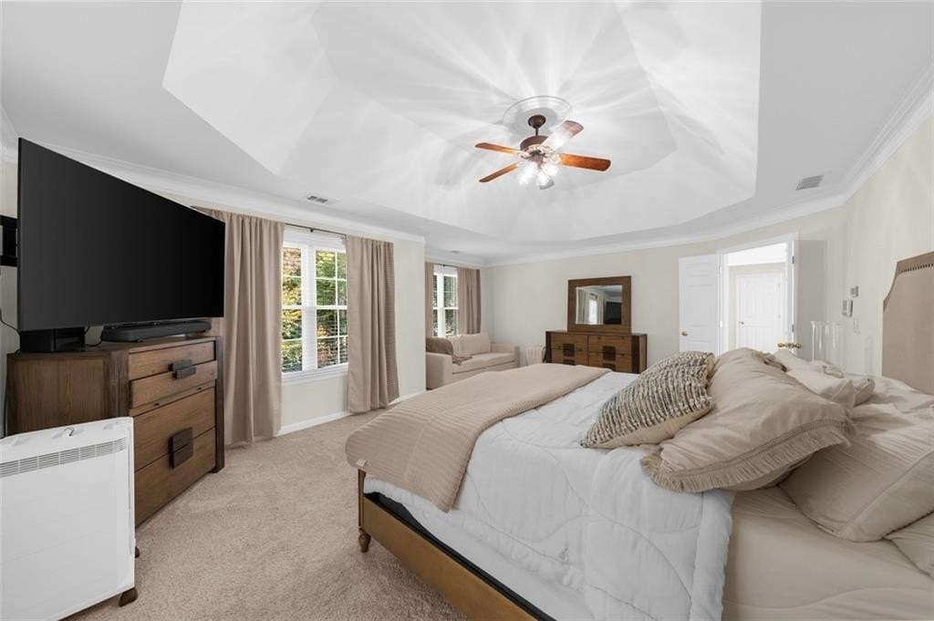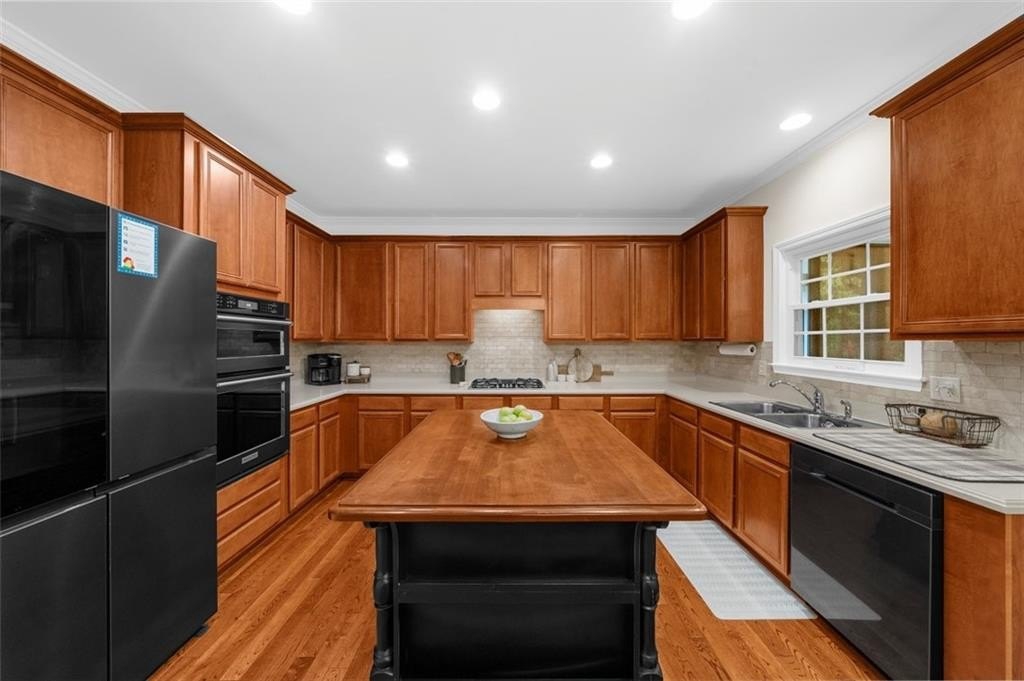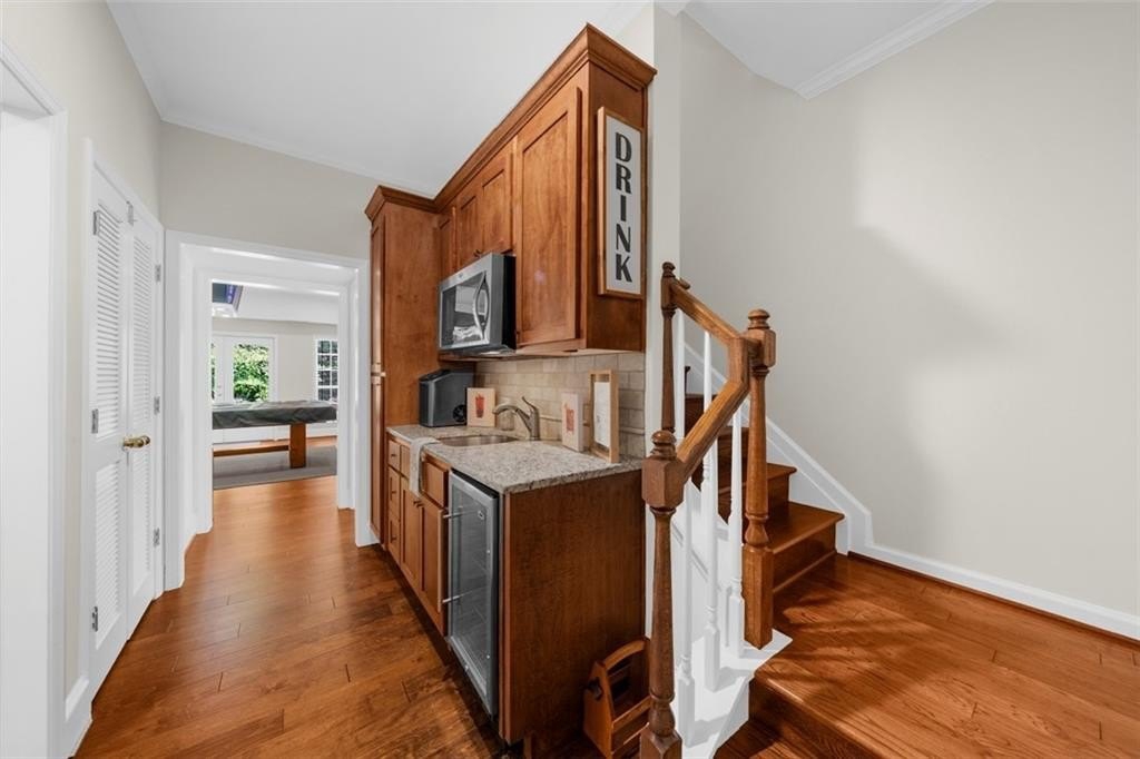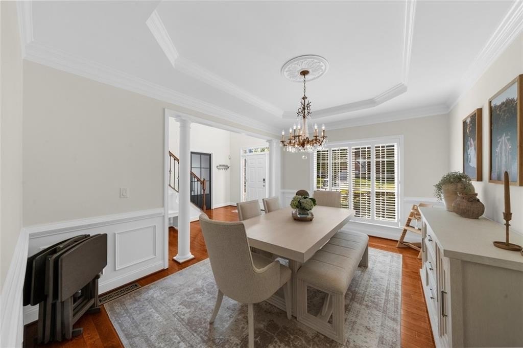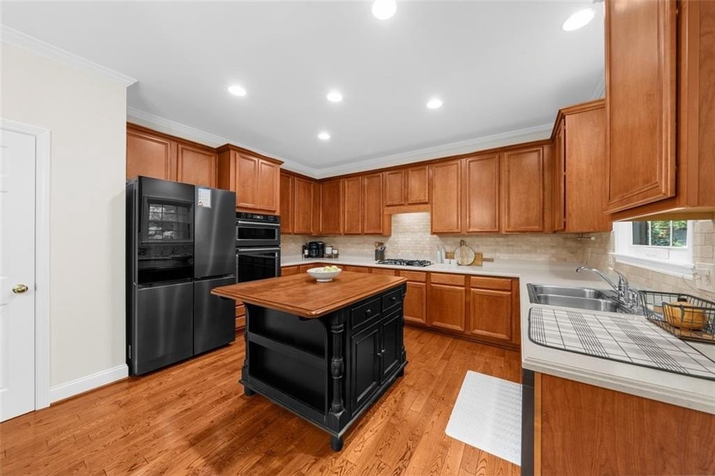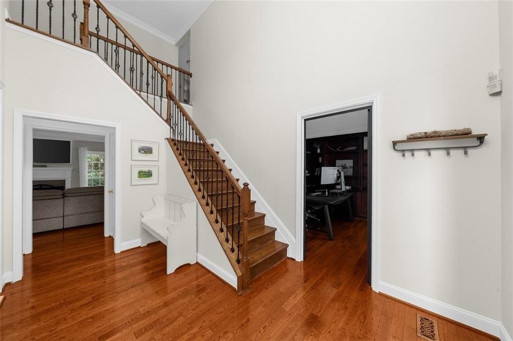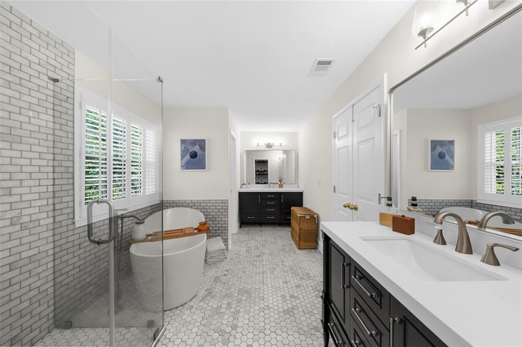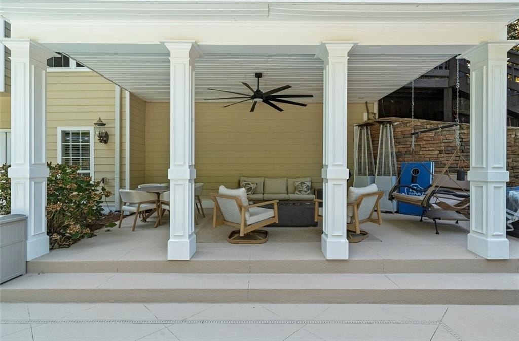 This beautifully maintained home blends timeless design with modern updates, creating the perfect retreat. Step inside to a jaw-dropping two-story foyer and immediately feel the warmth of this inviting space. Highlights include updated windows, newer carpet, a recently repainted exterior with Hardie Plank siding and brick front, and an epoxy-finished oversized garage. A private office with custom built-ins and a new aluminum-clad door offers the perfect work-from-home space, while the large dining room flows easily into the open-concept kitchen and living room. The oversized kitchen features wood-stained cabinetry, stainless steel appliances, a stunning backsplash, and a sink window framing incredible outdoor views. Step directly onto the expansive screened-in porch, which overlooks the private backyard oasis. The fireside living room with coffered ceilings is perfect for gatherings, and hardwood floors run throughout the main level and upstairs hallways. The owner's suite is oversized with space for a sitting area and a fully renovated marble bathroom with soaking tub, double vanities, and a large walk-in closet. Upstairs, you'll find three more spacious bedrooms, a full bath, and a walk-in laundry room. The finished basement is a true showstopper, complete with a wet bar, full bath, oversized bedroom, custom built-ins, theater room, and game room. Outside, enjoy resort-style living with a large saltwater pool, expansive pool deck, covered patio, and private fire pit area. The landscaped backyard extends beyond the fence to the serene creek, offering unmatched privacy and natural beauty. With a 30-year architectural roof (only 5 years old) and a location minutes from Kennesaw Mountain, Marietta Square, Downtown Acworth, shopping, dining, I-75, and more, this home offers the best of convenience and tranquility. Don't miss the chance to own this one-of-a-kind property!