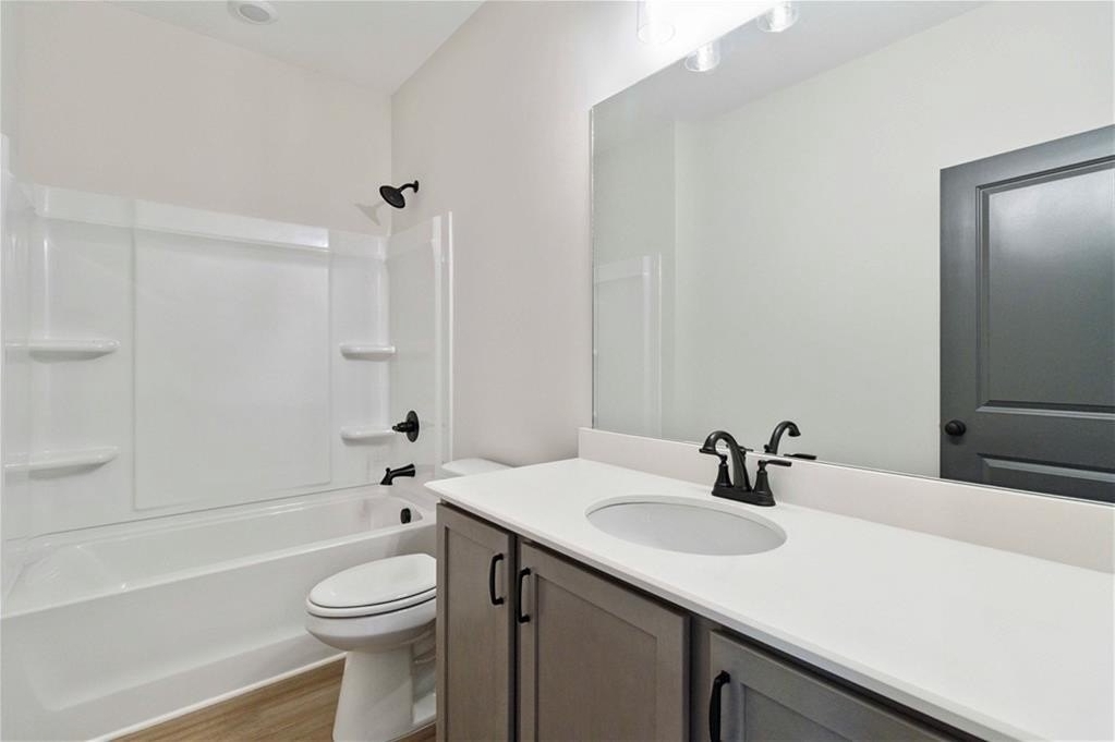 MOVE IN READY! Includes Fridge, Washer/Dryer and Blinds! This Gorgeous New Construction Townhome is ready now with 10' ceilings on the main level, LVP flooring, wood stair treads, designer lighting, and black hardware finishes. Beautiful Kitchen with 42" Stained Steel Gray Cabinets, Quartz countertops, subway tile backsplash, stainless appliances, and a walk-in pantry. Owner’s suites feature walk-in closets, Quartz vanity, and tiled shower with Glass Shower door. Upstairs also includes two additional bedrooms with walk-in closets and a full laundry room. Serenity townhomes include high-efficiency R-38 attic insulation, 17-SEER zoned HVAC, Low-E windows, and a smart energy package. Exteriors feature fiber cement siding, brick accents (per plan), Front Porch, professional landscaping, 30-year architectural shingles, and lawn irrigation. Additional features include a smart garage opener, rear-entry 2-car garages, 50-gal water heater, and a comprehensive builder warranty.