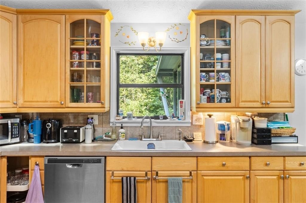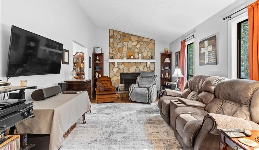 This charming three-bedroom, two-bathroom single-family home sits on nearly one acre of land, surrounded by greenery in a quiet and peaceful setting. The home offers a practical single-level layout with a spacious living room featuring a cozy fireplace. The kitchen flows seamlessly into the dining area, making it perfect for both daily living and family gatherings.