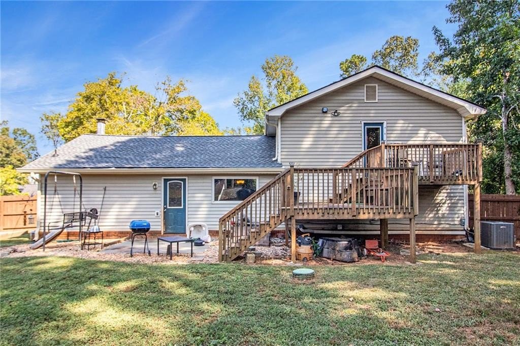 Welcome home to this spacious split-level home, offering comfort, functionality, and peace of mind with numerous recent updates. The main level features a cozy gas log fireplace and a bright kitchen with freshly painted white cabinets and upgraded stainless steel appliances. Upstairs, you’ll find a desirable split-bedroom plan where all three bedrooms have access to private balconies, plus a secondary bathroom that was tastefully renovated in 2020. The finished terrace level provides a versatile family room, 4th bedroom, full bath, and large laundry room. With its own private entrance, this level is ideal for guests, multi-generational living, or potential rental income. Outside, the expansive level backyard is fully fenced—perfect for gardening, play, pets, or entertaining.