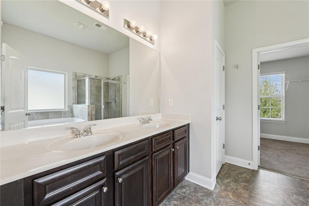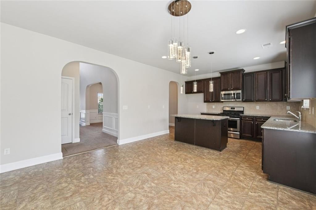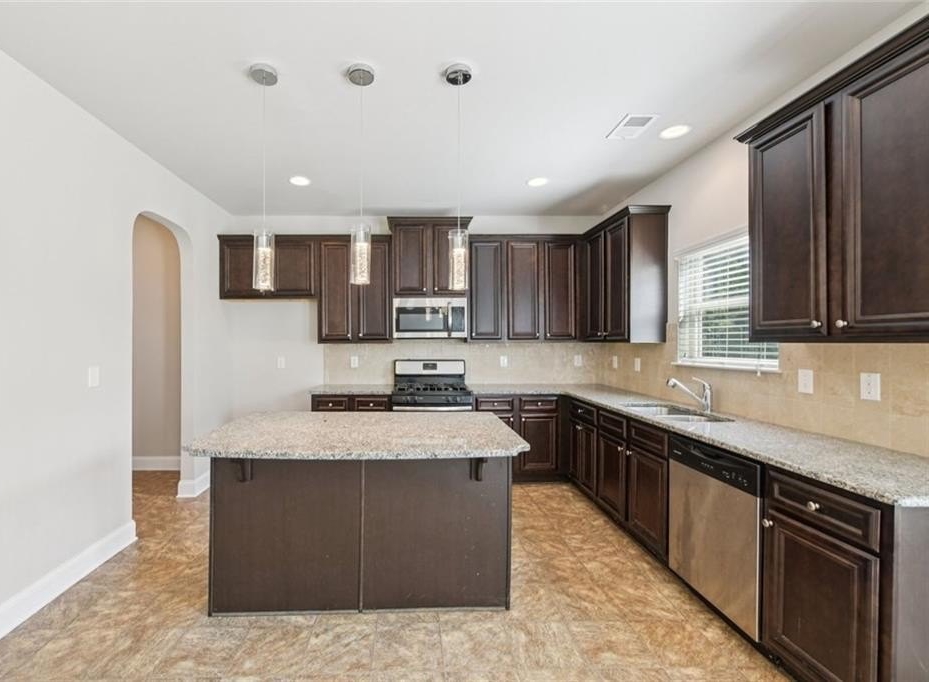 Experience timeless elegance in this stunning 4BR/3BA home, showcasing brick and siding with undeniable curb appeal. Step through the grand two-story foyer into an open floor plan designed for both style and comfort. The main level boasts rich hardwood, laminate, carpet, fresh paint, upgraded lighting, and a sophisticated dining room with coffered ceiling and custom shadow box trim. The gourmet kitchen is a chef’s dream, complete with granite countertops, a custom backsplash, stainless steel appliances, cherry wood cabinetry, recessed lighting, and a spacious island with a gas range—perfect for entertaining in refined style. Large walk-in pantry. The sunlit family room, accented by a cozy fireplace, creates the perfect gathering space. Upstairs, retreat to the luxurious primary suite featuring a tray ceiling, generous sitting area, and spa-inspired en-suite with double vanities, cherry wood cabinetry, soaking tub, and separate shower. Secondary bedrooms are equally impressive with tray ceilings, oversized closets, and an updated full bathroom. The laundry room is located upstairs. Outside, enjoy a sprawling backyard that offers the perfect setting for outdoor living. Ideally located near shopping, restaurants, schools, and I-20, this exquisite home blends modern sophistication with everyday convenience. Bring your highest & best offer.