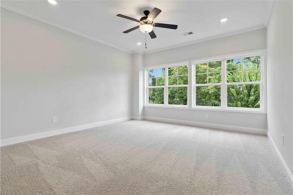 The owner’s suite is a private retreat with a walk-in closet, quartz vanity, and tiled shower with glass door. Upstairs you’ll also find two additional bedrooms with walk-in closets and a full laundry room, complete with a new washer and dryer. Blinds are installed throughout the entire home, making this townhome truly turnkey.
