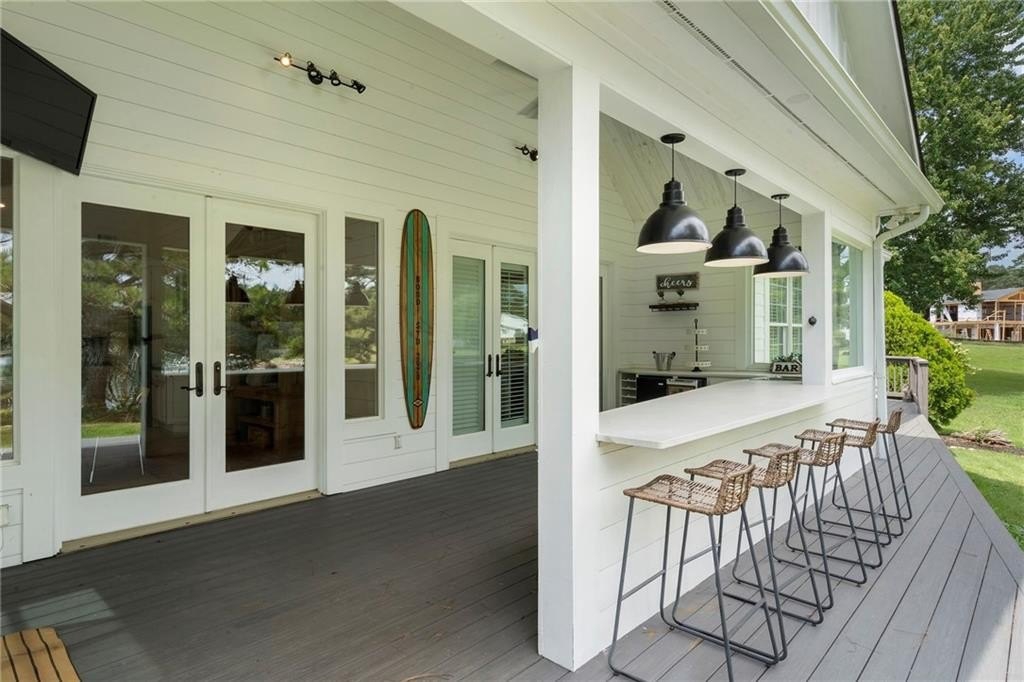 Outdoor living is just as inviting. A covered Trex deck with built-in bar overlooks the water and is ideal for entertaining, while the open deck provides room for outdoor dining under the stars. The gentle, flat walk leads you to your double-decker party dock with slip, where deep water and calmer coves make boating, paddling, and tubing both peaceful and safe.