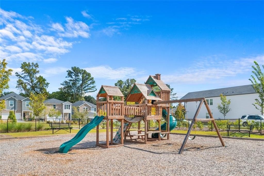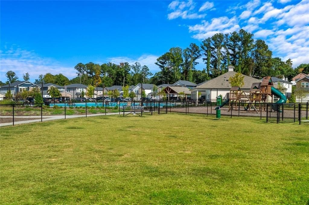 Community amenities include a resort-style pool, clubhouse, playground, dog park, community garden, sidewalks, and scenic walking trails, with yard maintenance covered by the HOA.