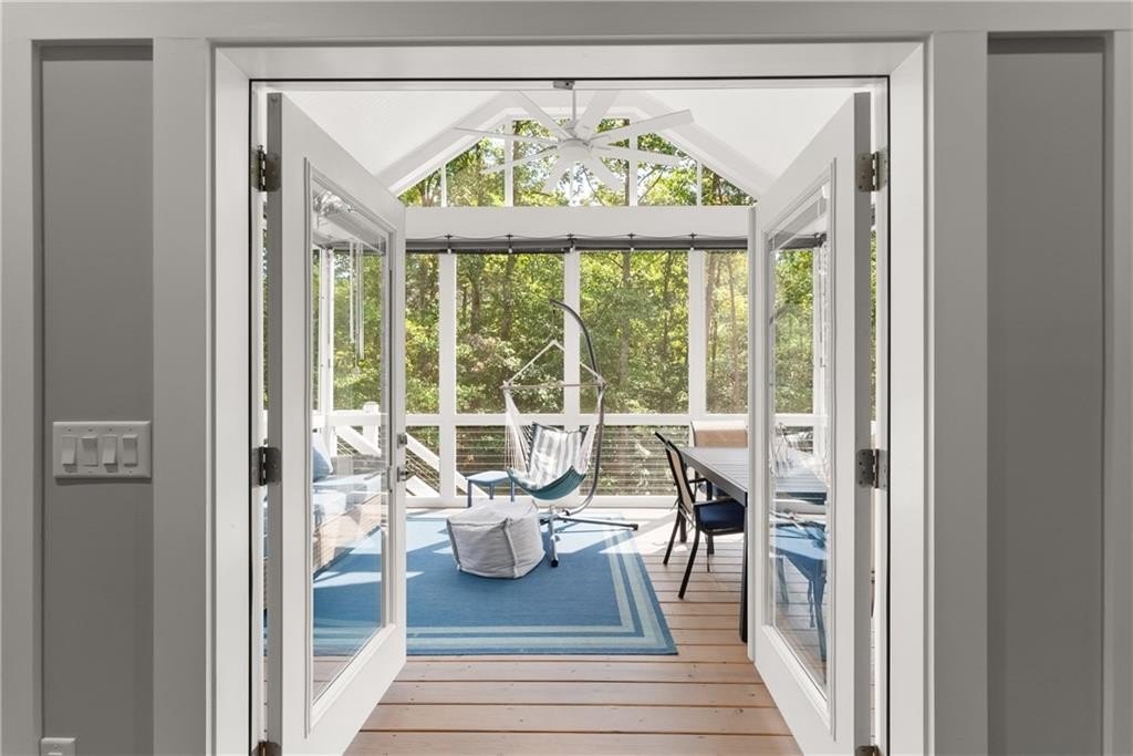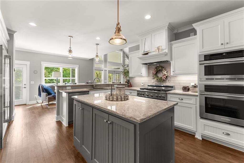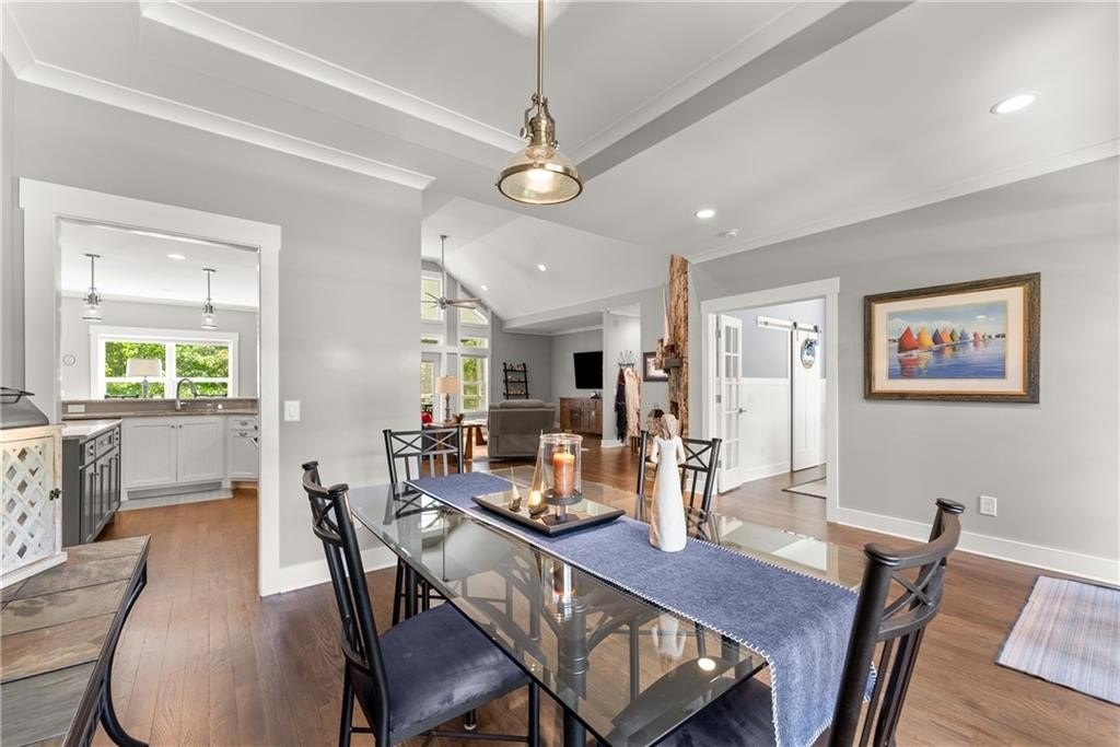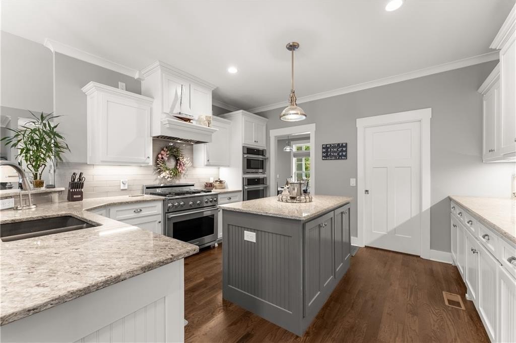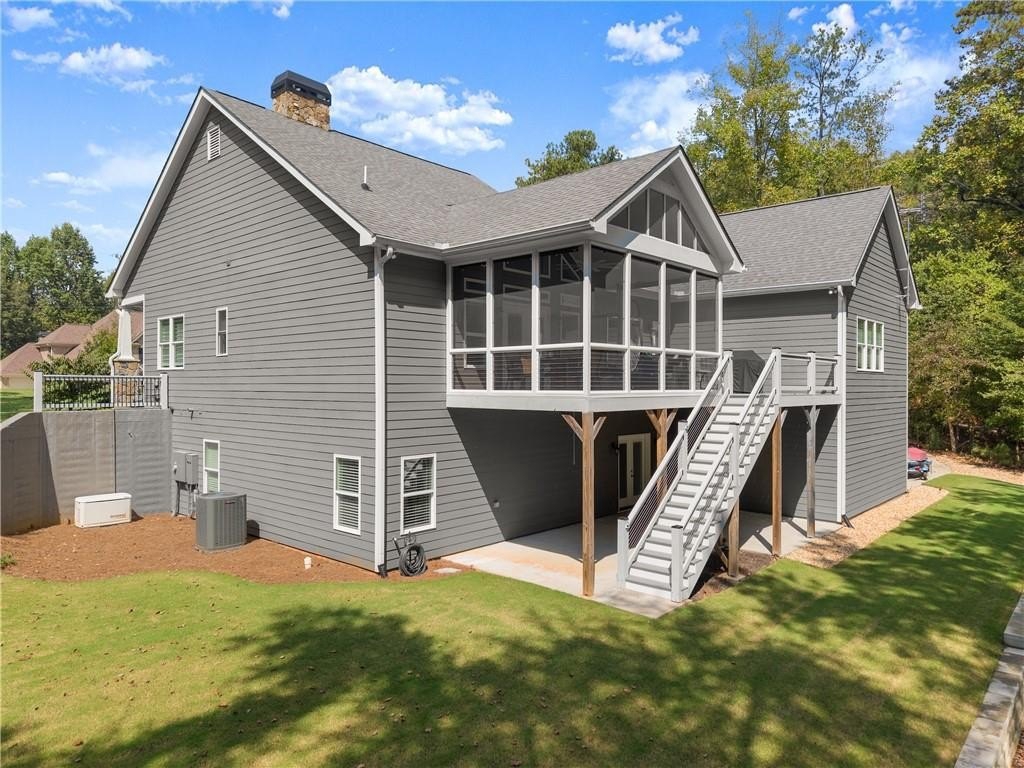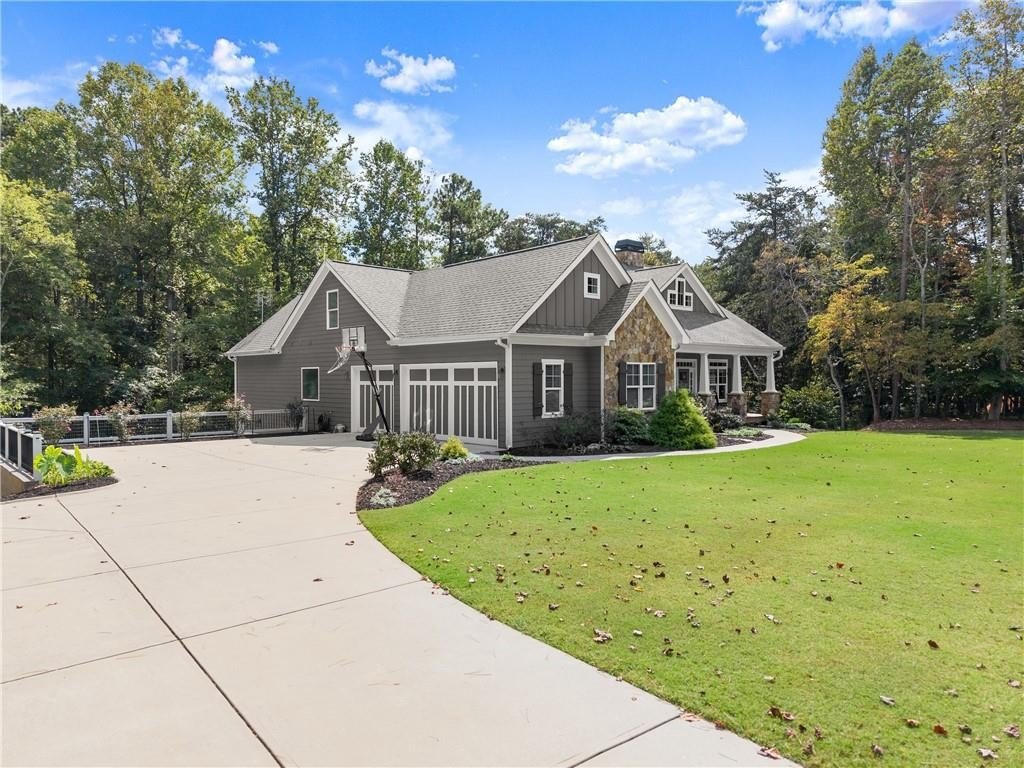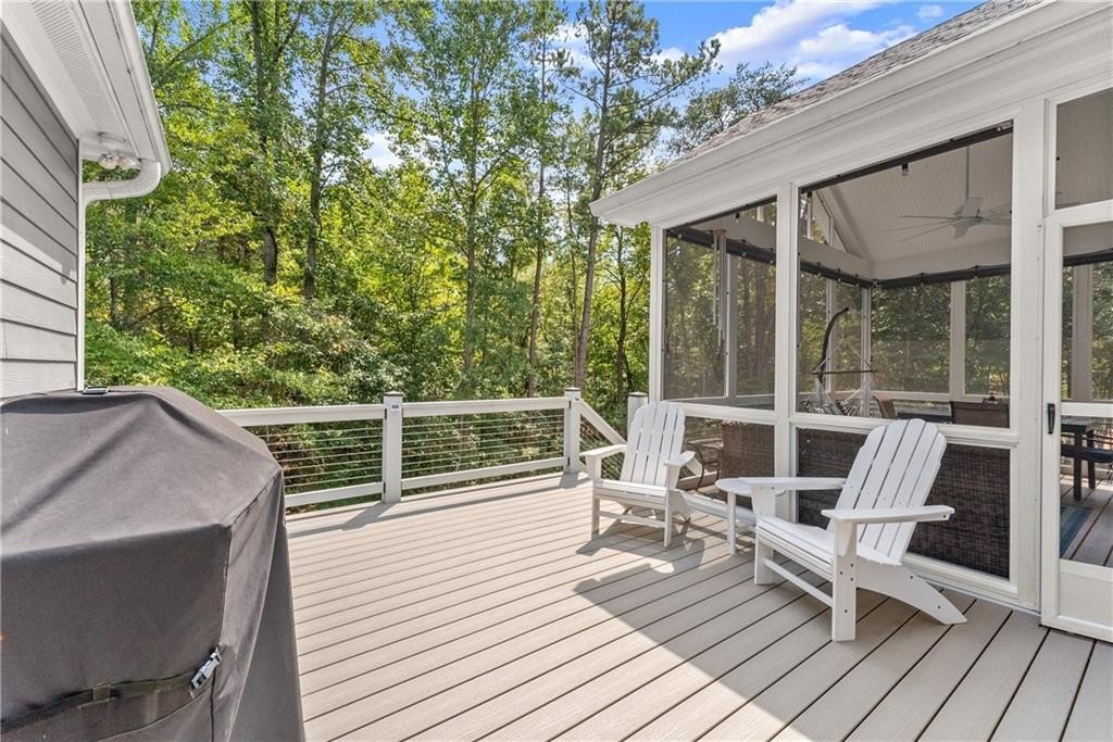 Welcome to 6397 Snelling Mill, situated on almost 1.5 acres in NO HOA! Discover a thoughtfully designed, custom-built ranch home with a reverse floor plan that offers the perfect balance of privacy and convenience. The owner’s suite is located on the main level, while secondary bedrooms are tucked away on the terrace level — ideal for guests, teens, or multi-generational living. This 4-bedroom, 3.5-bath residence also features a flexible room on the main level. With a rare 5-car garage and extra driveway, there’s no shortage of room for vehicles, boats, hobbies, or storage. In the heart of the home, the kitchen offers high-end details with an oversized Electrolux refrigerator/freezer, Asco dishwasher, a 36” gas range with oven along with a built microwave and second oven. Details include a touch faucet, and a walk-in pantry with room for your coffee bar. Entertaining is easy with the built in surround sound carried throughout the home, including the beautiful, screened porch, where you will enjoy peaceful mornings watching deer roam the wooded scenery. Everyday living is made effortless with a whole-house water filtration system, central vacuum, Energy Star tankless water heater, and a Generac generator for peace of mind. Recently installed composite decking on the outdoor grilling deck as well as the beautiful front porch offers you low maintenance living. The homeowners have thoughtfully laid out this custom build that includes irrigation, a weather station, and the main level, three car garage equipped with a 220 amp outlet for an EV charger. The terrace level patio is also equipped with a dedicated 220 amp circuit ready for a hot tub. Maintained to a level you only see in luxury homes, this is a must see with truly too many details to comprehend!