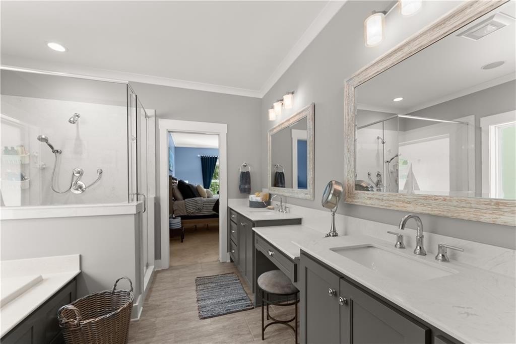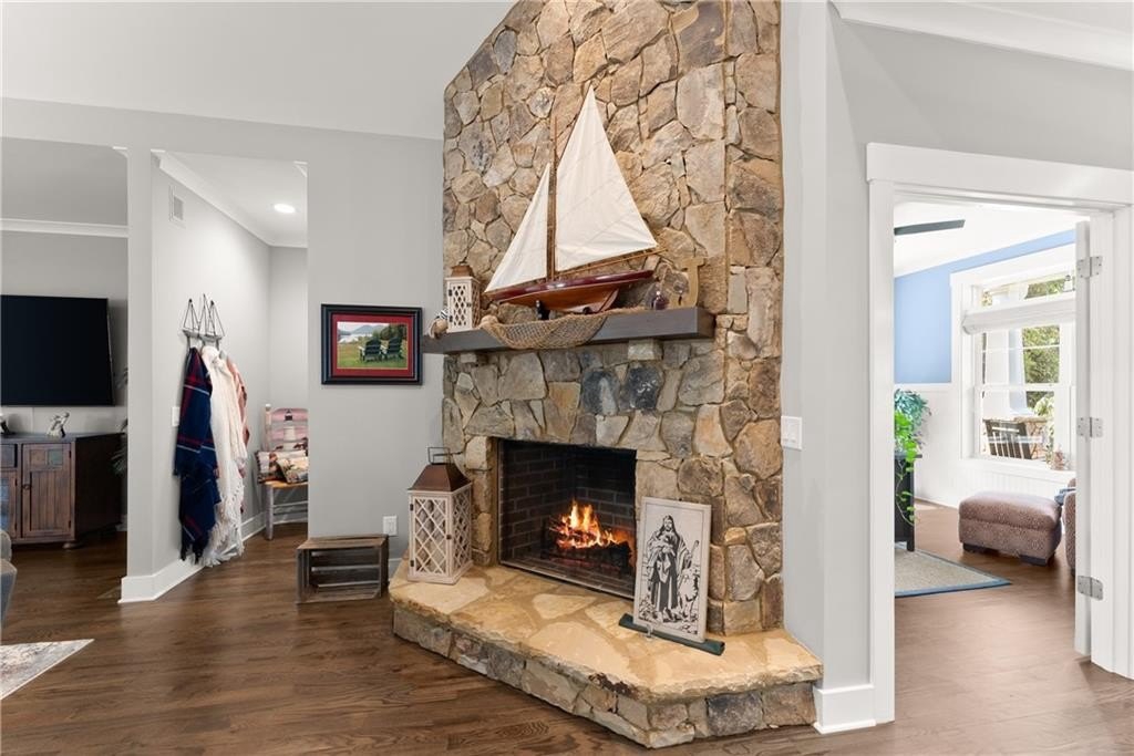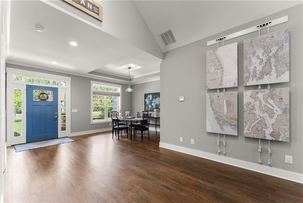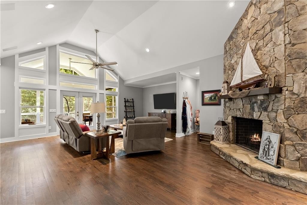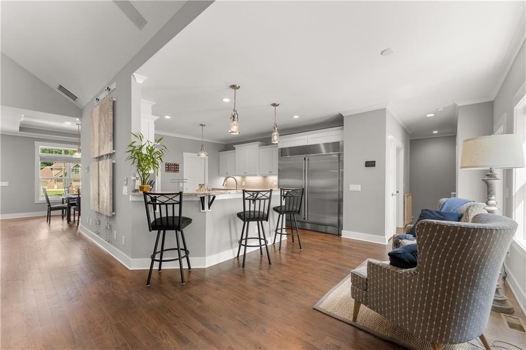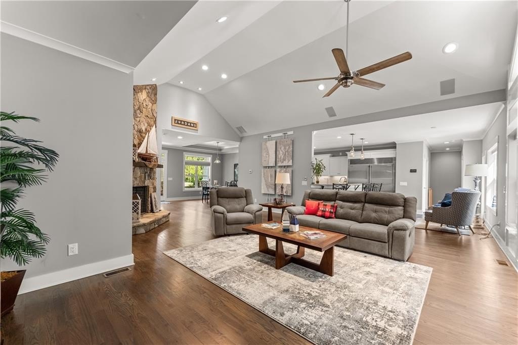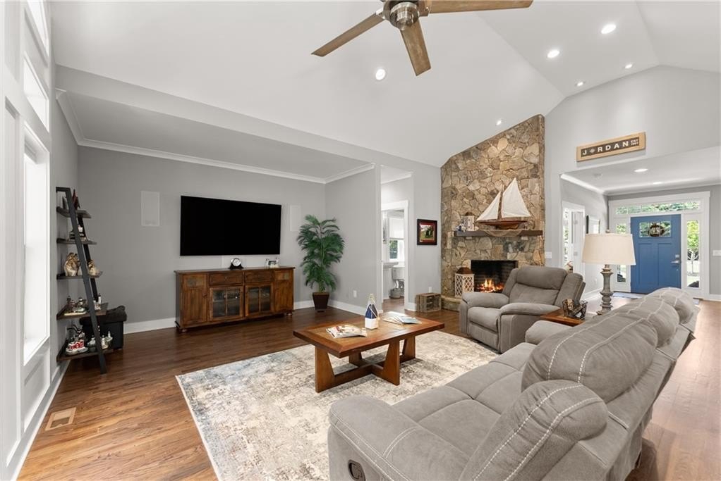 Welcome to 6397 Snelling Mill, situated on almost 1.5 acres in NO HOA! Discover a thoughtfully designed, custom-built ranch home with a reverse floor plan that offers the perfect balance of privacy and convenience. The owner’s suite is located on the main level, while secondary bedrooms are tucked away on the terrace level — ideal for guests, teens, or multi-generational living. This 4-bedroom, 3.5-bath residence also features a flexible room on the main level. With a rare 5-car garage and extra driveway, there’s no shortage of room for vehicles, boats, hobbies, or storage. In the heart of the home, the kitchen offers high-end details with an oversized Electrolux refrigerator/freezer, Asco dishwasher, a 36” gas range with oven along with a built microwave and second oven. Details include a touch faucet, and a walk-in pantry with room for your coffee bar. Entertaining is easy with the built in surround sound carried throughout the home, including the beautiful, screened porch, where you will enjoy peaceful mornings watching deer roam the wooded scenery. Everyday living is made effortless with a whole-house water filtration system, central vacuum, Energy Star tankless water heater, and a Generac generator for peace of mind. Recently installed composite decking on the outdoor grilling deck as well as the beautiful front porch offers you low maintenance living. The homeowners have thoughtfully laid out this custom build that includes irrigation, a weather station, and the main level, three car garage equipped with a 220 amp outlet for an EV charger. The terrace level patio is also equipped with a dedicated 220 amp circuit ready for a hot tub. Maintained to a level you only see in luxury homes, this is a must see with truly too many details to comprehend!