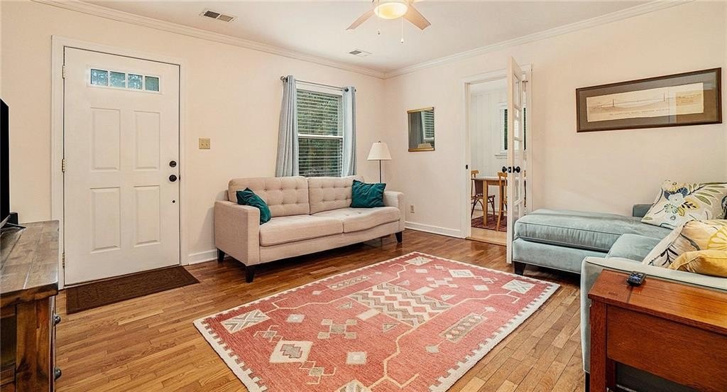 Nested in the heart of Medlock Park, one of metro area's sought-after neighborhoods, this beautiful bungalow has everything you need. This light-filled home features an updated kitchen with granite countertops and backsplash tile, hardwood floors and crown-molding throughout. The home is complimented by the expansive fully fenced and landscaped level backyard - paradise just waiting for friends and family to enjoy. You will love the backyard patio for grilling, a fall fire in the fire pit surrounded by beautiful trees, shrubs and flowers. The ability to drive around to the back and park behind the fence makes unloading easy and could offer a pad for a garage or future accessory dwelling unit. Super close to Emory, CDC, Peachtree Creek Trail, downtown City of Decatur, shopping, restaurants and nearby park (youth sports) and pool (with membership optional). Great walking neighborhood friendly place to enjoy! Showings start Friday 9/25.