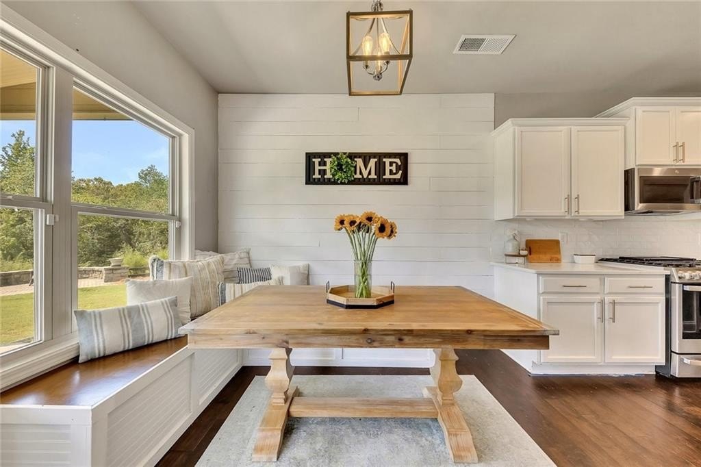 The updated kitchen flows seamlessly into the living and breakfast room areas, making it ideal for entertaining.