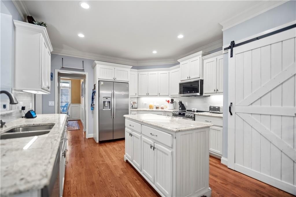 Welcome to your new home in the desirable Waterstone community of Cartersville! This spacious 5-bedroom, 3-bathroom property sits on a quiet cul-de-sac lot and features a long driveway, a two-car garage, and a welcoming flagstone front porch that sets the tone for the warm and inviting interior. Inside, you’ll find an open floor plan with a bright living room, a modern kitchen with granite countertops, stainless steel appliances, and a large island perfect for gatherings. The owner’s suite is conveniently located on the main level, complete with a walk-in closet and spa-like bathroom featuring dual sinks, a soaking tub, and a separate shower. A second bedroom and full bath are also on the main level, making it ideal for guests or a home office. Upstairs, you’ll find two additional bedrooms and a spacious library/bonus room that can easily serve as a third bedroom, along with another full bath providing flexible space for family, visitors, or a home office. Outdoor living shines here with a screened-in porch and a newly expanded deck, perfect for entertaining or relaxing while overlooking your private backyard. The home also includes an unfinished basement with over 1,800 sq. ft., already stubbed for an additional bathroom offering incredible potential to customize and expand your living space. Located just minutes from downtown Cartersville, schools, shopping, dining, and I-75, this home combines convenience with community charm. Lake Allatoona and area parks are also nearby for outdoor enjoyment. Don’t miss your chance to own this move-in ready home in Waterstone schedule a showing today!
