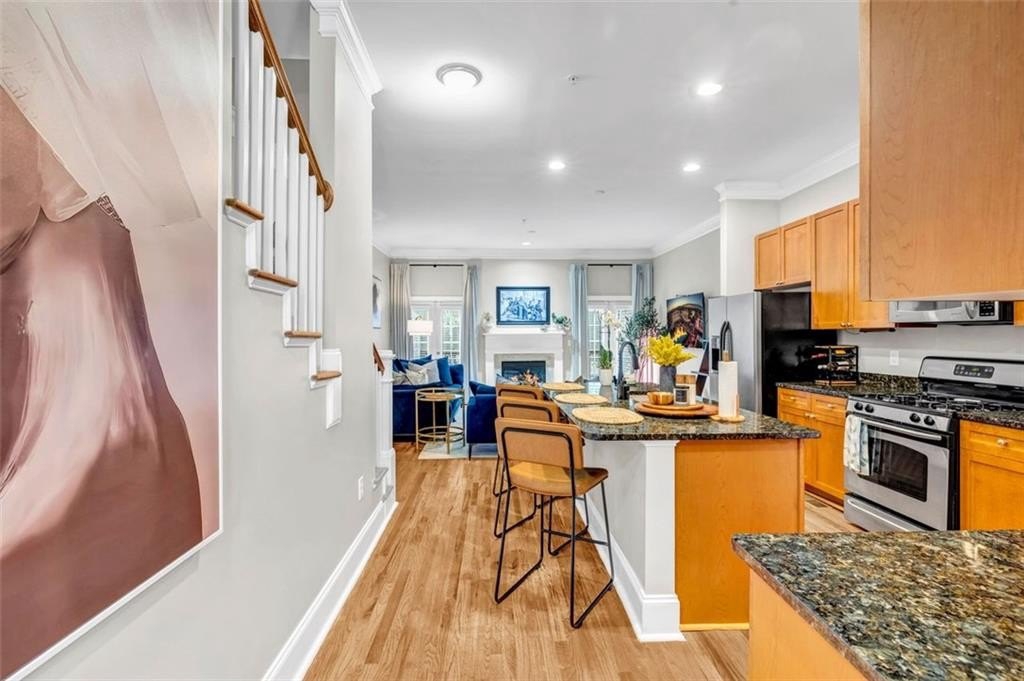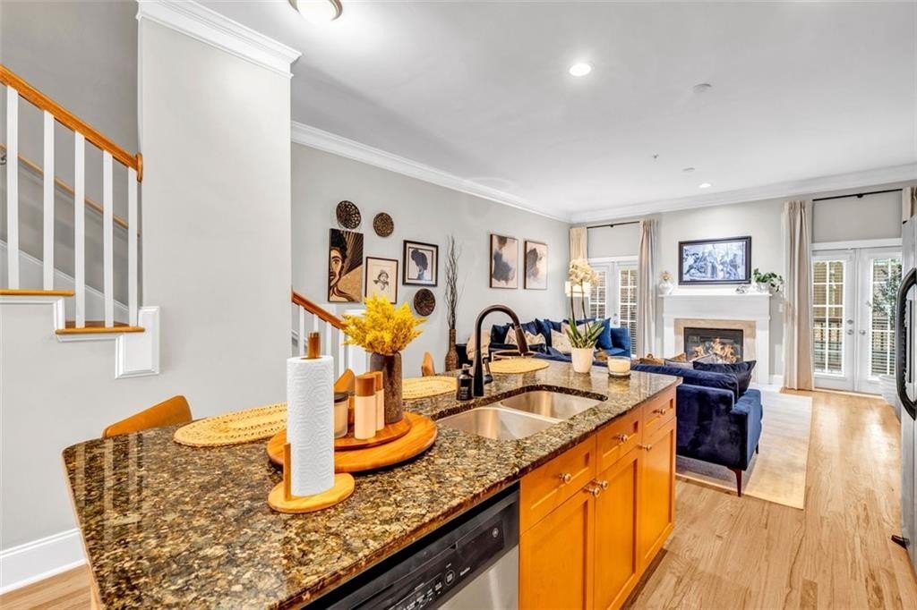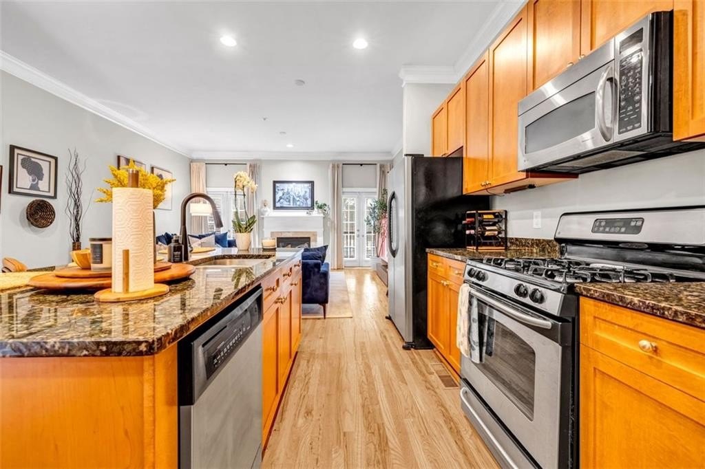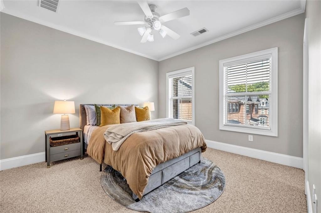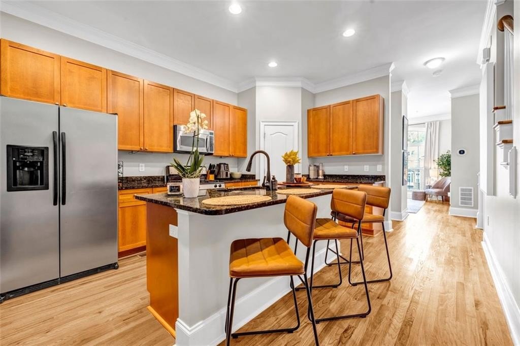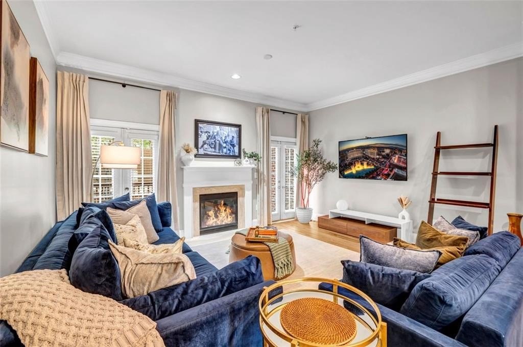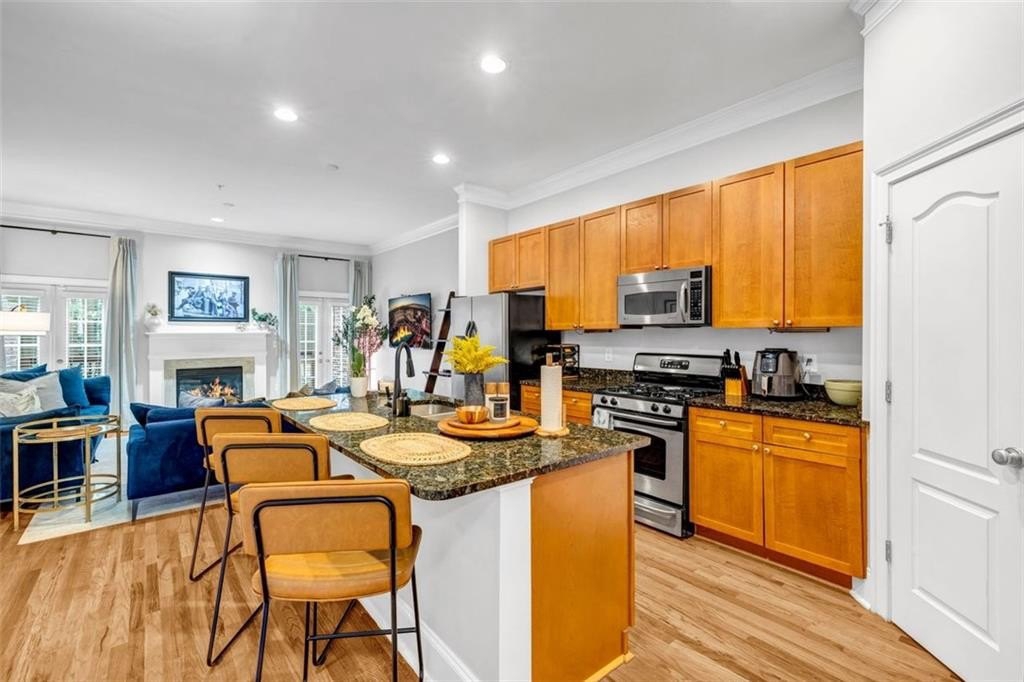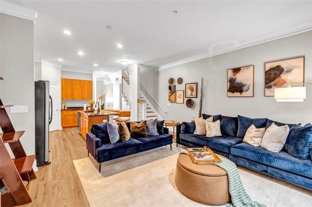 Charming townhome nestled in the heart of Smyrna, just a short stroll to Smyrna Market Village and a quick bike ride to The Battery Atlanta. Perfect for an active lifestyle, this home features an open floor plan with dual French doors leading to a private back deck, ideal for entertaining or relaxing outdoors. The primary suite offers a trey ceiling, abundant natural light, and serene views for a peaceful retreat. Ample storage throughout, plus a secure gated community with wonderful amenities including green space, vibrant landscaping, and a tranquil stream. A rare opportunity to enjoy both city convenience and quiet living.