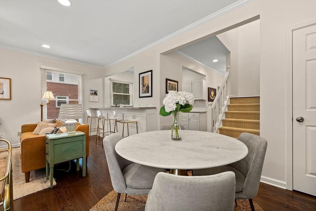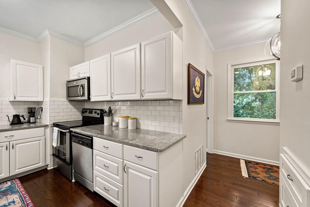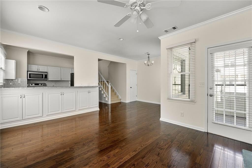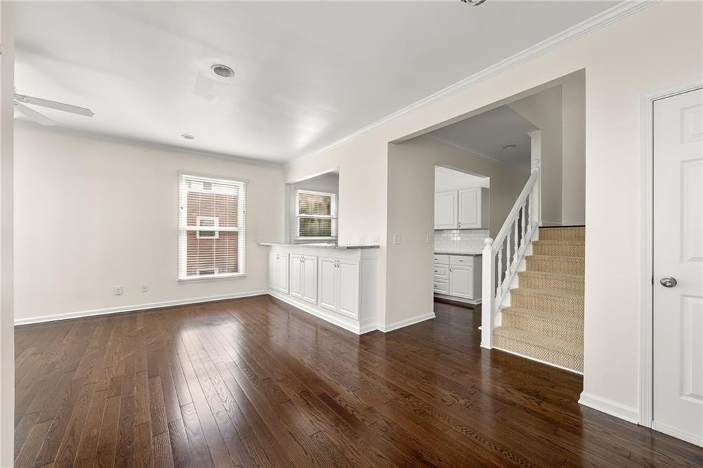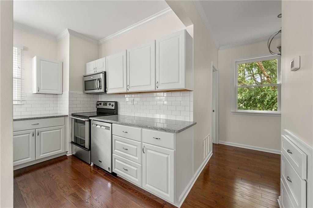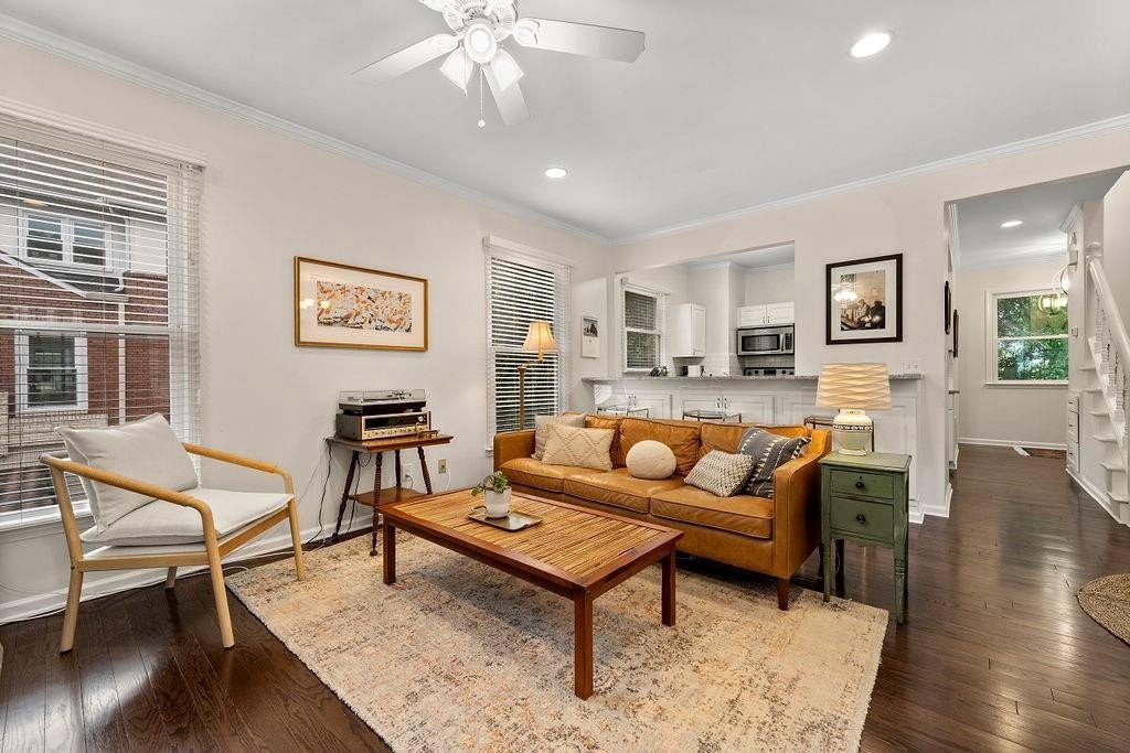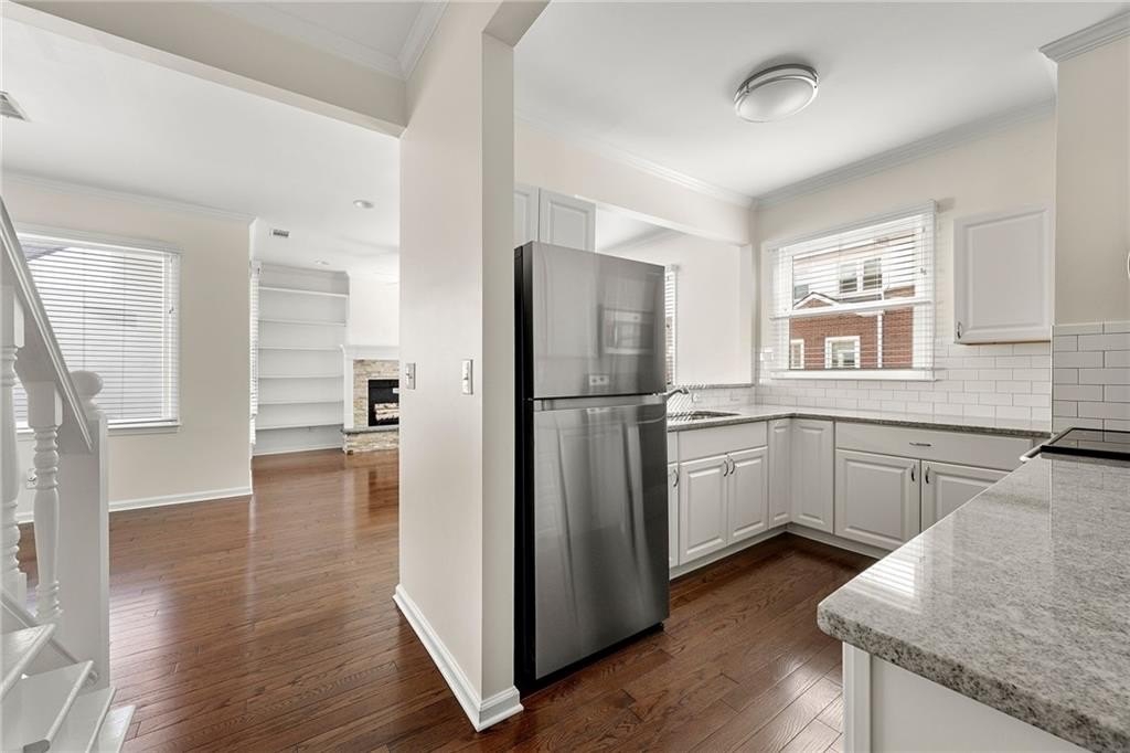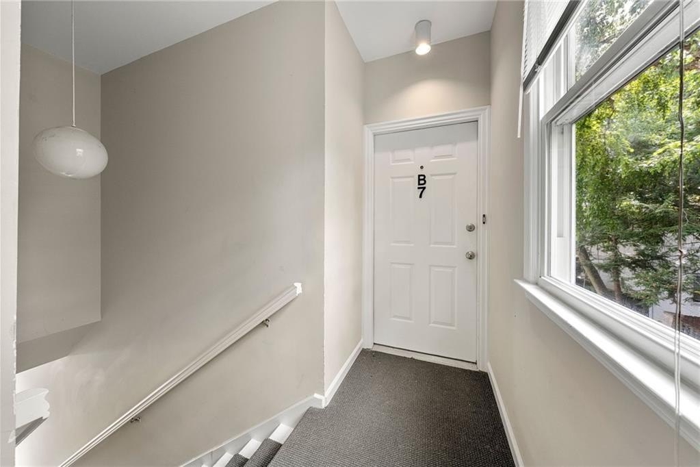 Oh my, check this out! Amazing, renovated home located in the heart of Morningside on Highland Ave., a 2-bedroom home with a private garage, For Sale at Morningside Terrace. What makes this even better is it's a top floor end unit with no common walls, quiet and peaceful living! Beautifully updated open floorplan, come see for yourself how spacious and sun-drenched this home is. Photos show both furnished prior to move-out of owner and unfurnished to show space opportunity. Upgrades throughout include hardwood flooring, fabulous kitchen open to the family room with granite countertops, tile backsplash, stainless steel appliances, and a breakfast bar for casual fare! The family room is surrounded by walls of windows, floor to ceiling bookshelves, stacked stone fireplace, a perfect place to entertain your friends and enjoy your new home. There is also a lovely half bath that completes the main level. The second floor has two separate bedrooms, each with private walk-in closets, plus an updated full bath, that has an entrance from each bedroom! If you are seeking private outdoor space, just off the family room is an outdoor patio that overlooks the serene building courtyard. What makes this home even better is the fact the property has just completed a massive multi-year renovation including windows, stucco and wood replacement, plus the new roof completed in August. All of this investment provides worry-free living down the road with this home - bring your stuff and move right in! Located in the heart of Morningside, known for great schools, excellent shopping, fabulous dining, and the picturesque skyline views of Atlanta, recognized as one of the best neighborhoods anywhere! Please PARK in the rear of the 2 buildings of Morningside Terrace. B7 is in the rear building, furthest from Highland Ave.