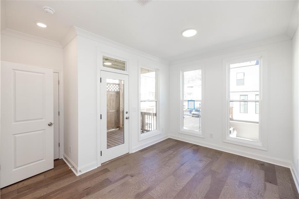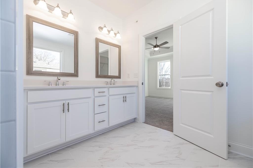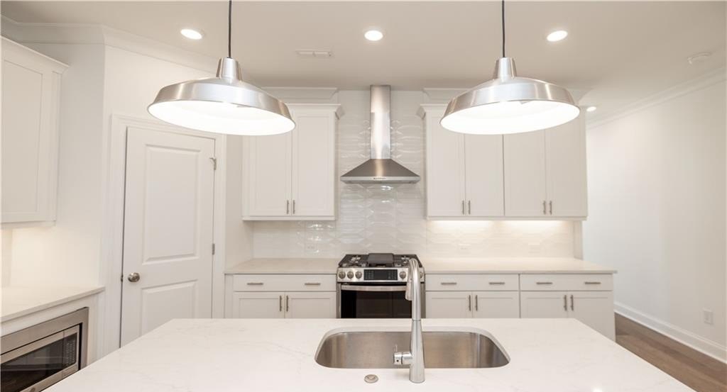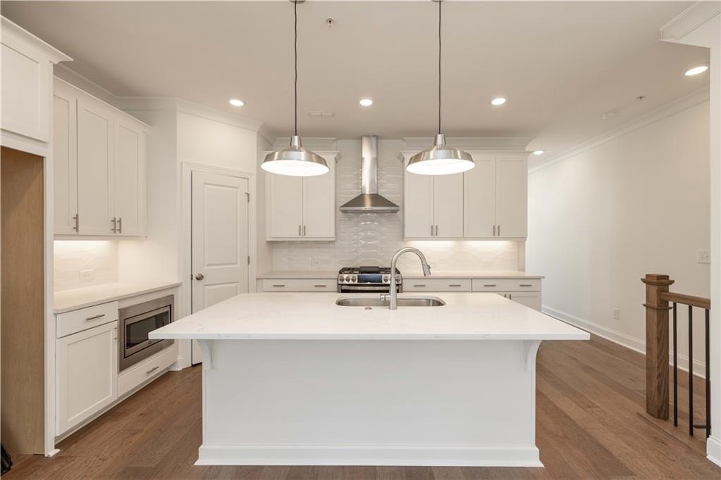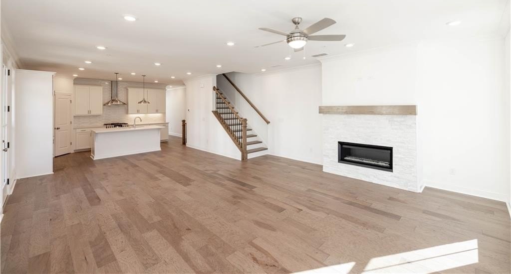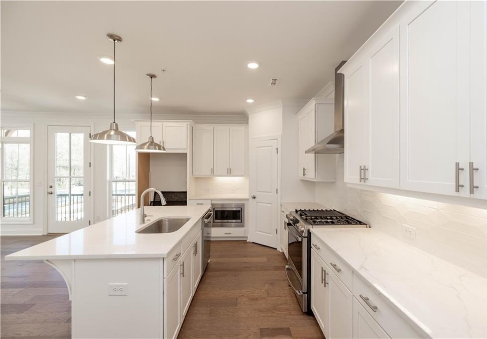 FALL INTO SAVINGS with $35K or 4.75% FIXED RATE with our Preferred Lender for homes closing by Nov 2025.~ Personalize Your Space with Your Style – use it toward low rates, appliances, closing costs & more. This home is READY NOW! Do you want walkability to restaurants, shops & easy access to GA-400? Look no further! This is the perfect LOCATION! Come tour the Benton I, our beautiful, spacious 3 Bedroom / 2.5 Bath END UNIT. The Front Yard is fenced and comes with an irrigation system to keep your lawn looking beautiful throughout the summer months. As you approach the front entry, you are greeted with an amazing COVERED TERRACE and OUTDOOR BRICK FIREPLACE - the perfect space to gather with friends. As you enter the terrace level through the 4 lite glass door you find a spacious Bonus Room / Flex / Media Room with hard surface flooring. The large slider door opens to the patio, extending the space for easy entertaining. Hardwood stair treads takes you to the main floor Open Concept Kitchen, Dining and Family room. Our Warm Linen Design package creates a clean, neutral palette. The stunning kitchen has White Cabinets with 42" uppers, crown molding & soft close doors. The under cabinet lighting illuminates the Quartz Calacatta Prado Countertops while pendant lights hang above the large island with a stainless single bowl sink. GE Stainless Steel Energy Efficient Appliances, Gas Stove, Range Hood, Dishwasher and Built in Microwave are standard finishes. This END UNIT dining and family room has a tons of windows allowing natural light to flood the rooms. The family room features a cozy LINEAR FIREPLACE with stacked quartzite and a natural box beam mantel. Additionally, there is a side balcony that opens from the family room, adding a sophisticated design to the home. Tucked away behind the kitchen is a sunroom/office area - the perfect spot for reading or working from home. The sunroom door opens to a covered deck so you can always take a moment to step outside for a breath of fresh air. The upper level hosts all 3 bedrooms and 2 full baths. The primary suite features a tray ceiling, ceiling fan and 2 separate closets. The luxurious primary bath has a decked soaking tub and frameless tile shower. The dual vanity has plenty of storage for all your necessities. Down the hallway are 2 secondary bedrooms - both with access to an upper level deck. The 2 car garage comes equipped with an electric charging station and plenty of storage space. Virtual Tour of previously built Benton plan. [The Benton I]