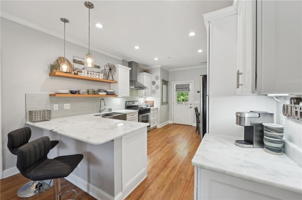 Modern Comfort Meets Marietta Charm – Just Minutes from the Square! Welcome to 734 Frasier Circle a beautifully updated home tucked into a quiet neighborhood with unbeatable access to the energy and charm of Marietta Square. This home is packed with thoughtful upgrades that make it move-in ready and maintenance-friendly. Step inside to freshly painted interiors and beautifully resurfaced hardwood floors that flow through the main living spaces, including the updated kitchen — featuring new granite countertops, custom soft-close cabinetry with sliding shelves, and a sleek stainless vent hood. Both bathrooms have been completely remodeled with stylish vanities, granite counters, and tiled bathroom flooring. Additional upgrades include brand-new high-efficiency HVAC system with an air purification unit and a new hot water heater professionally relocated to the crawl space — which also includes a dehumidifier for year-round protection. Enjoy peaceful mornings on your back deck, and stress-free maintenance with installed gutter guards already in place. Whether you're a first-time buyer, investor, or simply looking to downsize in style, this gem combines quality finishes with a location that can’t be beat. Come experience the perfect blend of comfort and convenience just minutes from Marietta Square!