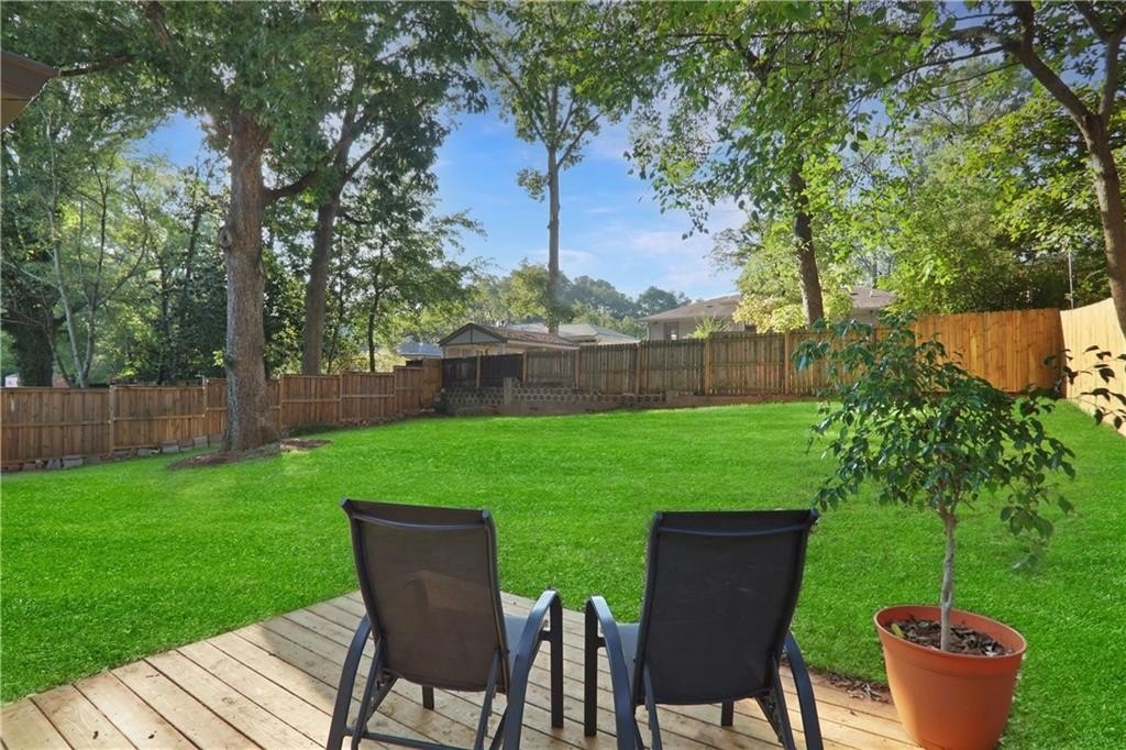 • California-inspired deck overlooking a serene, fenced backyard – an inviting space for family gatherings, pets, or quiet relaxation